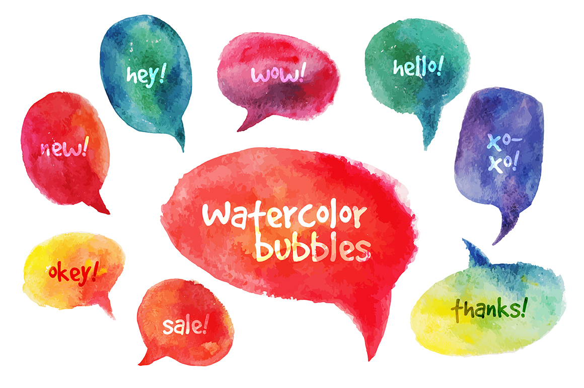 9. Vector Watercolor Speach Bubbles by Elena Pimonova