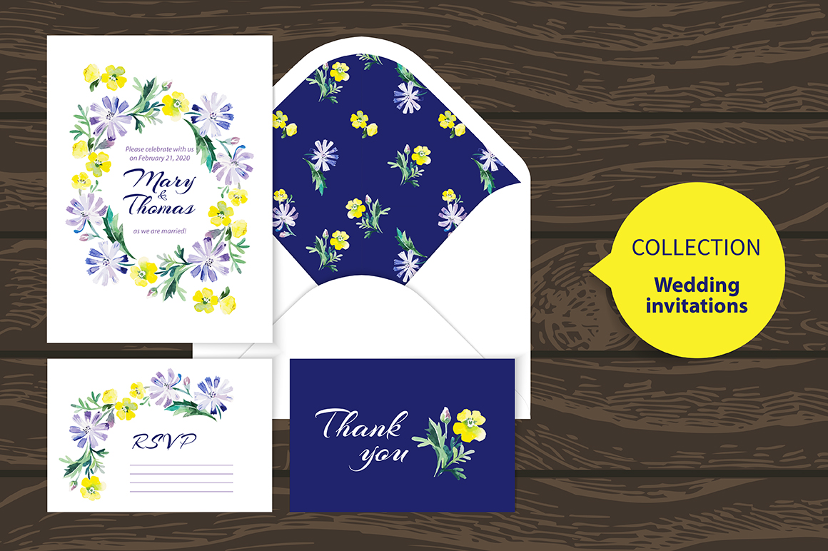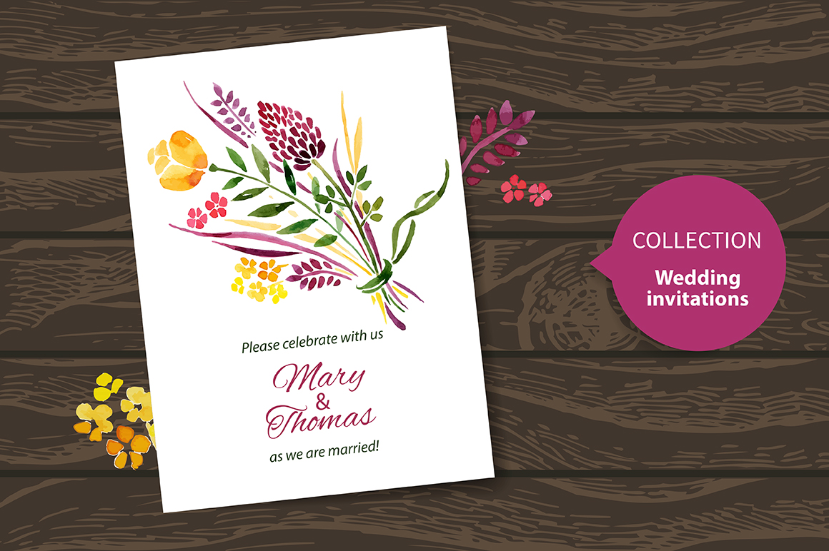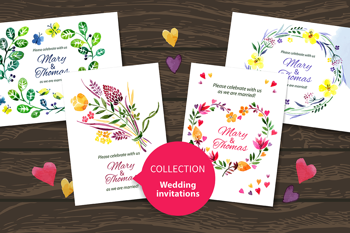13. Wedding Invitation Watercolor Set by Elena Pimonova