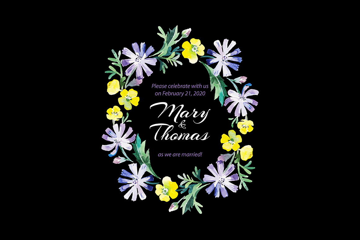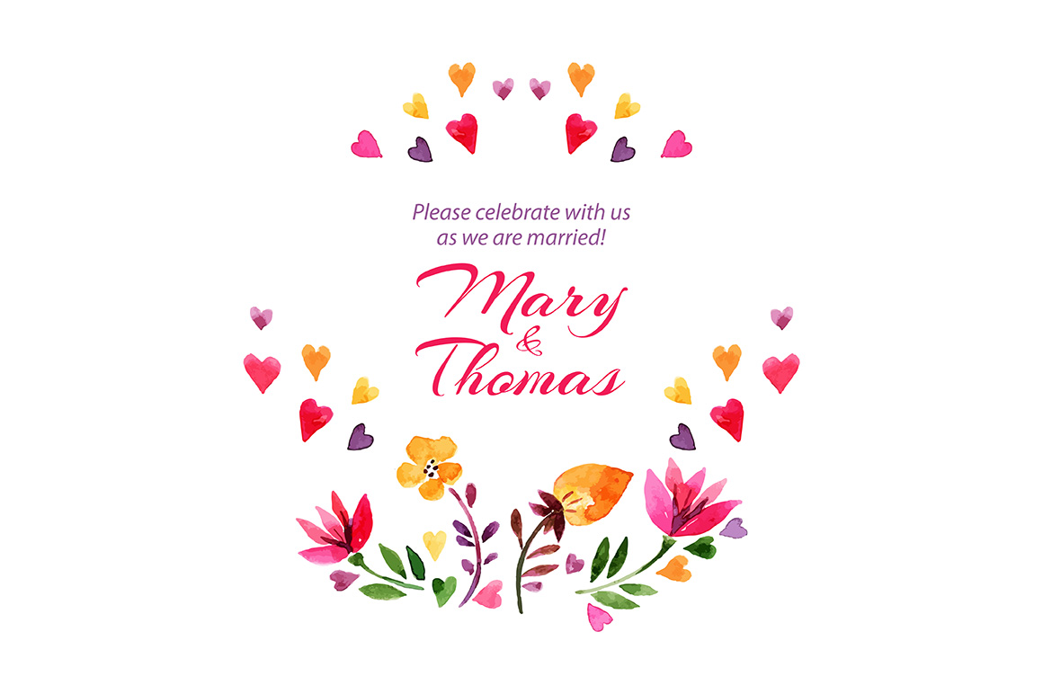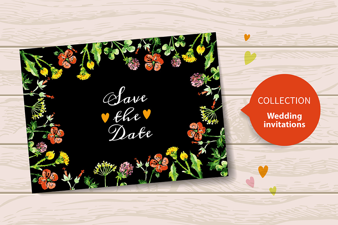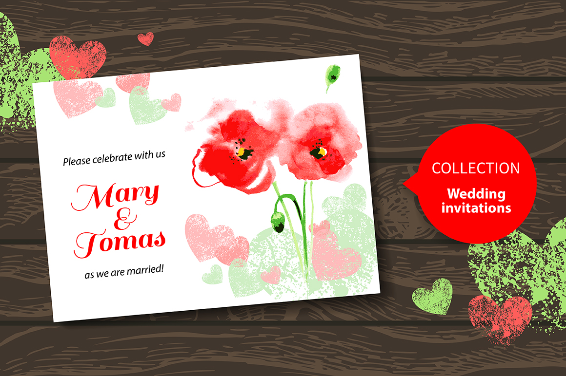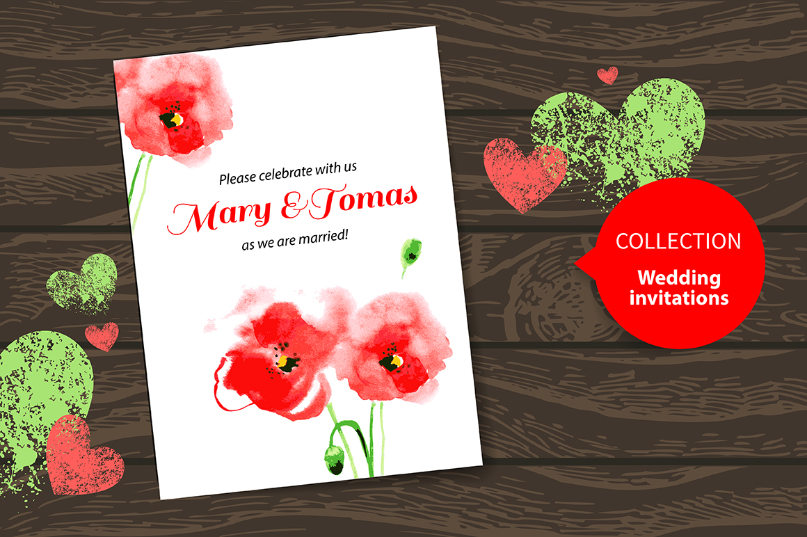 Vector illustration of wedding invitations. Zip file contains editable 2 EPS 10 vector file and 2 high resolution JPEG image. BONUS: watercolor poppy flower JPEG image.