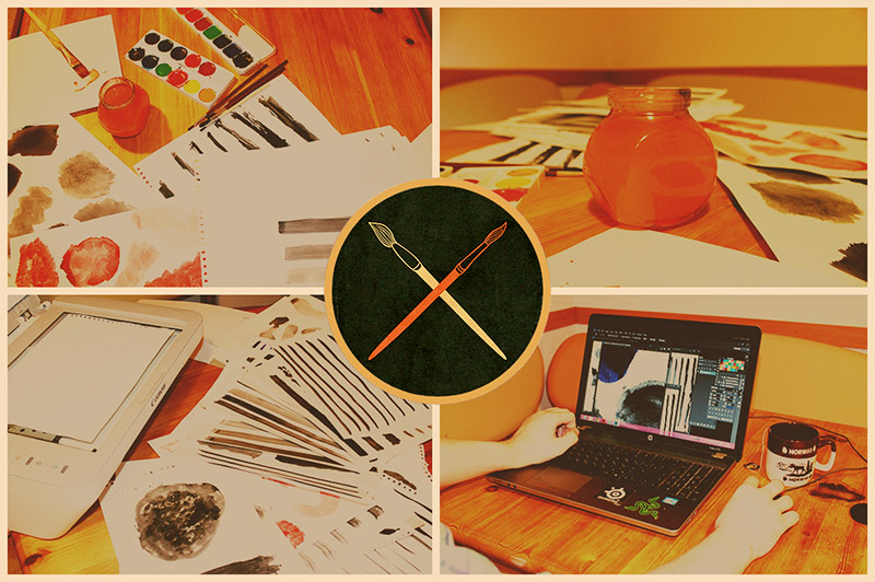 All brushstrokes were drawn by hand and scanned in tiff. format (4960×7015 px; 600 dpi; each original file about 100 mb.). We did not change the brightness and contrast of scans to leave you more editing possibilities. These brushes can be used for your illustrations, posters, artworks, digital painting etc. Brush size in photoshop is about 1700-2000+ px, but for the best picture quality I recommend you to use brushes in 300-1200 px size.
