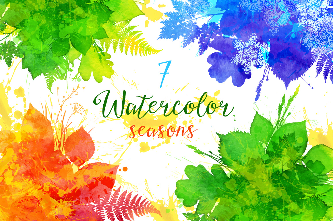 Set of 7 watercolor painted seasons vector banners. You can use them for fashion seasons, greeting cards, website elements, decorative paper, scrapbooking and many more.