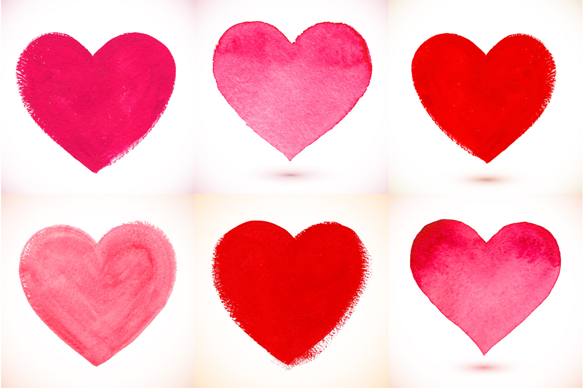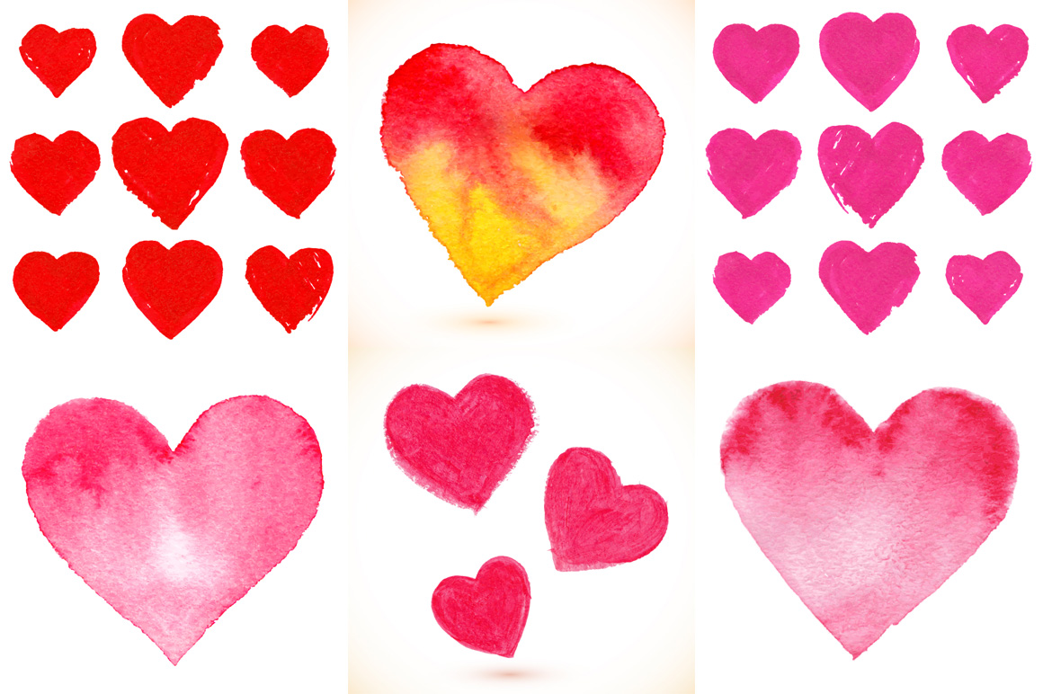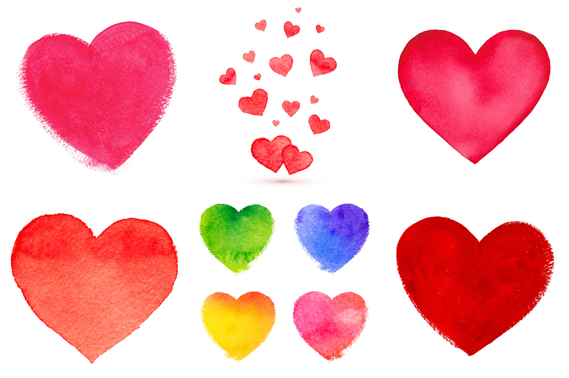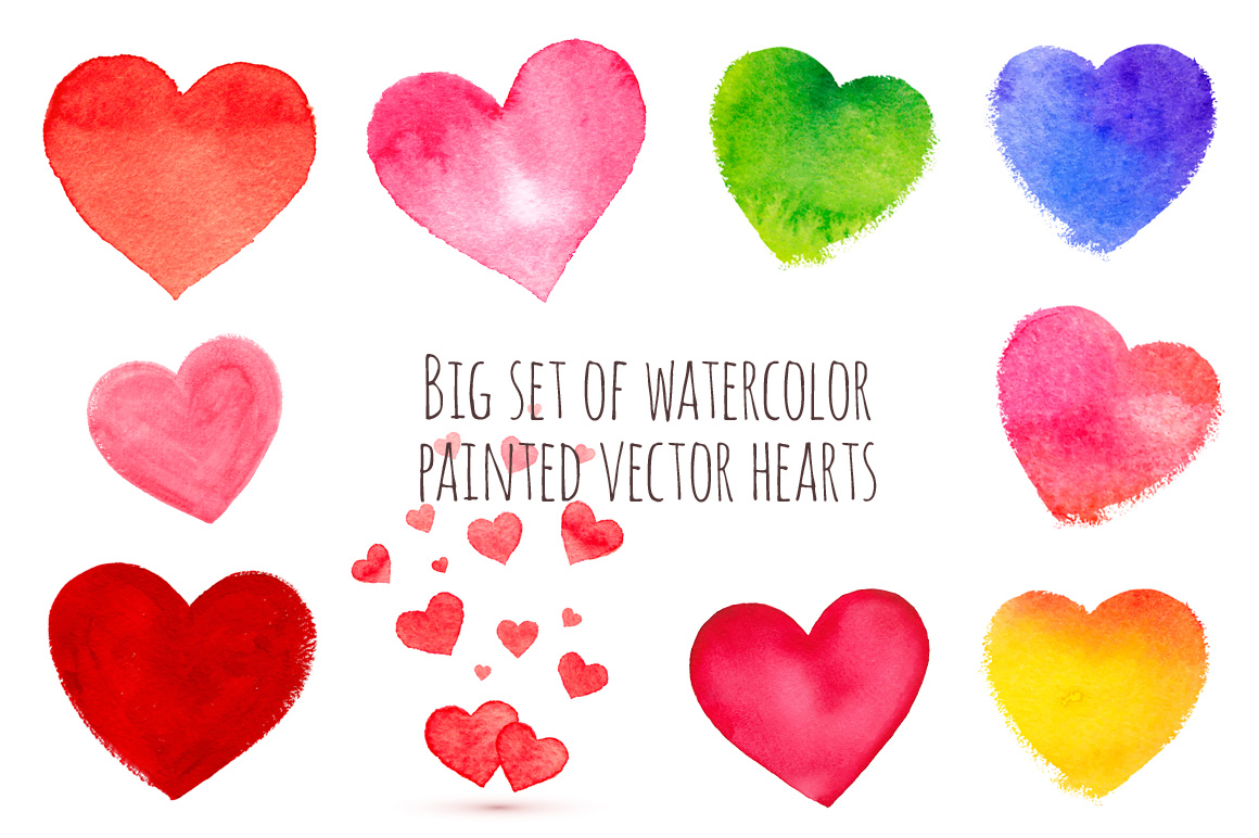 Big set of over 36 watercolor hand-drawn vector hearts. You can use them for greeting cards, website elements, decorative paper, scrapbooking and many more.