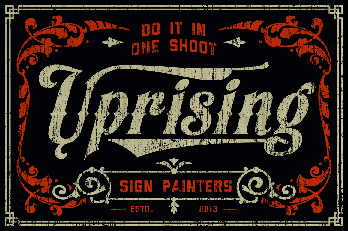 Wear is was a font created to enhance the creation of badge work. That was its starting purpose. I then realized that Wear works well in a number if design situations and is especially interesting when paired with textures. This font has a hidden surprise for whom ever may purchase it.