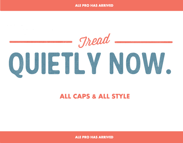 Ale Regular is an all caps font originally created for my personal use. After deliberation, I decided others would find it more useful as a font for their works. Ale throws back to custom off the cuff lettering. Its small imperfections makes it perfect for that real life hand drawn look. Throw some texture on the font and you will see that it takes well to the grit.