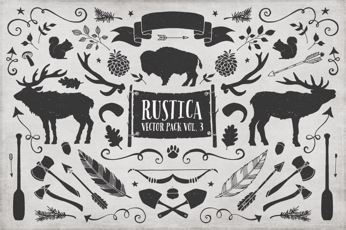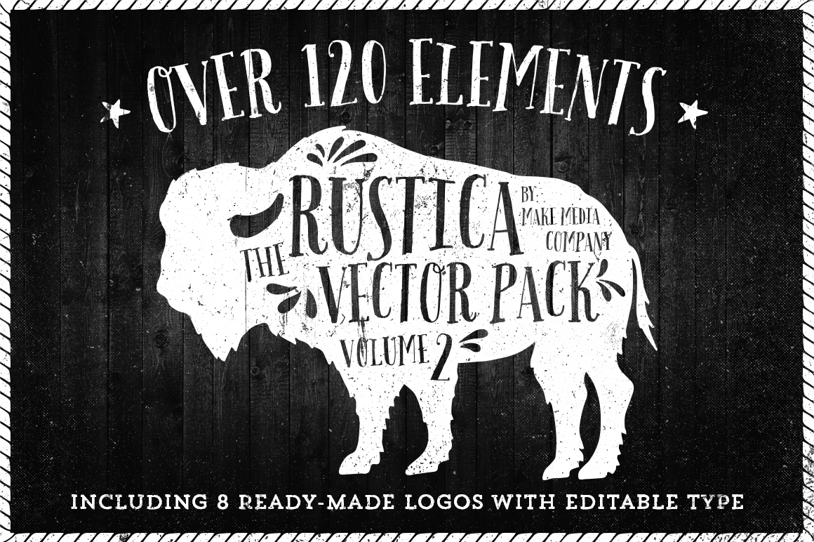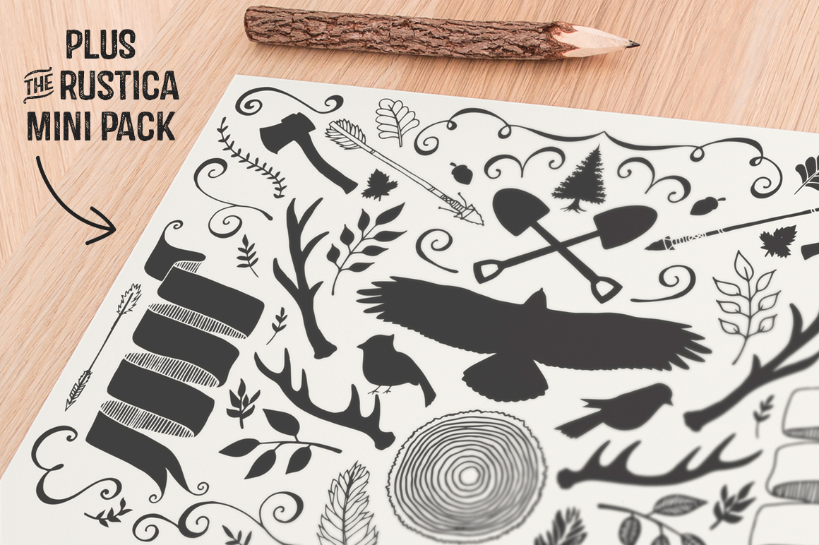 Love both Rustica Packs and want some more? Well, here ya go! I’ve bundled both packs, 8 logos and a TOTALLY NEW Rustica Mini Pack for your creative pleasure! Save over 25% with this super deal, and get yourself an additional 40 FREE elements! Here’s what you get: Over 240 unique, hand-drawn vector elements (No duplicates counted). 1 Subtle Vector Texture in 2 colors (Found in the ‘Logos’ file). 1 Rope Brush Pattern (Just drag graphic to brushes panel. Instructions included). 8 ready-made logos with editable text (Illustrator only). Help File with all the font links you’ll need. Bonus Mini Rustica Mini Pack with over 40 NEW items.