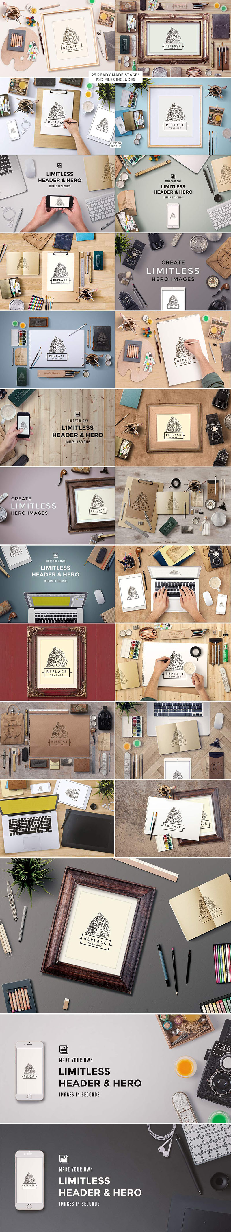 - Presentation Mock-up Templates (9 items – hero-header, sketch, logo & business card mockups)