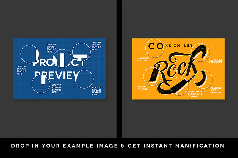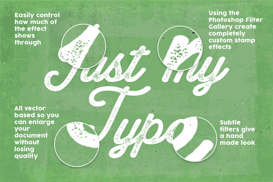 The Rubber Stamp effect – One of the most sort after type effects on the internet is now available through this easy to use Smart PSD. InkPad takes inspiration from my No.1 products TexturePress & Dusty’s Print Shop, but doesn’t use any textures or actions to create the stamp like effects. It’s all done within Photoshop itself!Part of the process uses the Photoshop Filter Gallery, which gives you access to unlimited settings and styles to play with to make completely individual stamp effects. Plus added with the settings to tweak in the smart object prior to that, you can have a different stamp every time. Video demo – http://vimeo.com/105236907