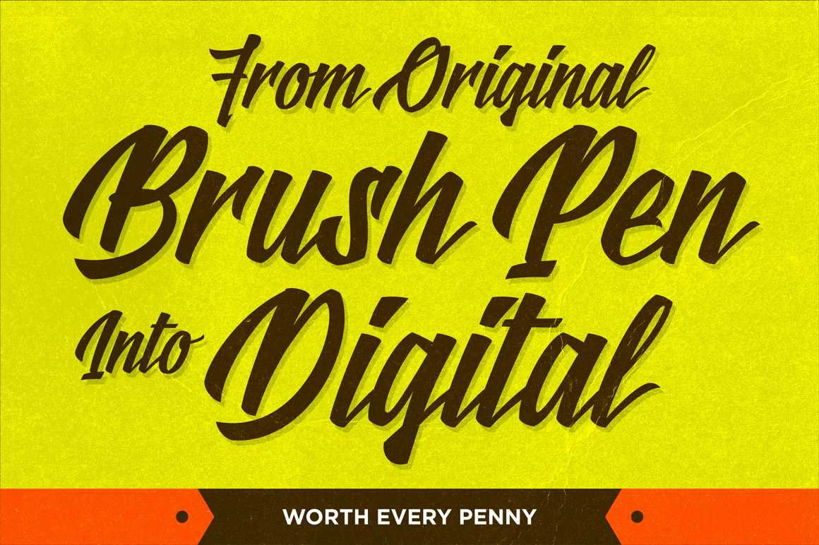 Hand-painted brush font. An all-caps brush font with numbers & punctuation.