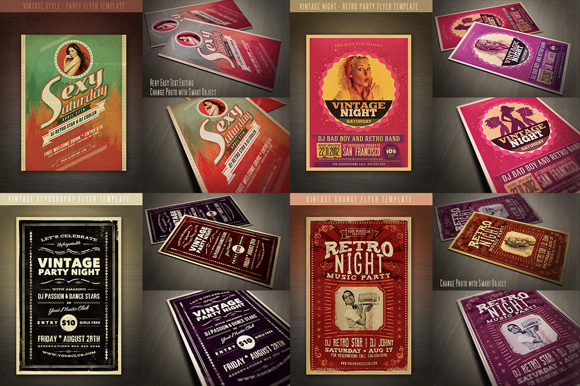 3 Flyer Templates (8.5” x 11”) and 3 Flyer Templates (4” x 6”). Fully layered & customizable .PSD file. Print-ready CMYK file at a resolution of 300 DPI. Template include bleeds, trims and guidelines. These print templates are very simple to use and customize. You can change the texts, colors and images in just a couple of moments!