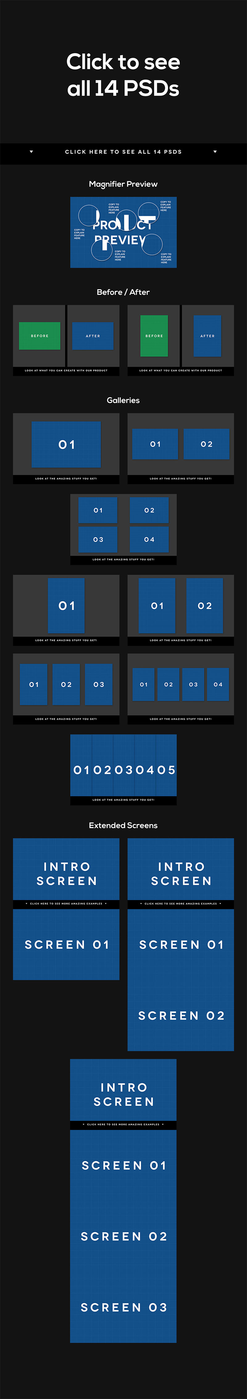 Are you a Creative Market seller and struggle with showcasing your product and explaining what it does? Do you find you’re spending ages on screenshots and would rather be spending time on making other products? Then the Product Preview Kit is for you. So I’ve complied a collection of 14 Photoshop documents that are easy to use to display your work so customers get to clearly see the quality of your work. Video demo: http://vimeo.com/109693447