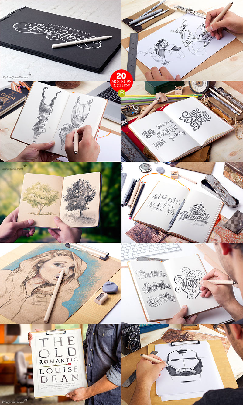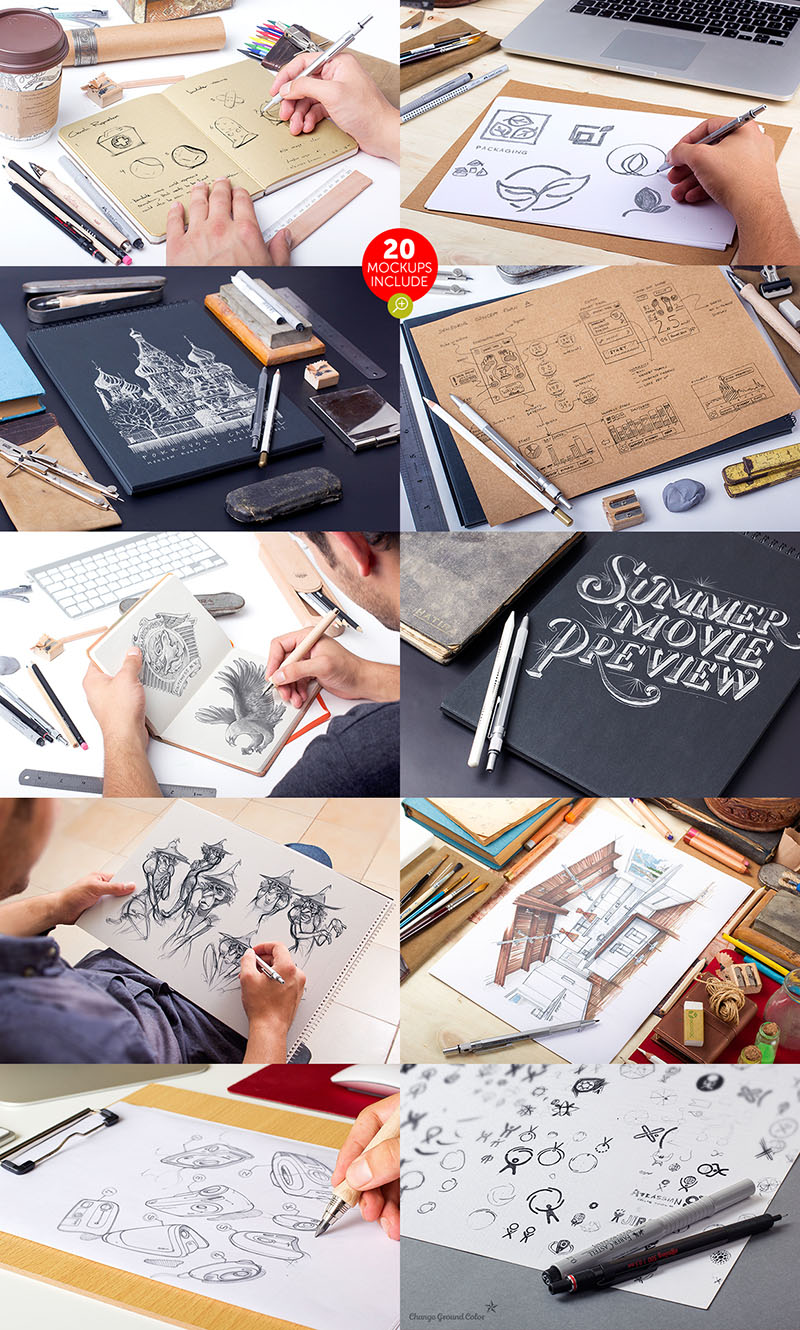 3. Hand Drawn Sketch Mock Up Pack by Mockup Zone