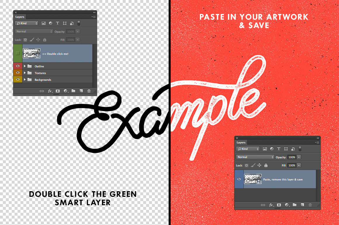 TexturePress uses Photoshop smart layers (smart objects), so all you have to do is paste your compound artwork in to the smart layer, save and you’re done. This is a product that I use every day posting artwork to my instagram account and it saves me a ton of time. Full video demo: http://vimeo.com/95406525