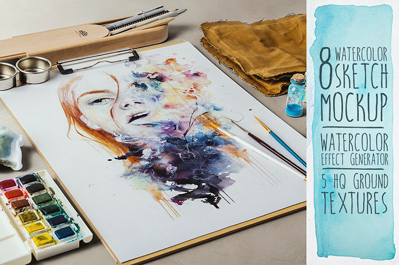 2. Watercolor Sketch Mock Up by Mockup Zone