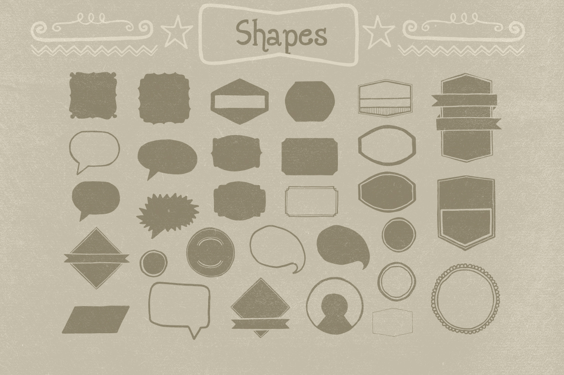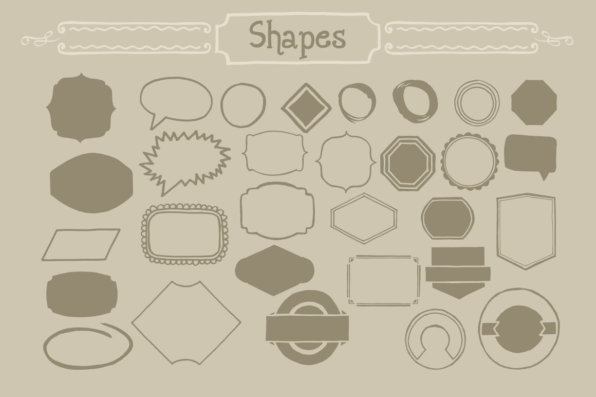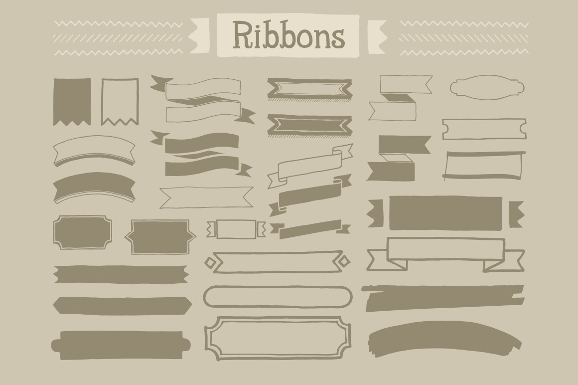 890 handwritten decorative vector shapes in Adobe Illustrator and Adobe Photoshop (resizable shapes). Shapes like ribbons, dividers, ornaments and corners.