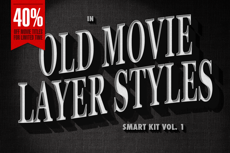 This kit of Layer Styles is inspired by the original titles of American Famous Films and Film Noir of 1920-1950. This pack contains 5 fully editable PSD files, layered and high resolution, with textures and realistic effects, in some cases contains the name of the font and the link to download it if you want to get the same results as the preview. Include textures.
