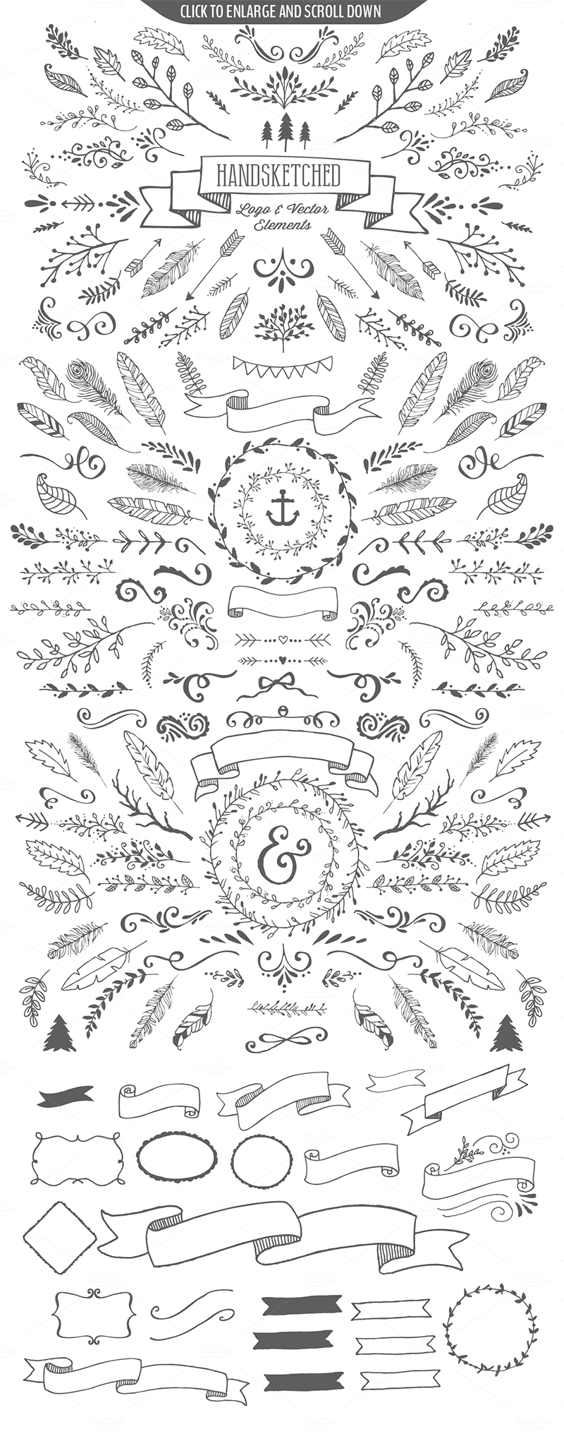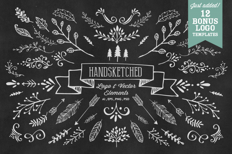 This pack includes 115 Rustic Hand sketched Vector elements,doodles,banners, frames, laurels and graphic elements for use in your logos, branding and design projects of any description. It includes 12 free Pre-designed logo templates for you to use and modify as your own. The included logos also demonstrate how you can use the various design elements included in this bumper pack 🙂