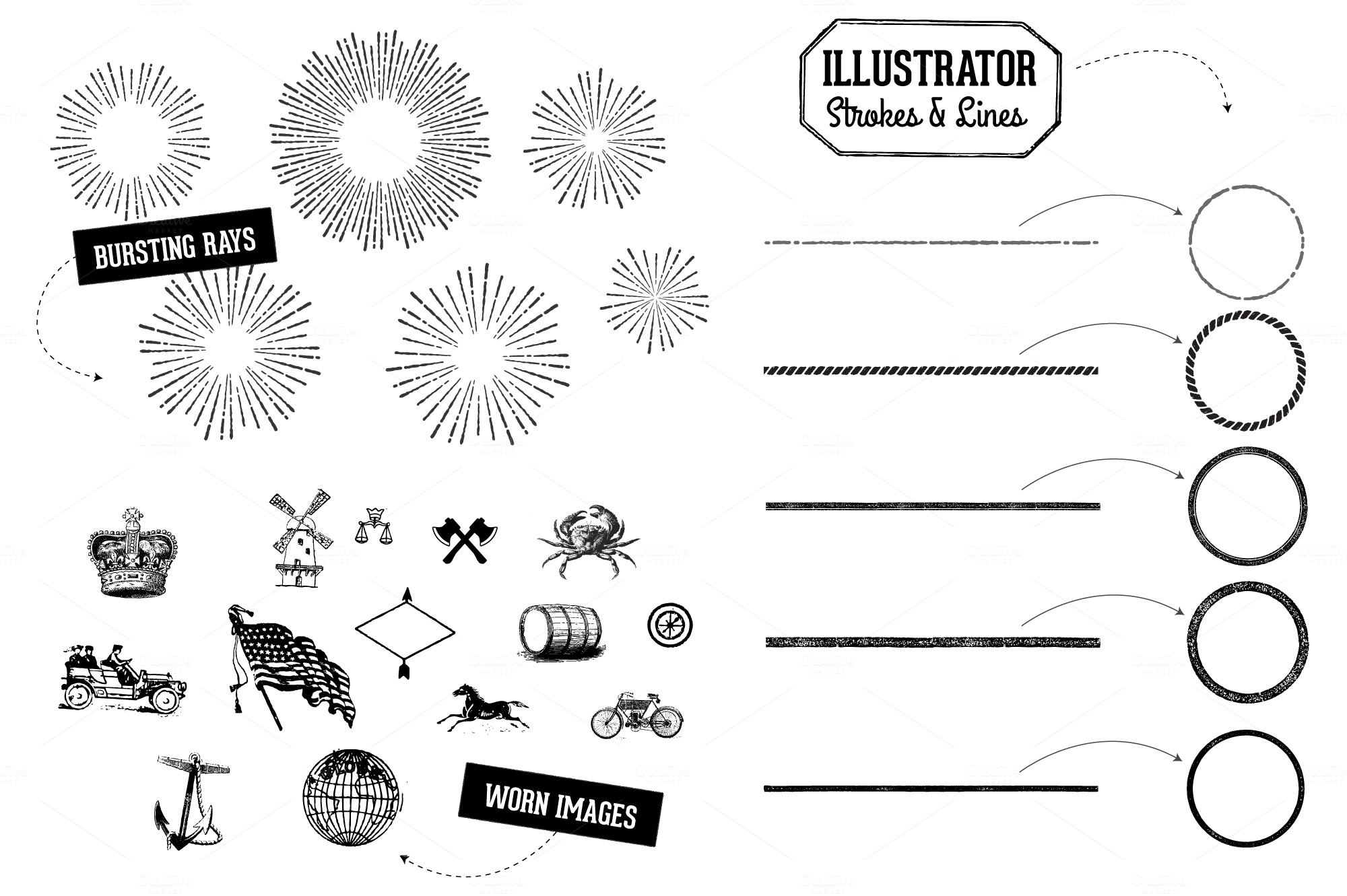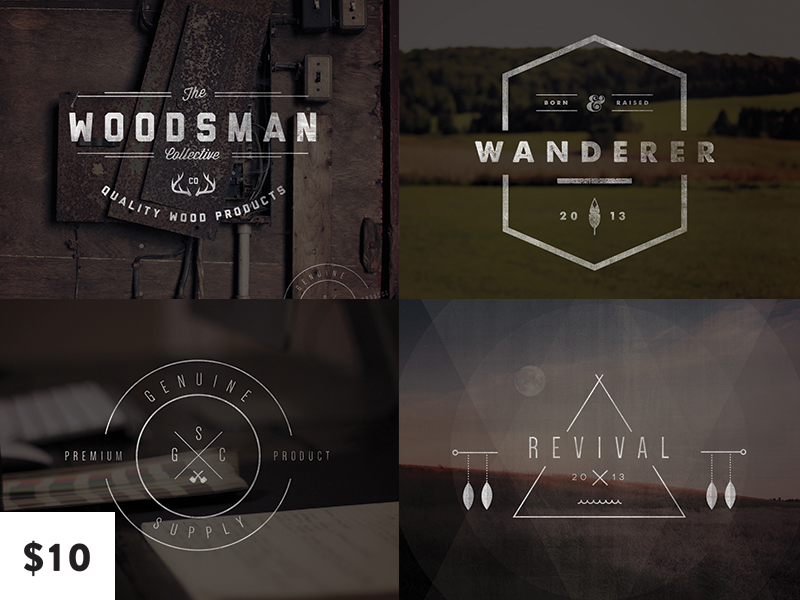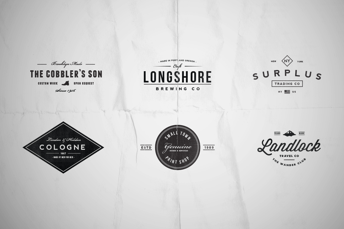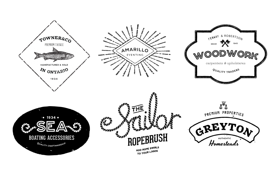 This pack includes 9 carefully crafted vintage style Logo Templates for you to use and modify as your own. Bonus material includes various vintage images to customised your logos with if you wish, vector ray bursts and texturising photoshop brushes to add some wear and tear 🙂