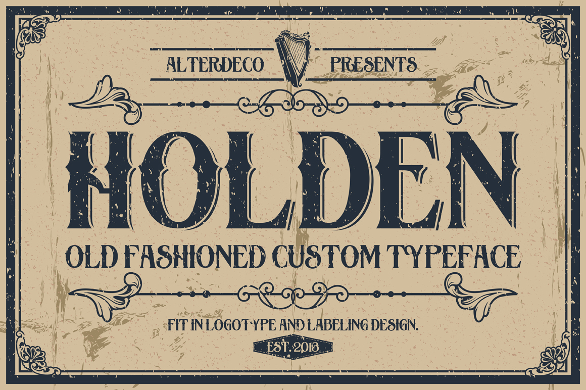 Holden typeface is a vintage font, useful to create a vintage apparel design, logotype, and labeling. The uppercase is in shadowed style. Available in otf and ttf.