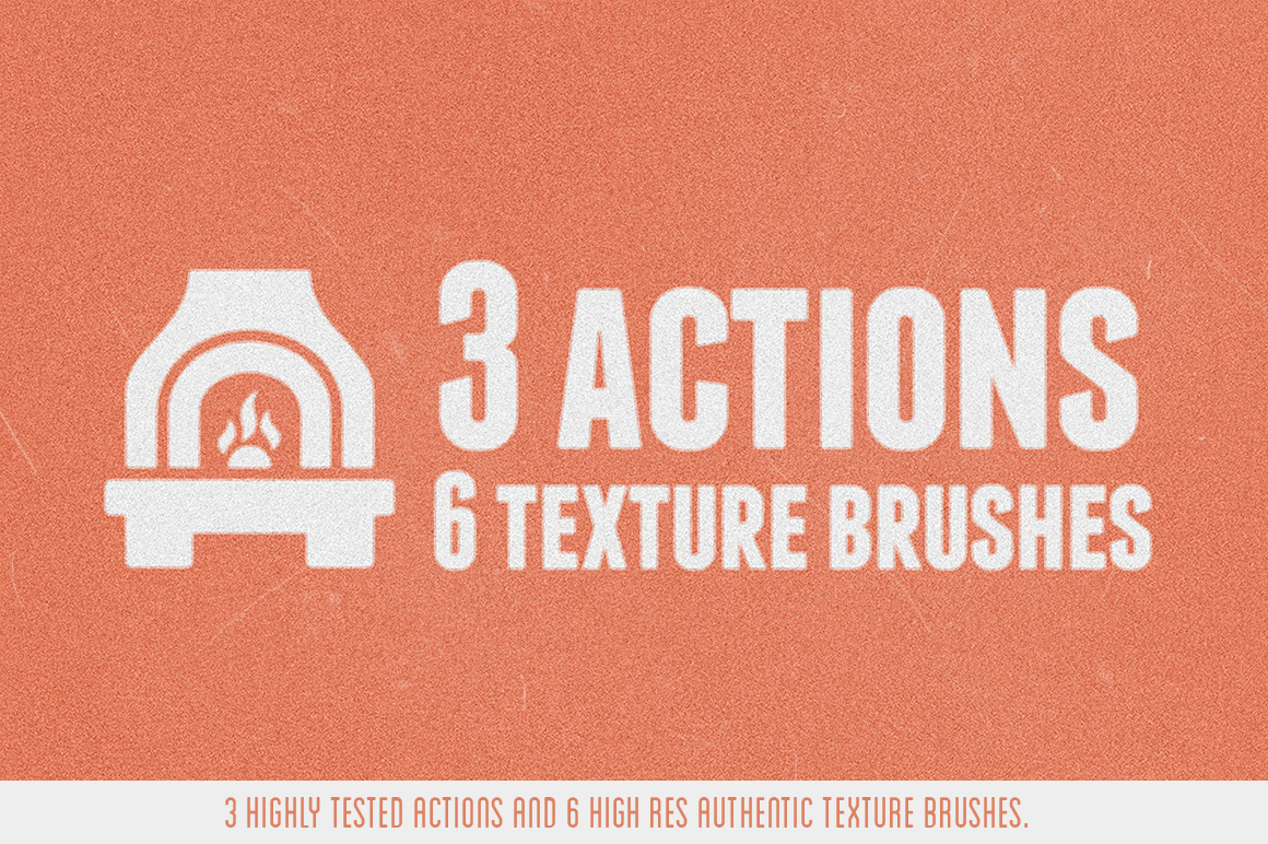 3 actions that are very easy to use with step by instructions. 6 High res grunge texture brushes to create endless possibilities! An easy to understand help video is also included which walks you through the process of using the kit.