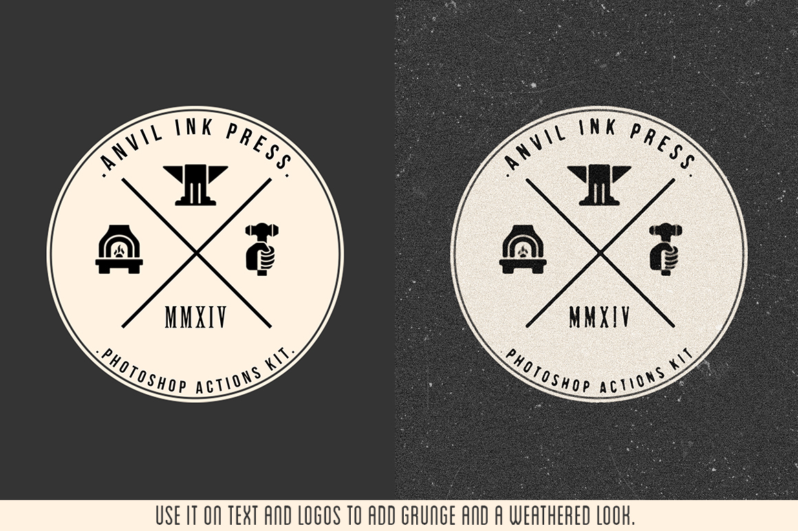 Awesome Photoshop Actions + Brushes Kit to add distress and a weathered look to Text or Logos.