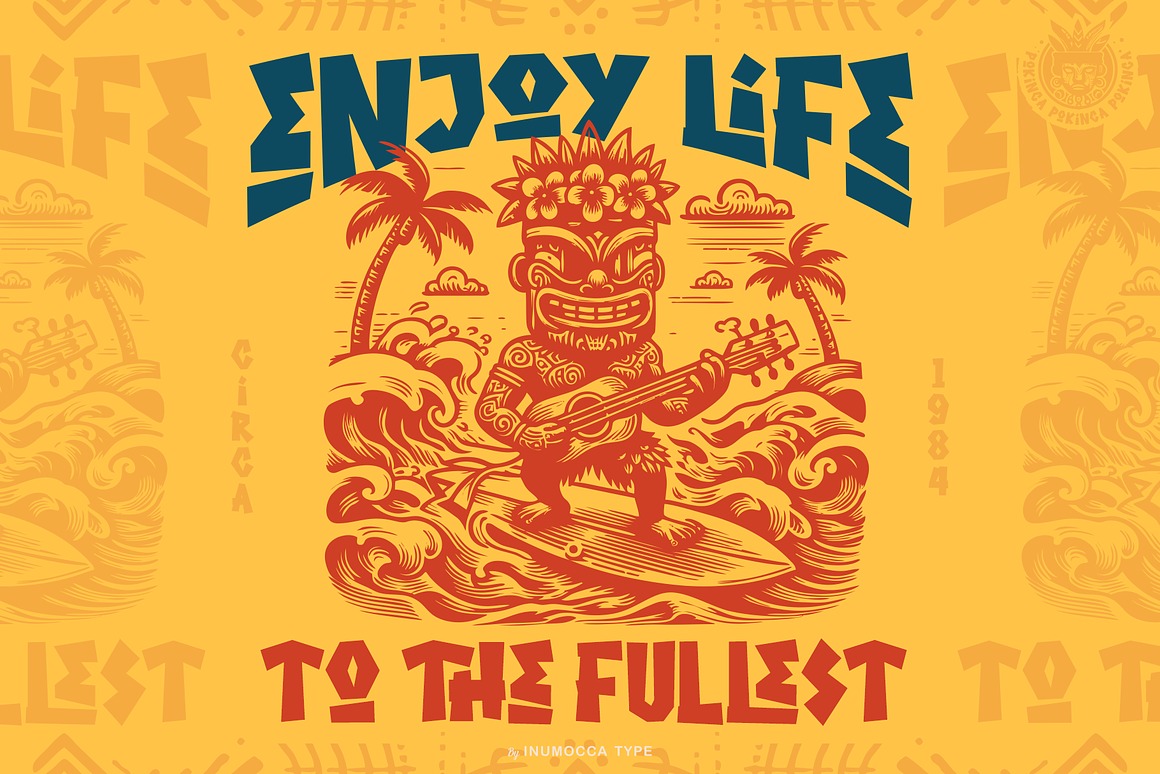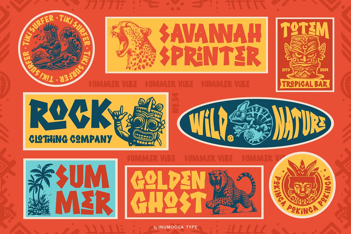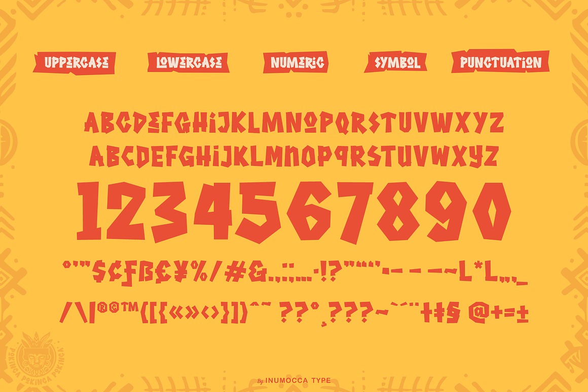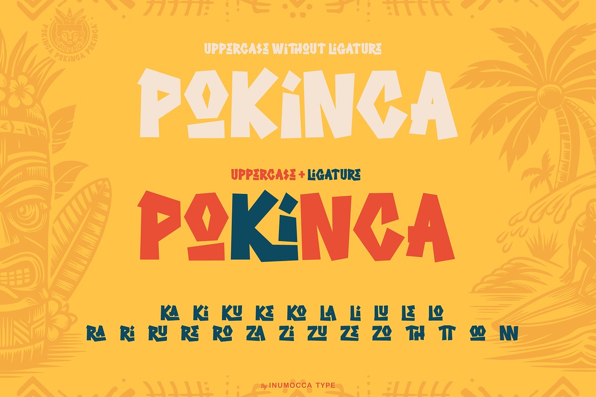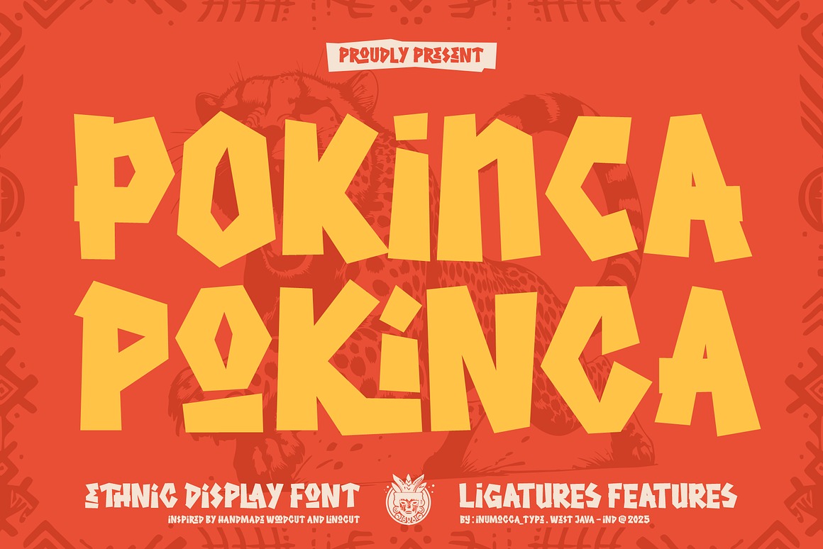 Pokinca is Ethnic Display Font, inspired by handmade woodcut or linocut with thick and strong lines that create confident character. the distressed handdrawn look of this ethnic font adds a touch of authenticity to any design by traditional art. i present it in shape and characteristic for make Profesional Your Logos, Lettering, Branding, Headline, Badges, Body of text, packaging design,because visual appeal is essential.