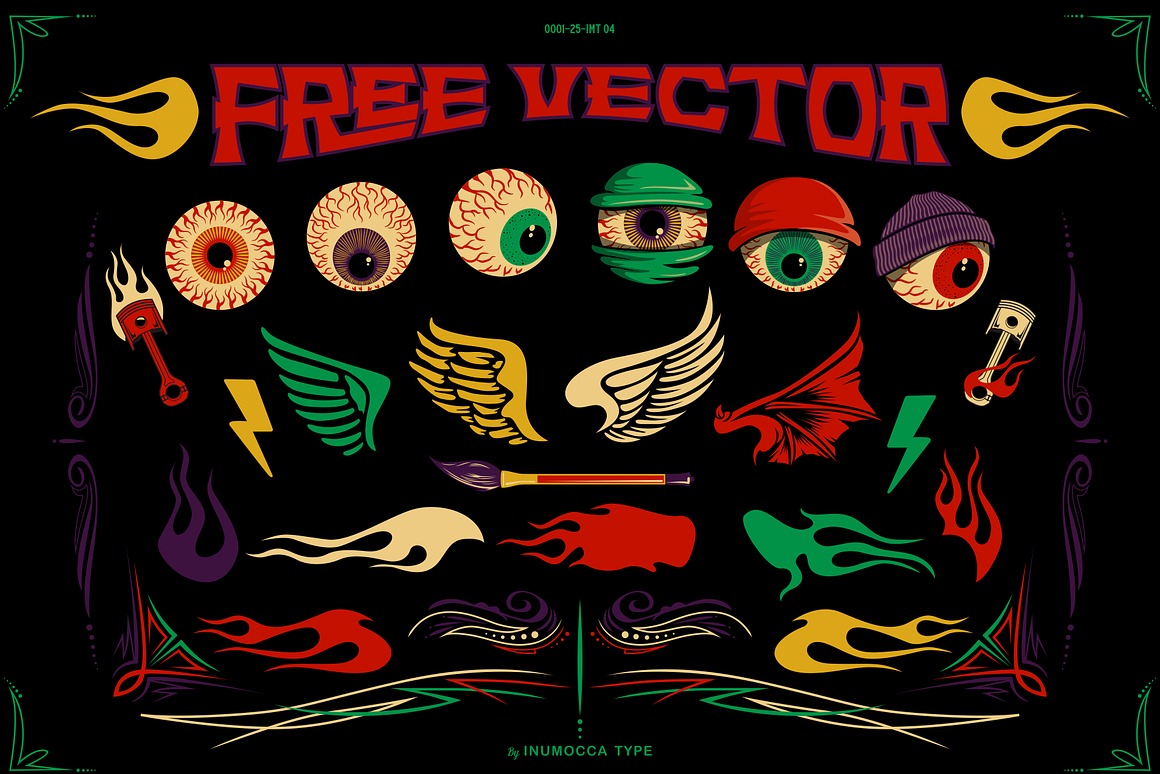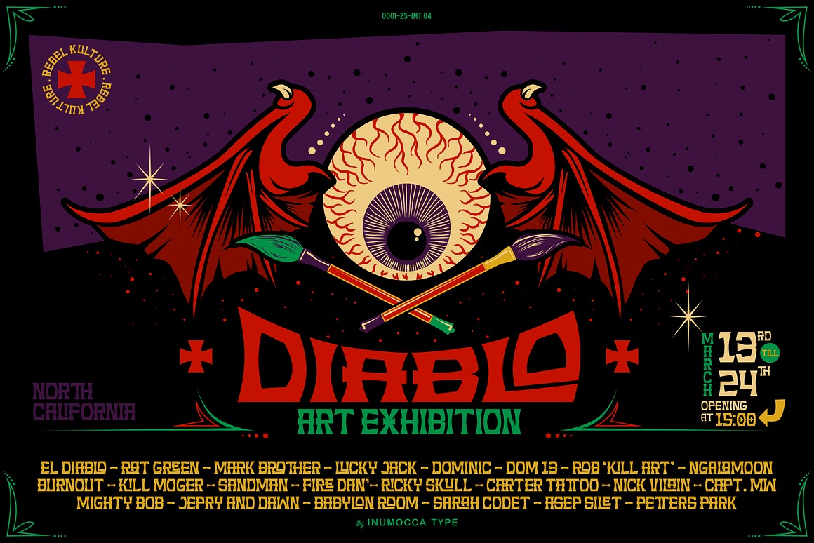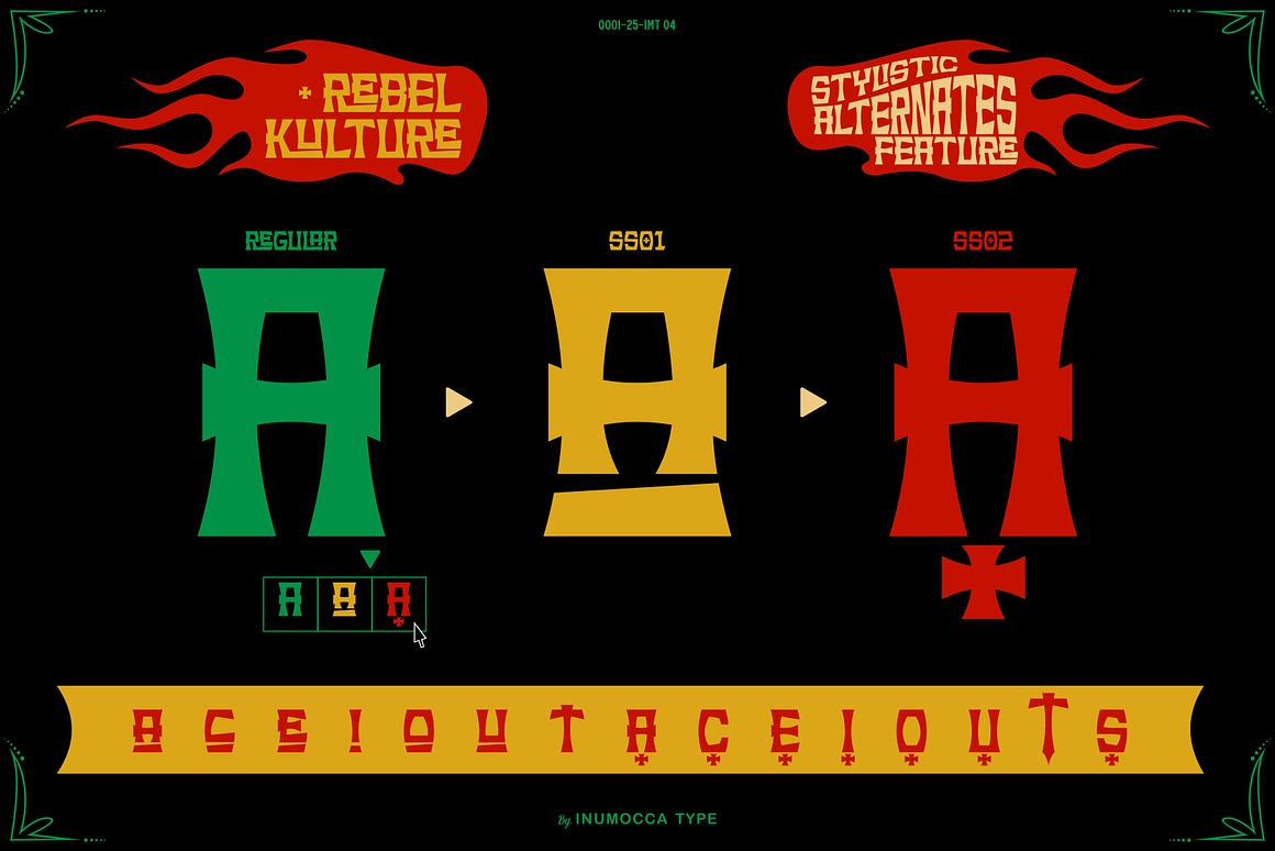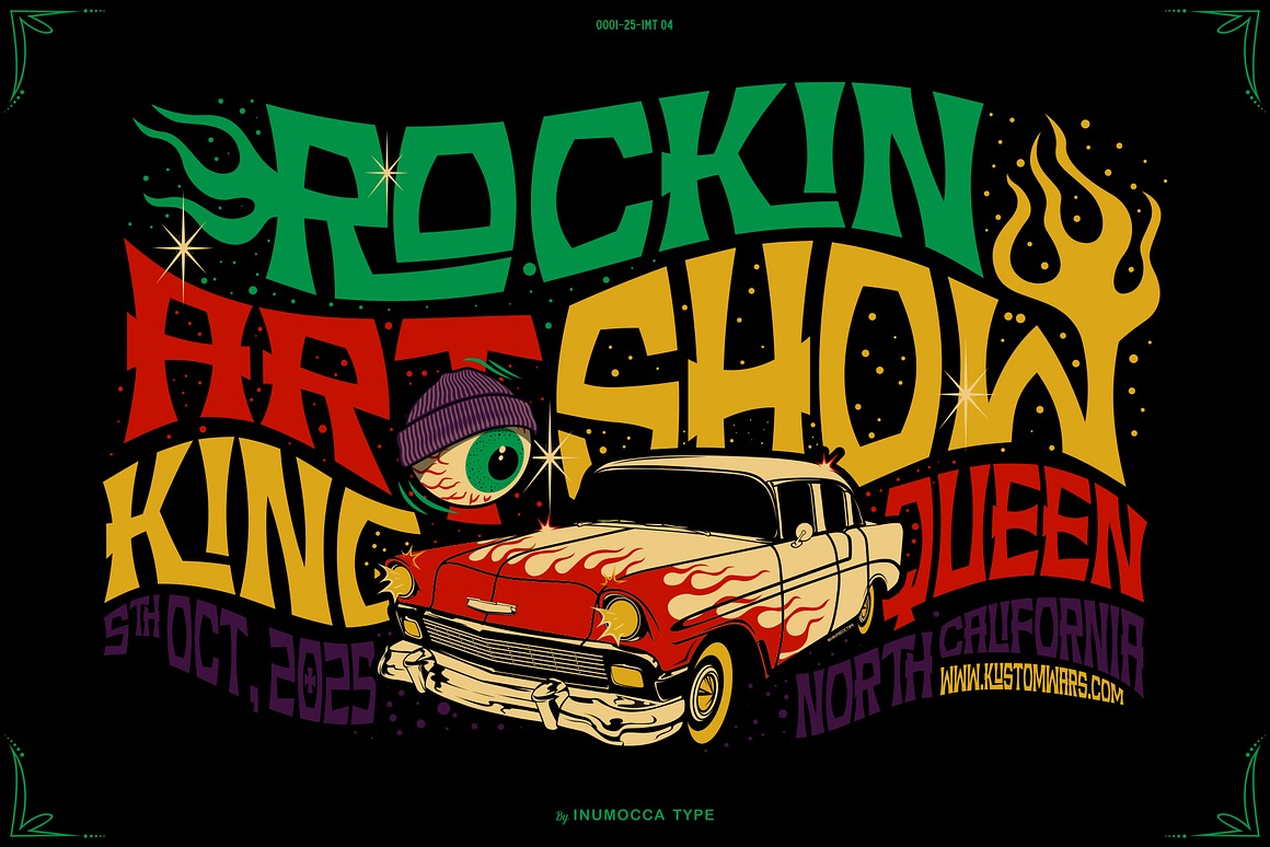 Rebel Kulture is A Display Font, inspired by Kustom Kulture art and Cultural movement that emerged era 60s in California Focuses on Unique Modification and Customization of vehicle especially cars and motorbikes and the lifestyle . i present it in shape and characteristic for make Profesional Your Logos, Branding, Headline, Badges, Body of text, packaging design, poster for event, lettering, you can adding Flames, Stripes and other patterns, because visual appeal is essential.