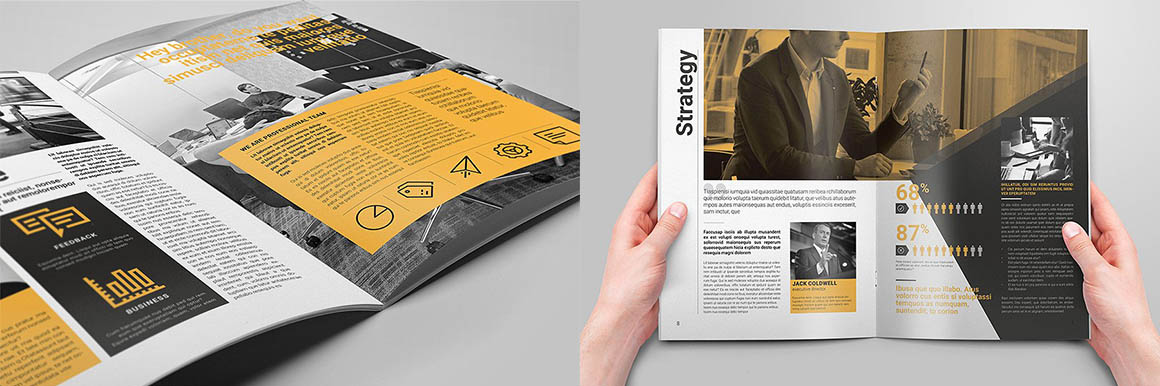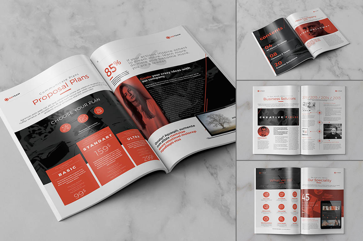 All these templates from Kovalski are for Adobe InDesign and ready for print or online use! You can create professional proposals, annual reports, business brochures, magazines, portfolios, photo albums or just some print reports with modern style in minutes. Enjoy 😉