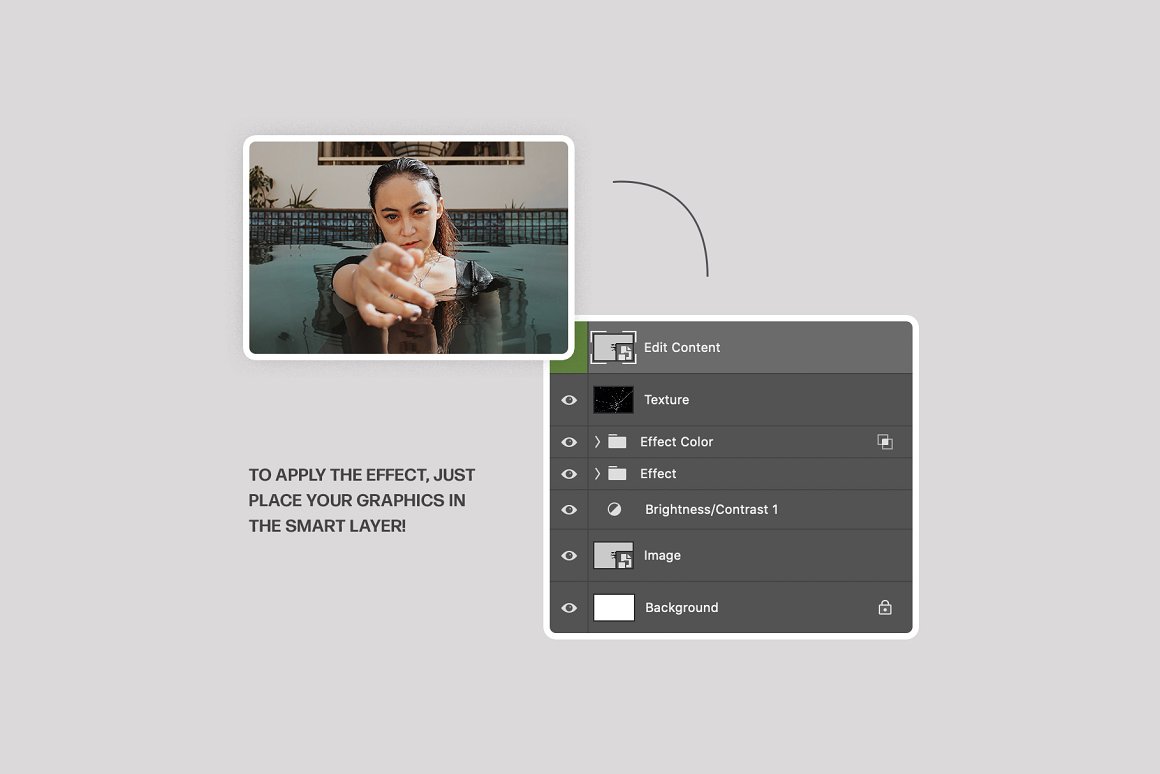 20 Modern Photoshop Effects from Pixelbuddha is about simple and layered PSD templates. Just place your photo into smart object window – close & save! That’s it 🙂 You can play with more effect versions in all templates so you can edit your final effect very easy. So you can convert your images or photos to modern art, fashion look, glitch effect, dispersion effect, paintings, drawings or lot of other effects in seconds!