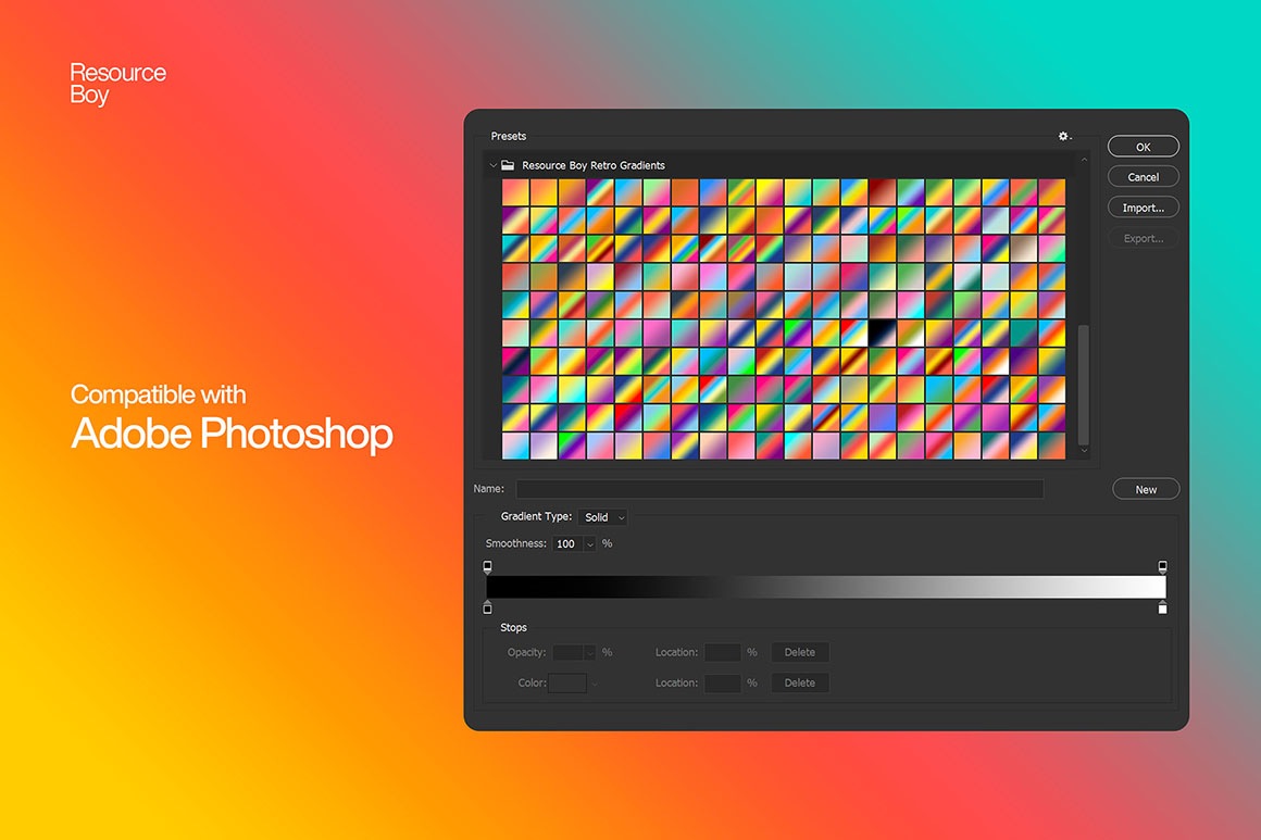 200 FREE retro style Photoshop color gradients from Resource Boy. Great for your new digital or print projects. Download & enjoy đ