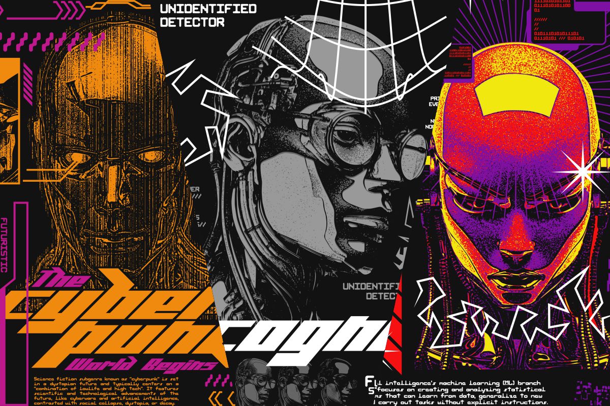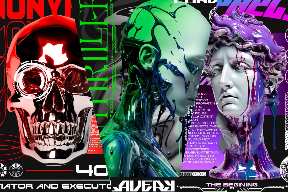 - urban, futuristic, cyberpunk, brutalism, graffiti & y2k graphics