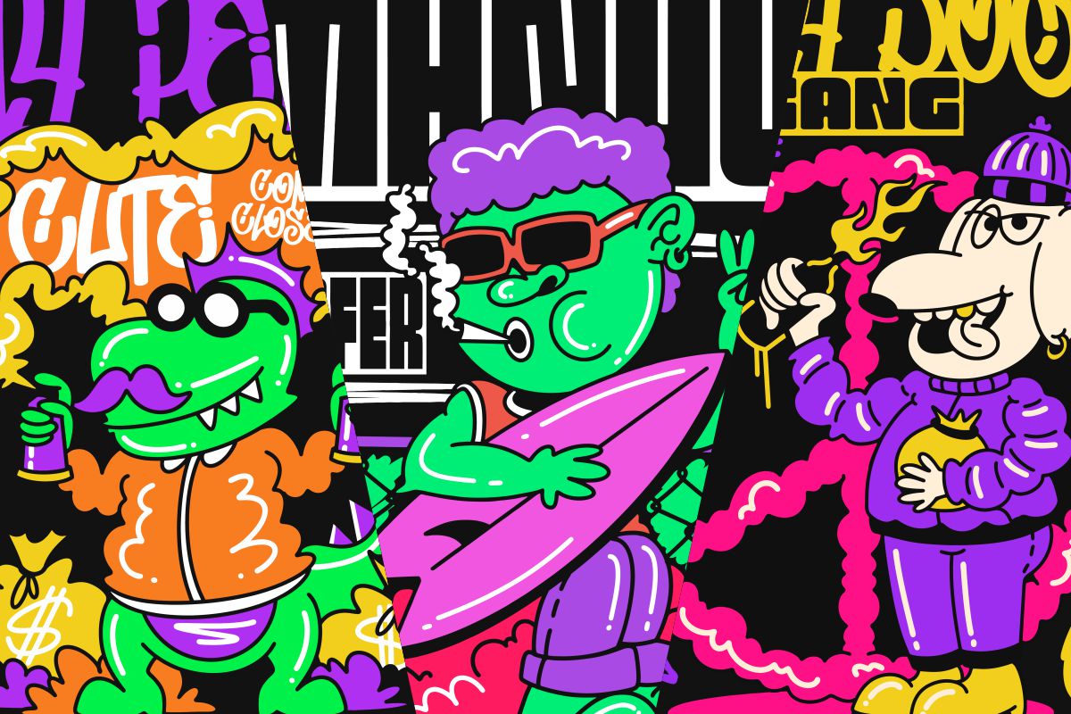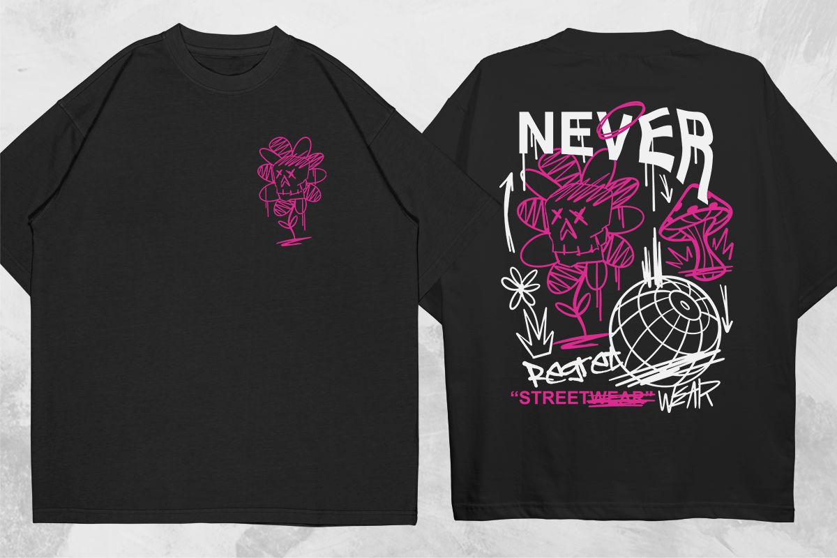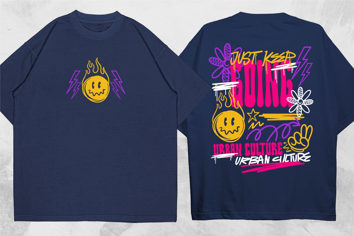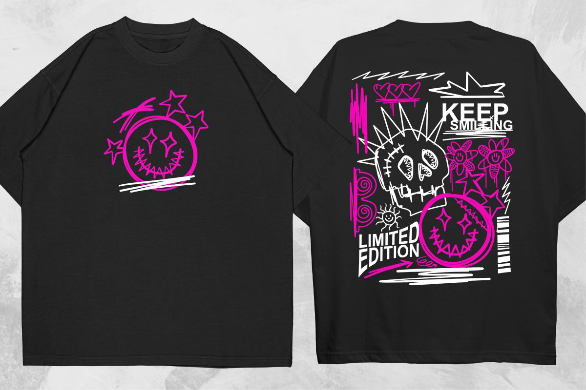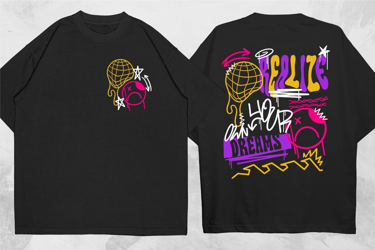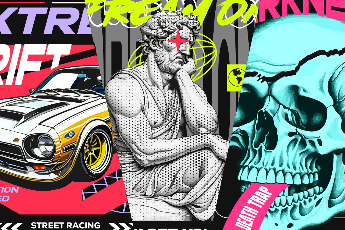 If you need something new in your vector graphics library or some cool street style illustrations for your new project we have a unique & BIG T-shirt or poster graphics bundle for you 🙂 With 200+ unique style designs or illustrations you can create creative t-shirt designs, posters, stickers, invitations or other print or web designs. Start your very own t-shirt company right now with 200+ ready to go t-shirt designs! This retro or street style graphic bundle includes 200+ convenient and ready-made t-shirt designs with all of their original source files.