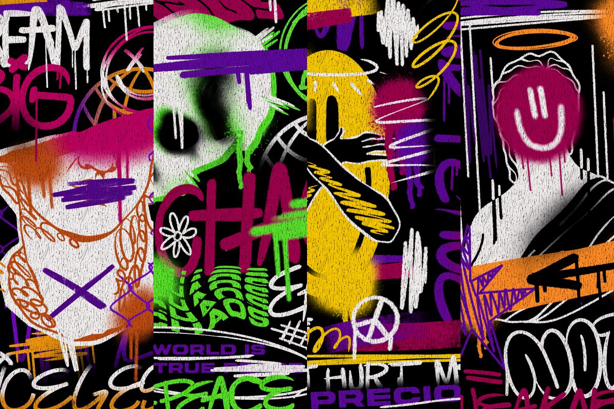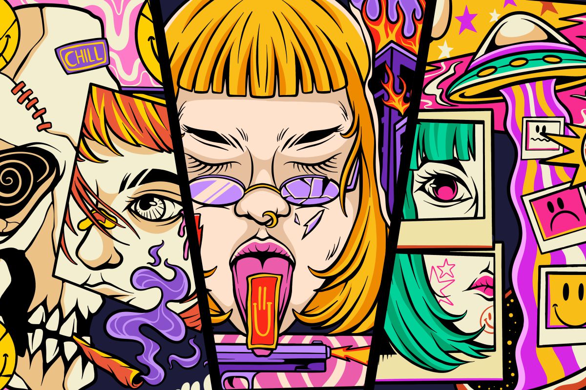 All these unique, playful, urban, punk & funny graphics from Universtock are ready for print or online use! MAIN USAGE: flyers, posters, greeting cards, branding, packaging, phone cases, bags and totes, wall art, fabrics, t-shirts, website backgrounds. Actually any place you love! Enjoy 😉