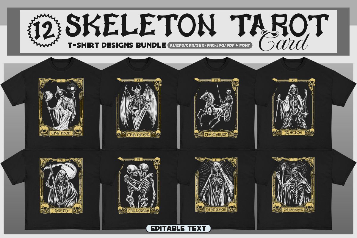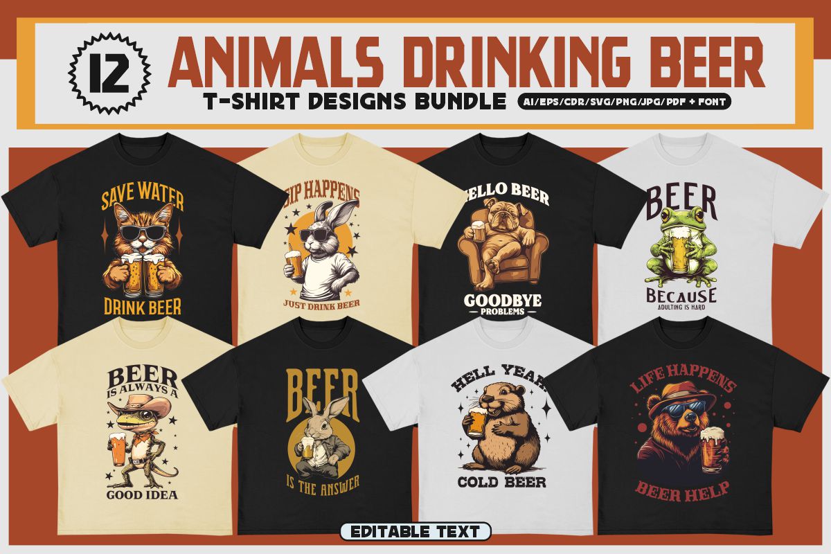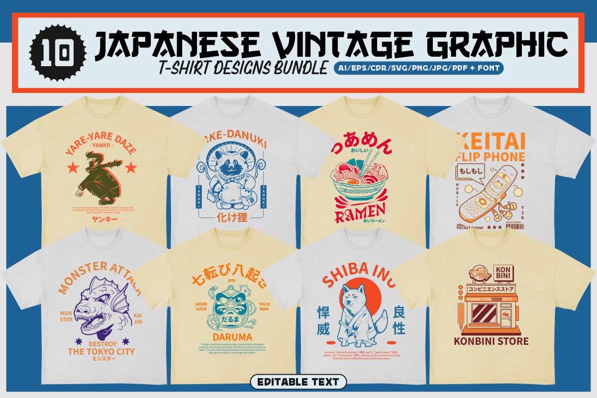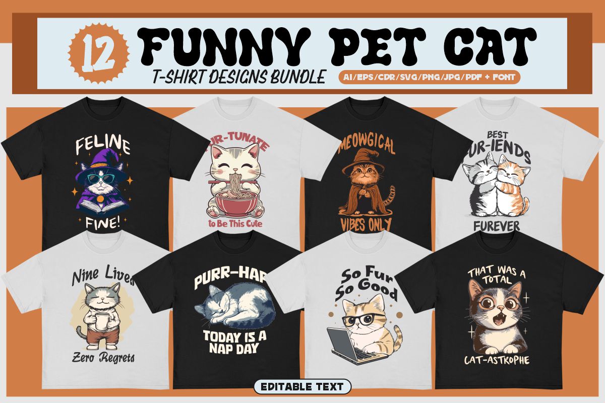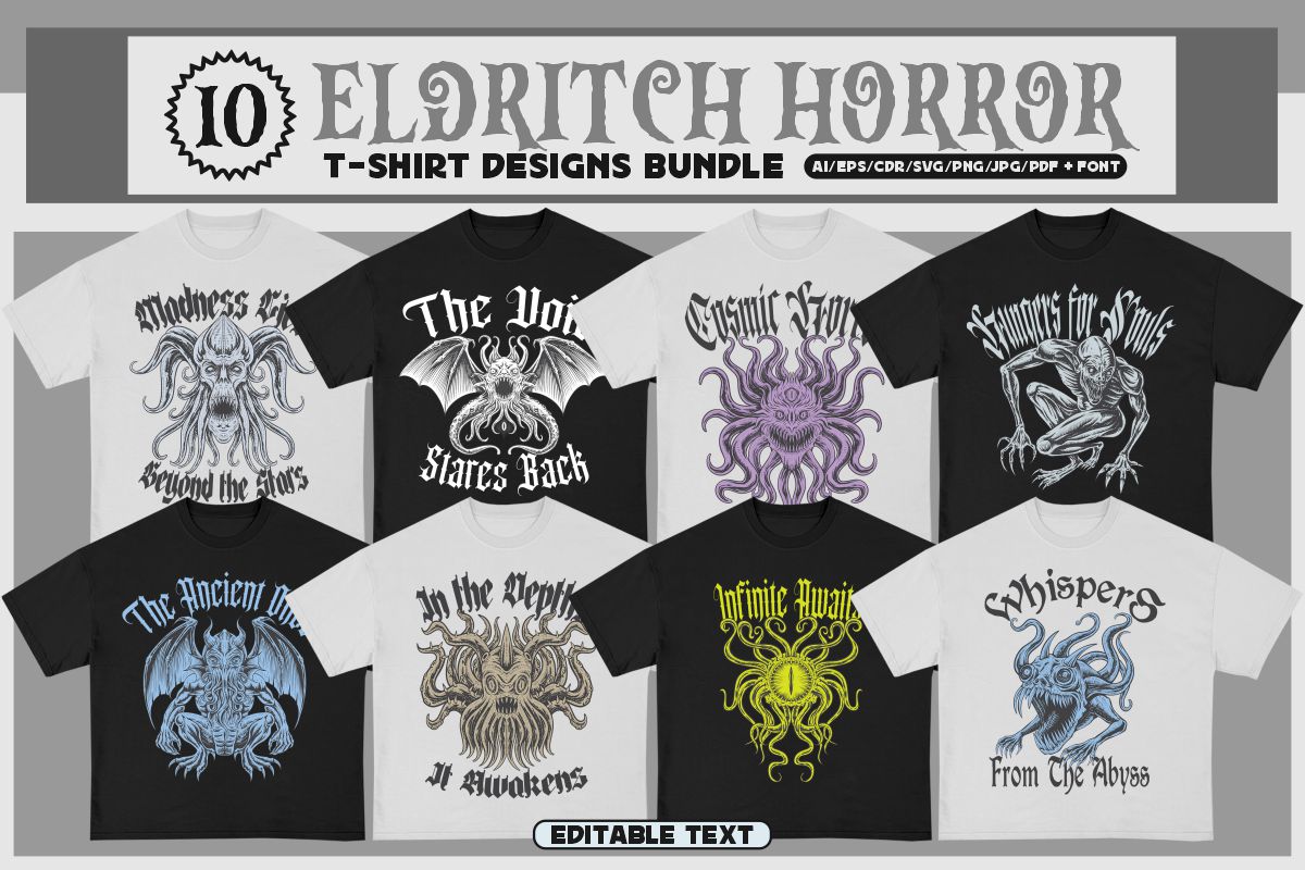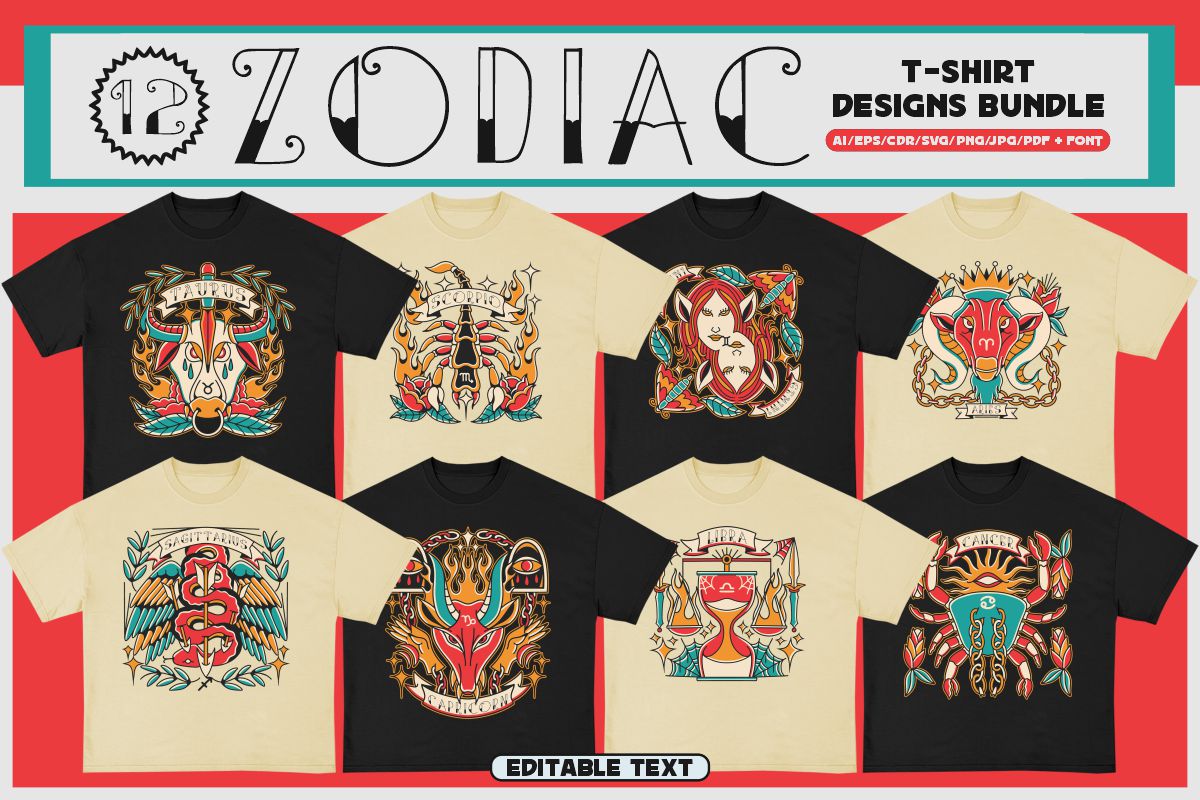 If you need something new in your PNG & vector graphics library or some cool illustrations for your new project we have a unique & BIG T-shirt or poster graphics bundle for you 🙂 With 230 unique style designs or illustrations you can create creative t-shirt designs, posters, stickers, invitations or other print or web designs. Start your very own t-shirt company right now with 230 ready to go t-shirt designs! This urban, cute, funny, horror & graffiti style graphic bundle includes 230 ready-made t-shirt designs with editable texts!