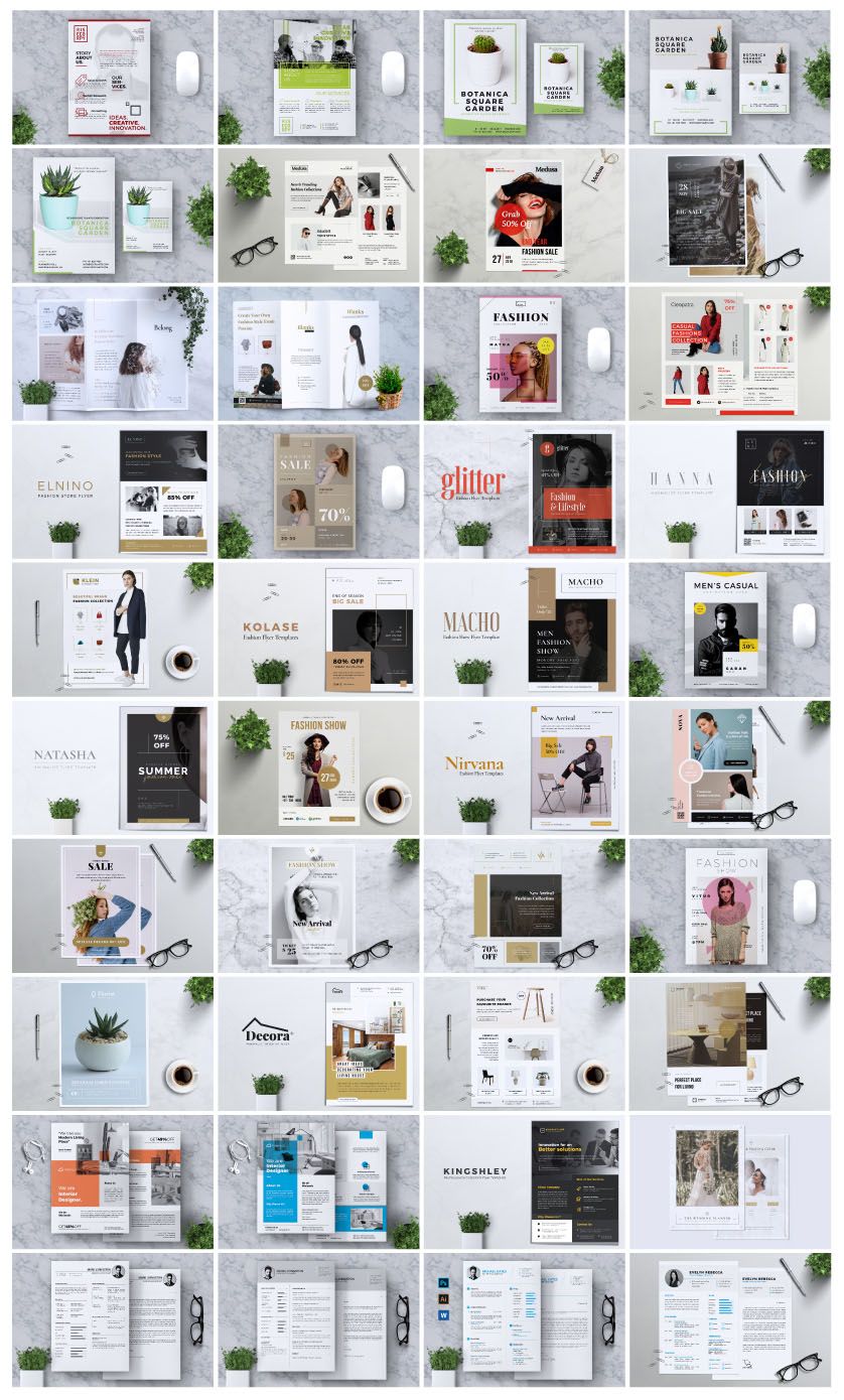 - Brochure templates: 50 (Indesign)