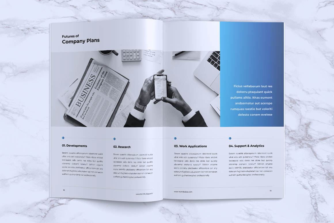 - Company profile : 18 (Indesign)