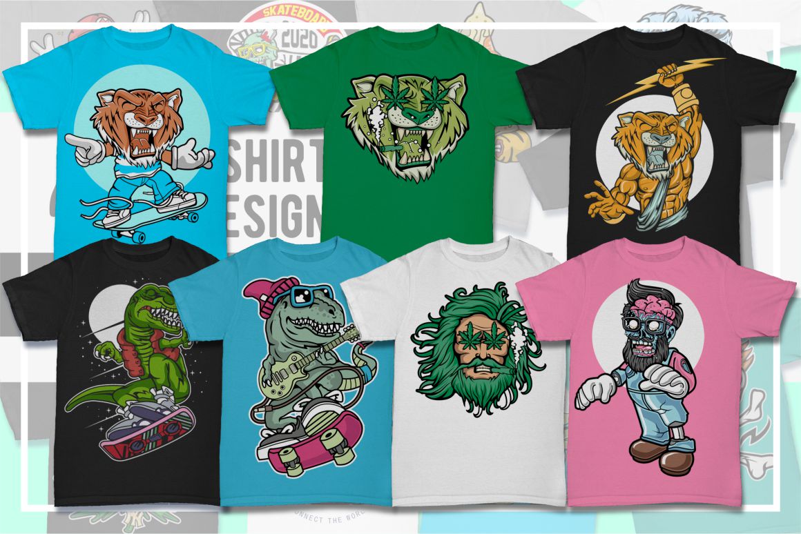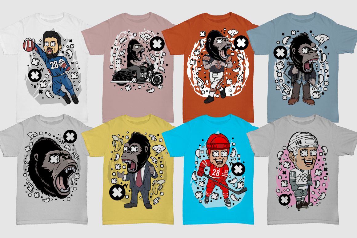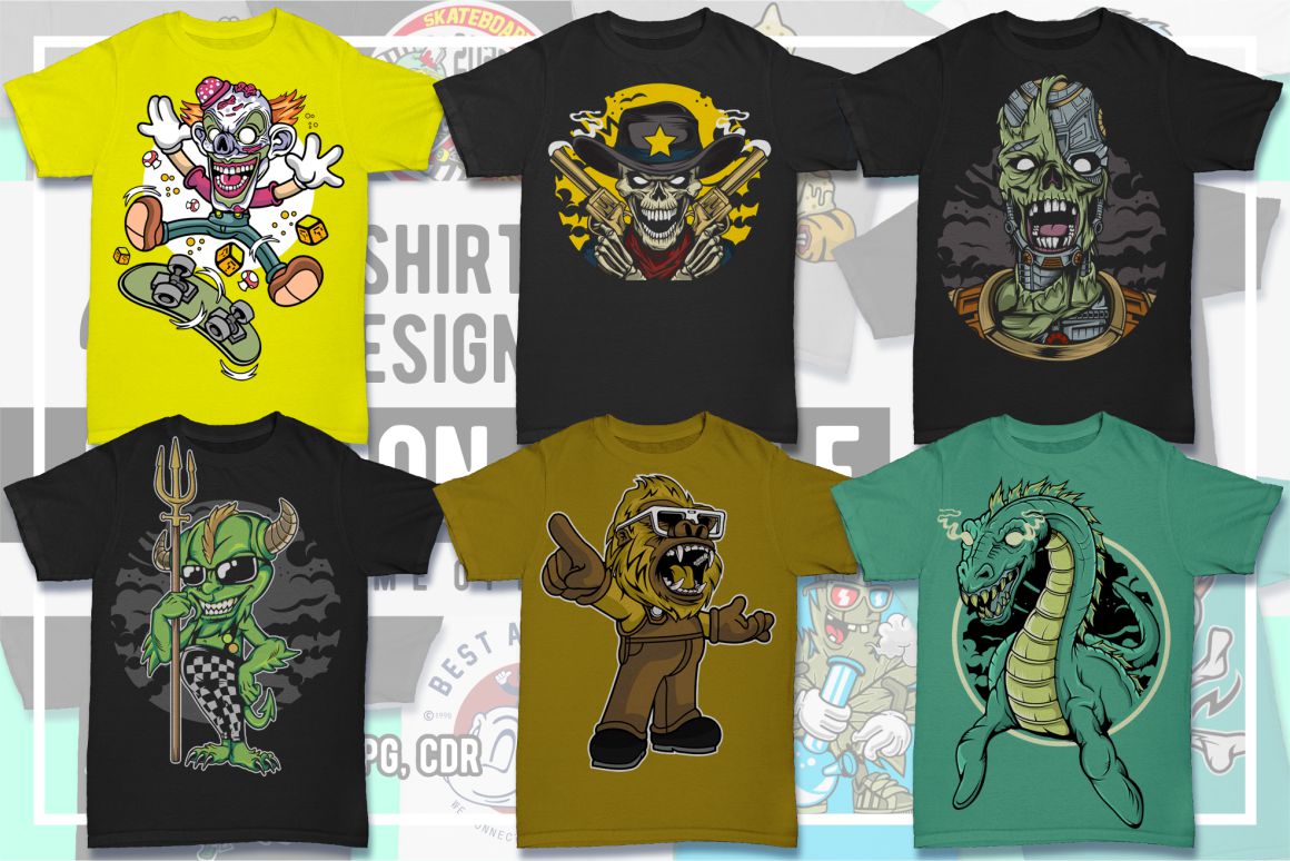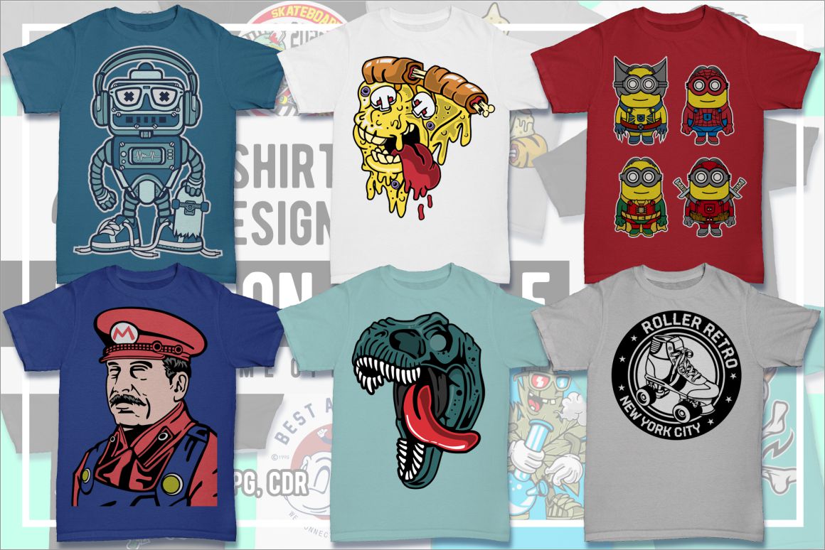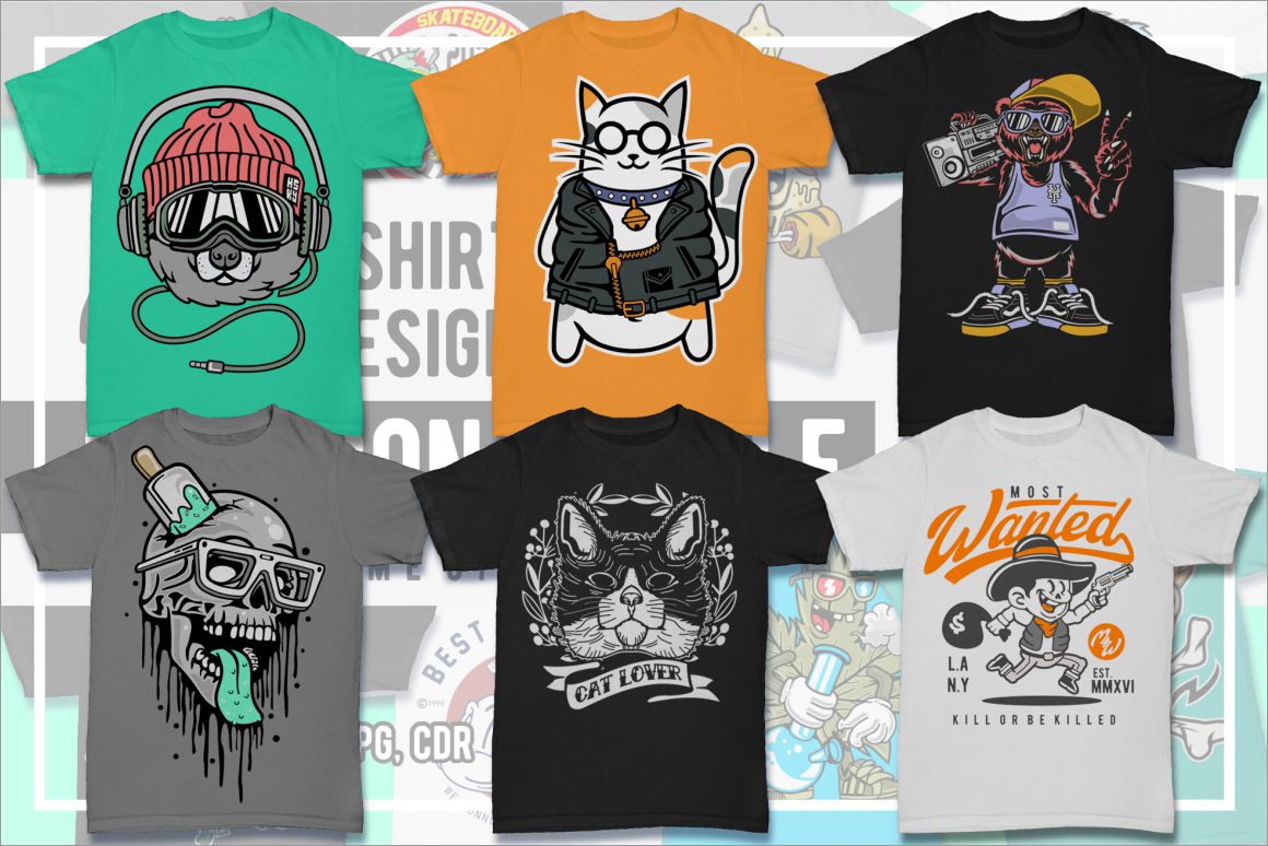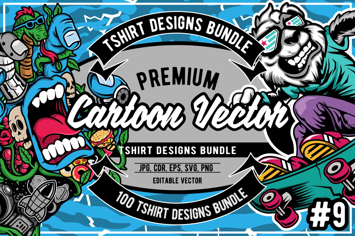 Create amazing cartoon style designs – 25 various T-shirt, poster or sticker vector designs bundles in 1 HUGE mega bundle!