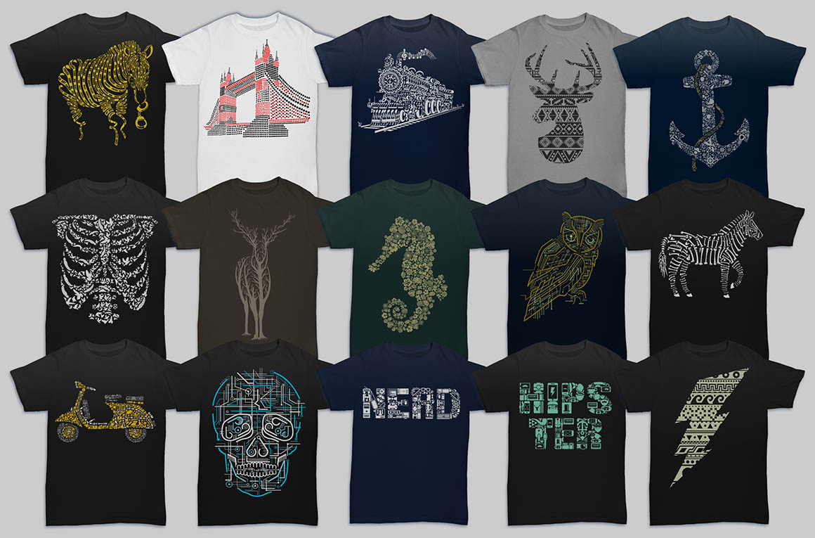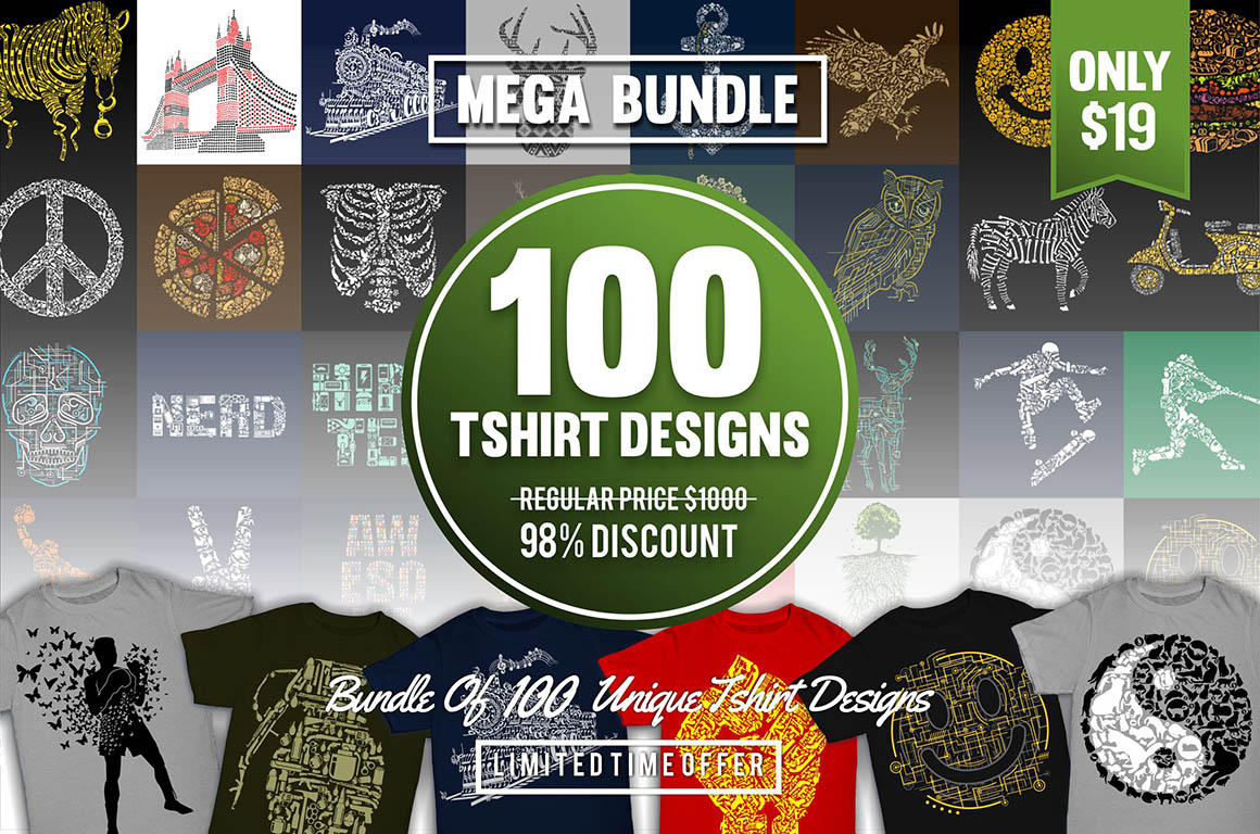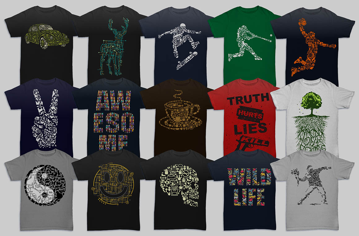 All these 2568 amazing vector illustrations from 8 pro T-shirt designers in 25 bundles can help you with new project in a unique way. So be sure to check out the full details and view the preview images because this bundle is cool and so so BIG 😉