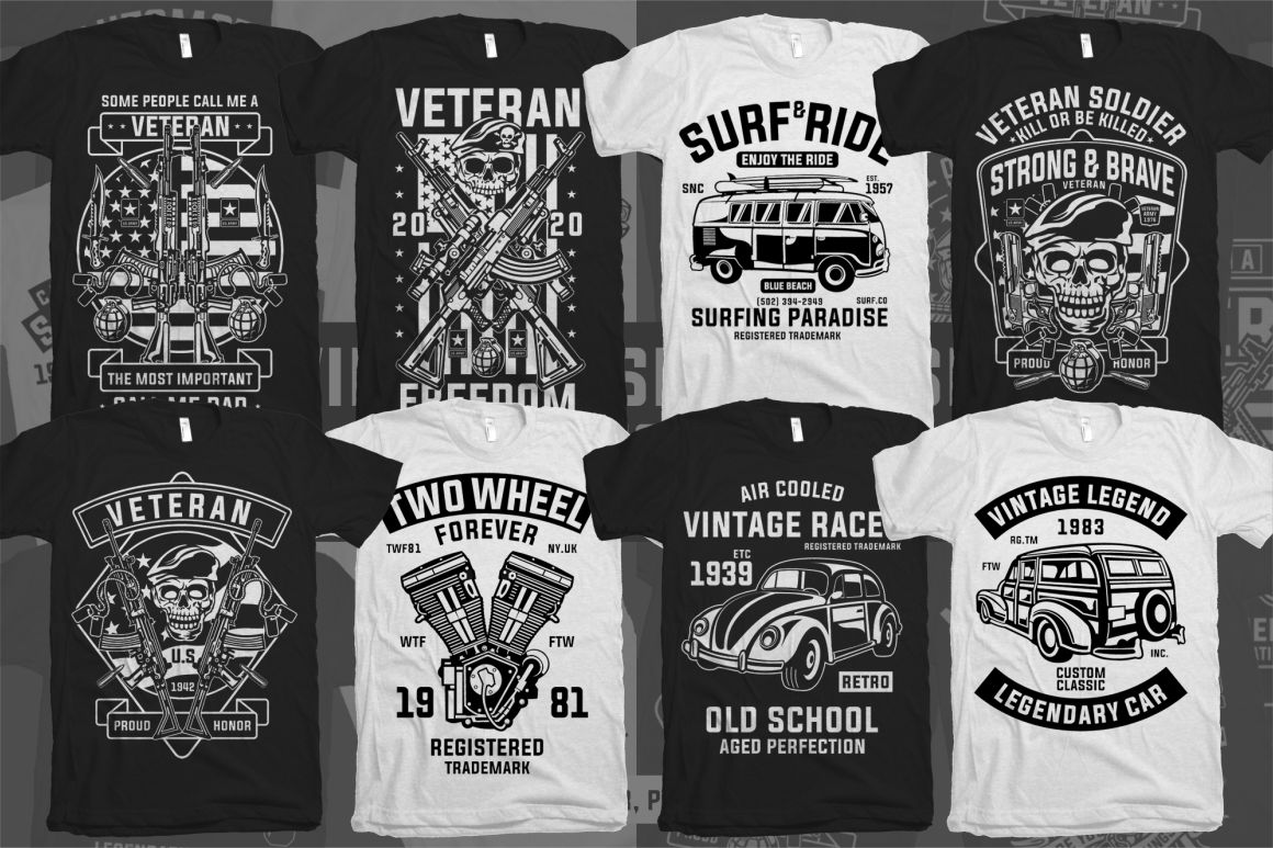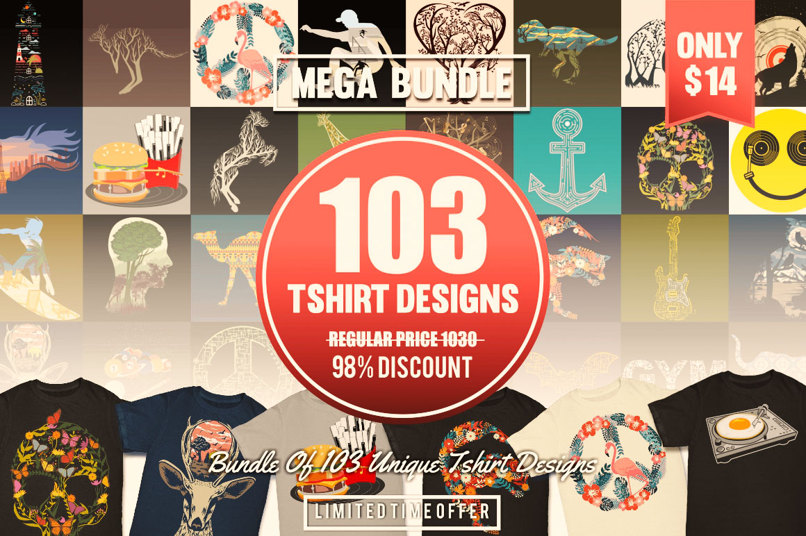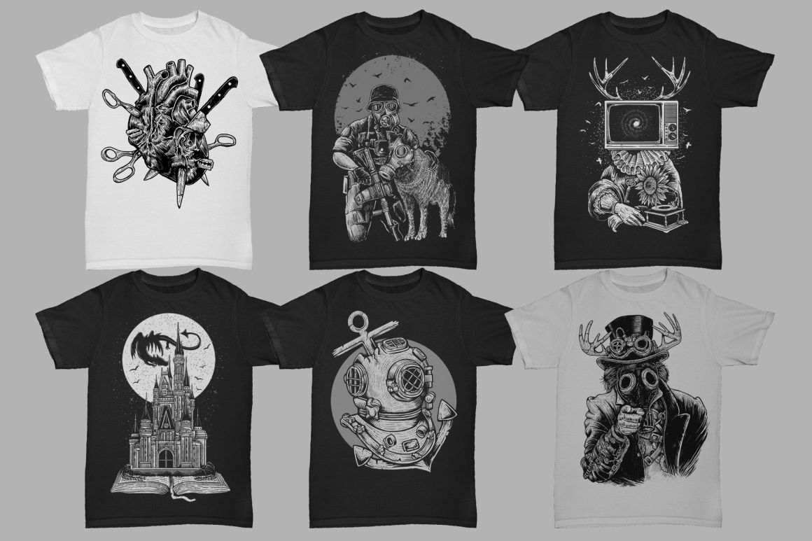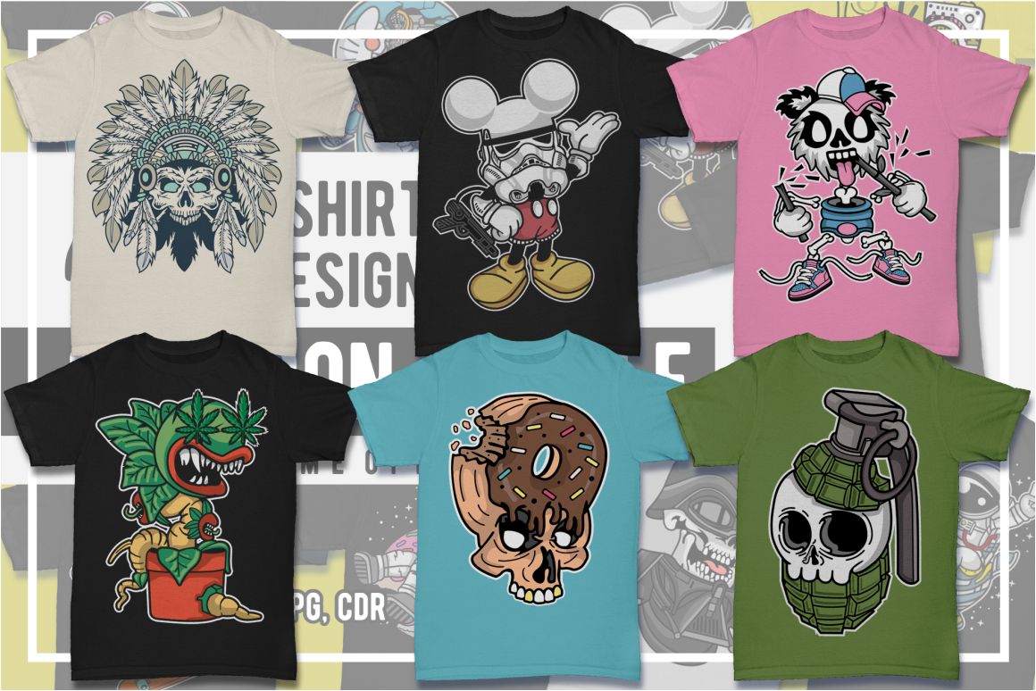 All these 2568 amazing vector illustrations from 8 pro T-shirt designers in 25 bundles can help you with new project in a unique way. So be sure to check out the full details and view the preview images because this bundle is cool and so so BIG 😉