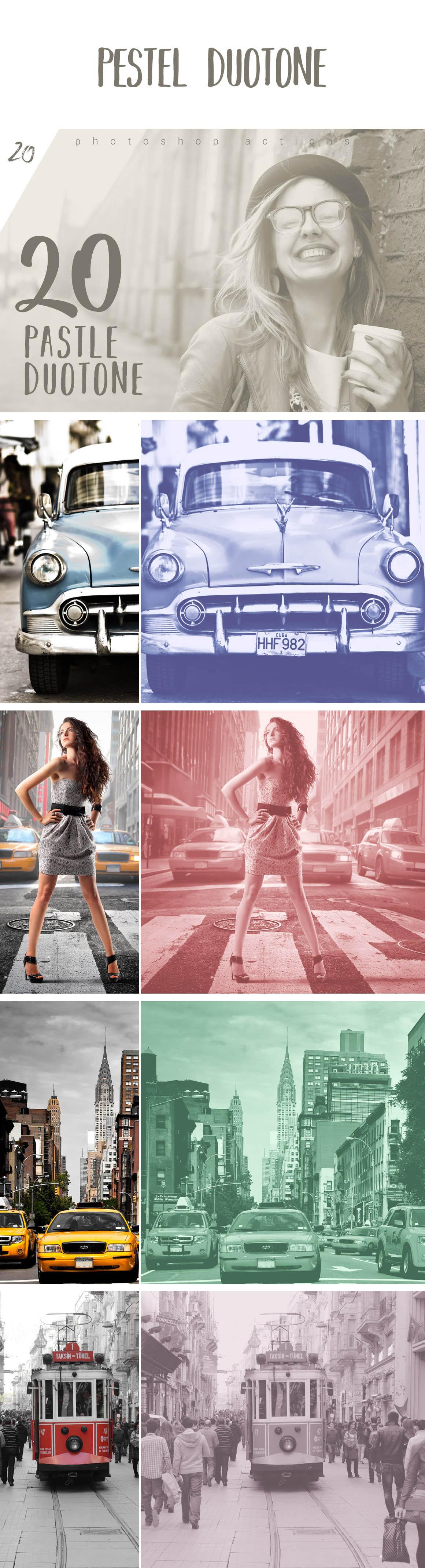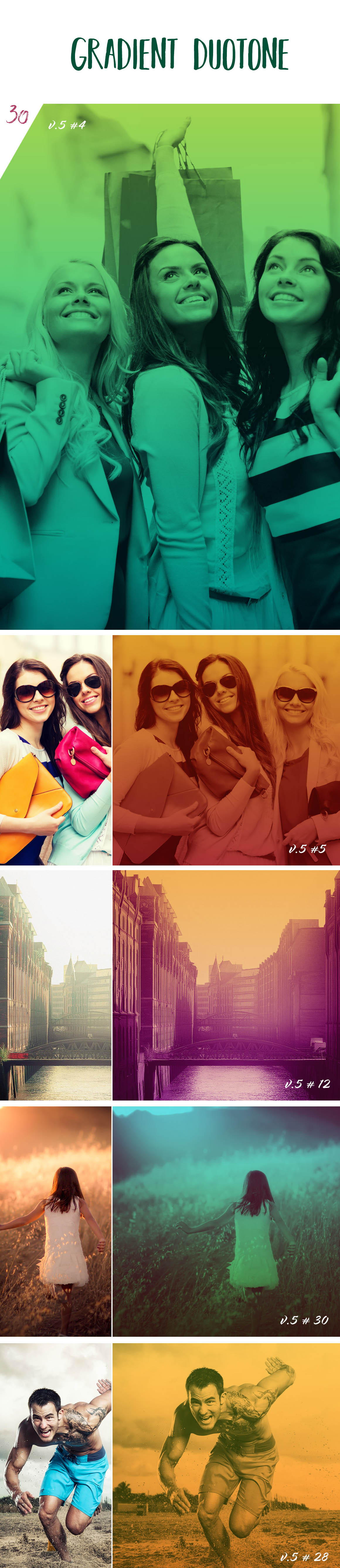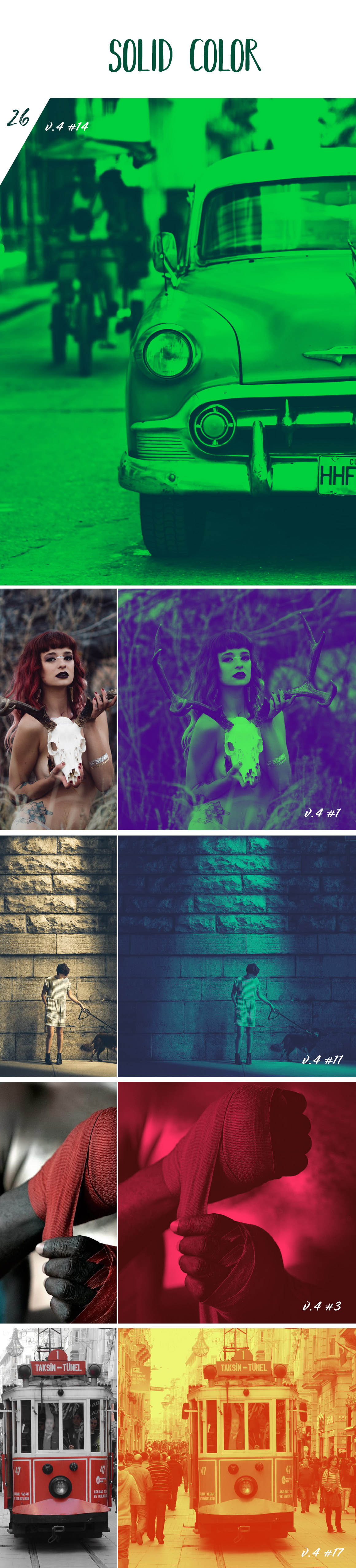 - 7 amazing duotone Photoshop action sets with 290+ photo actions!