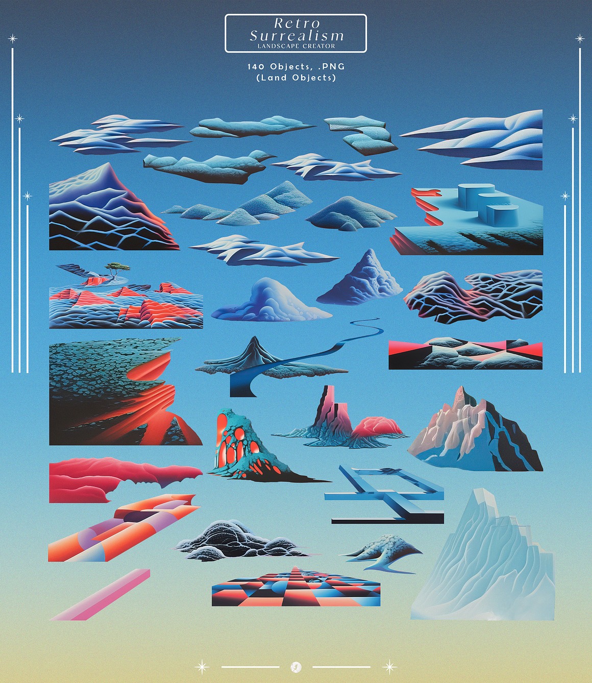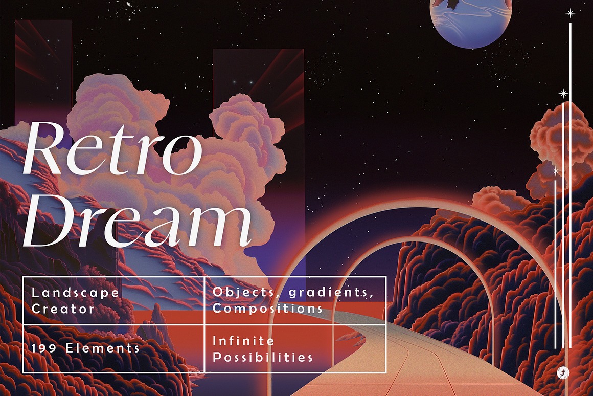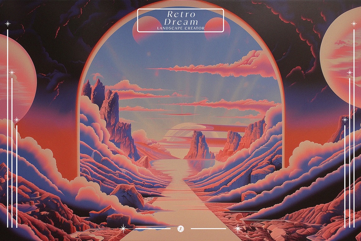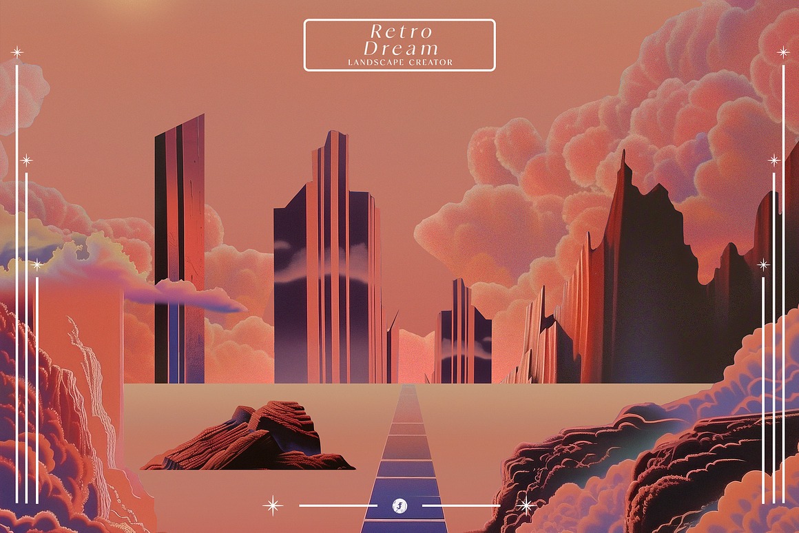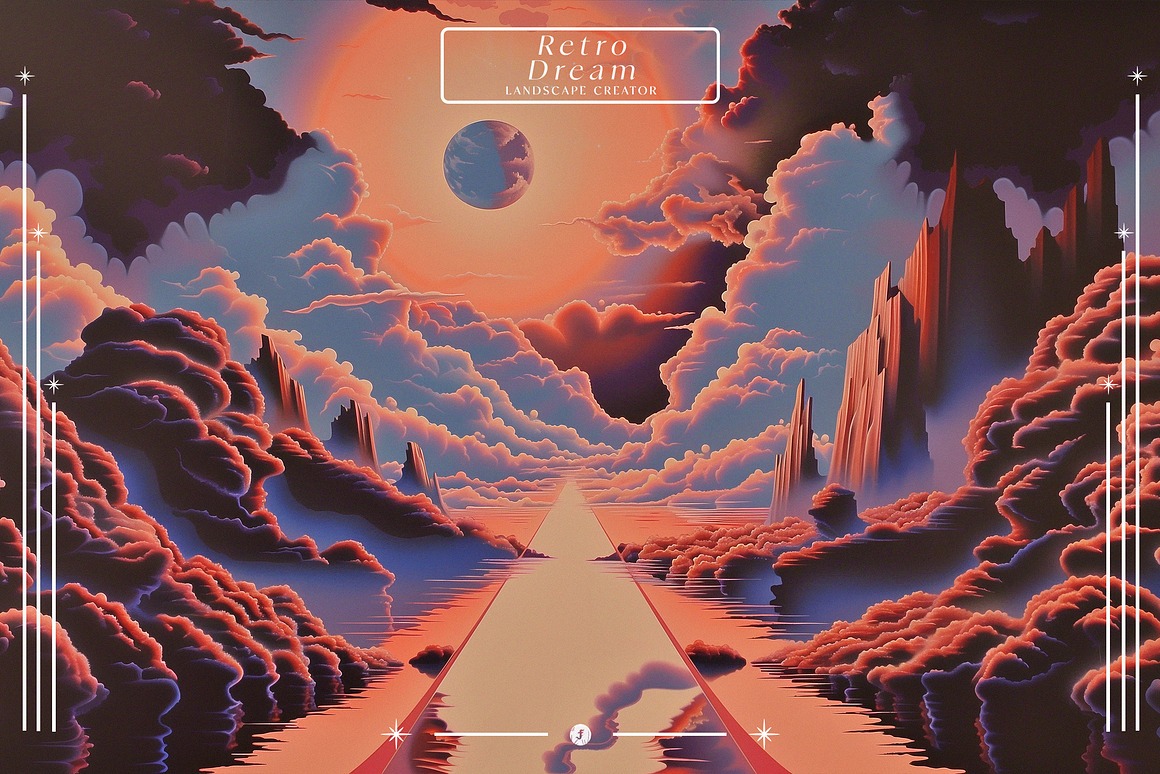 Endless Possibilities With the “Retro Dream Landscape Creator,” you can effortlessly design stunning artwork, promotional materials, album covers, or even immersive digital experiences. The high-resolution elements ensure that your final products look sharp and vibrant, whether in print or on-screen.