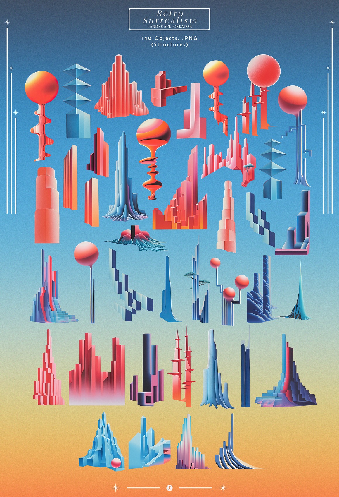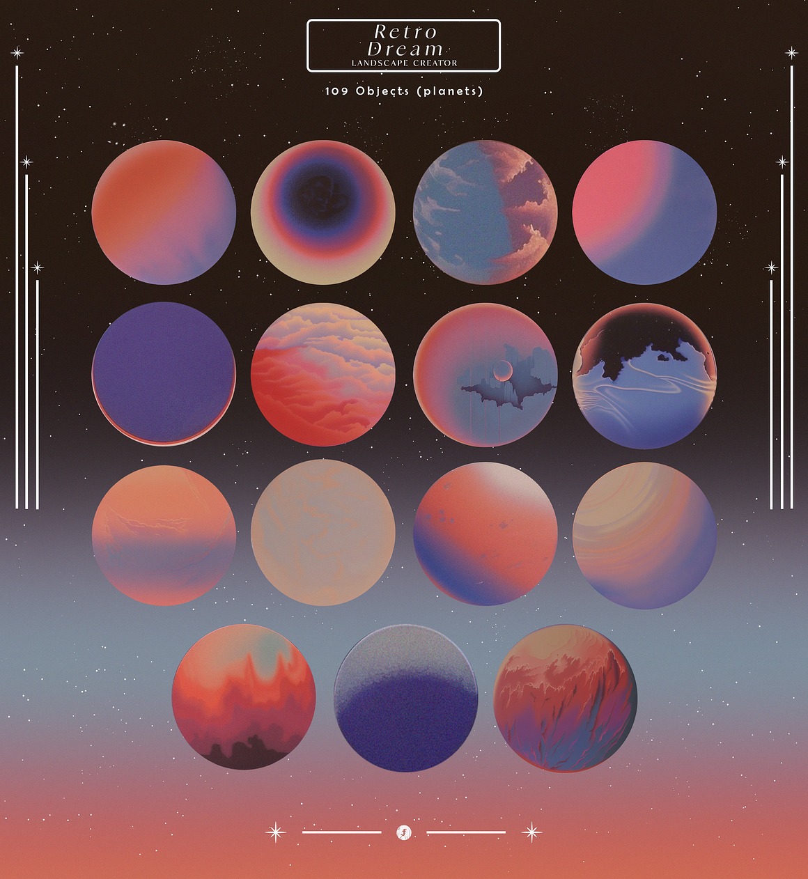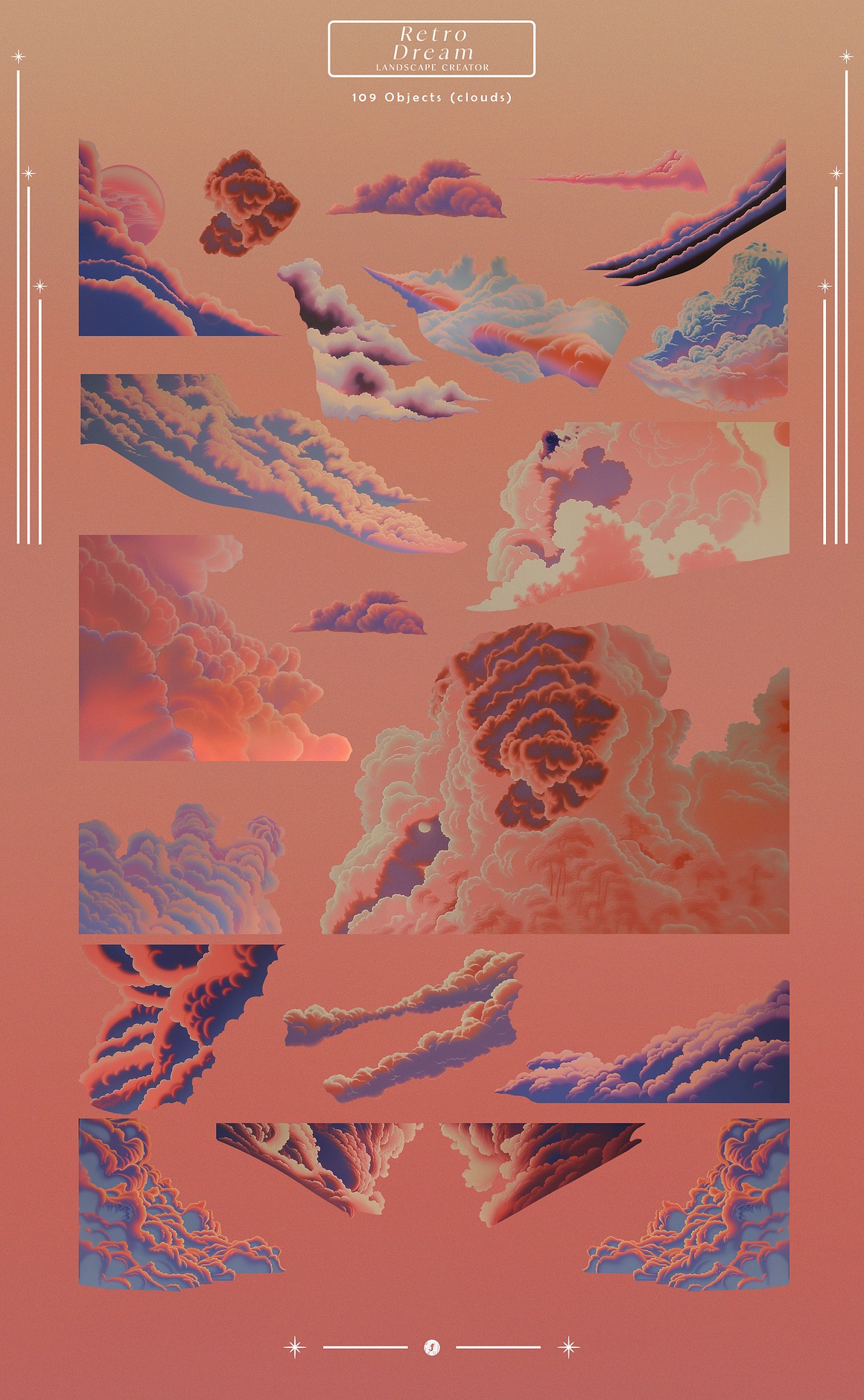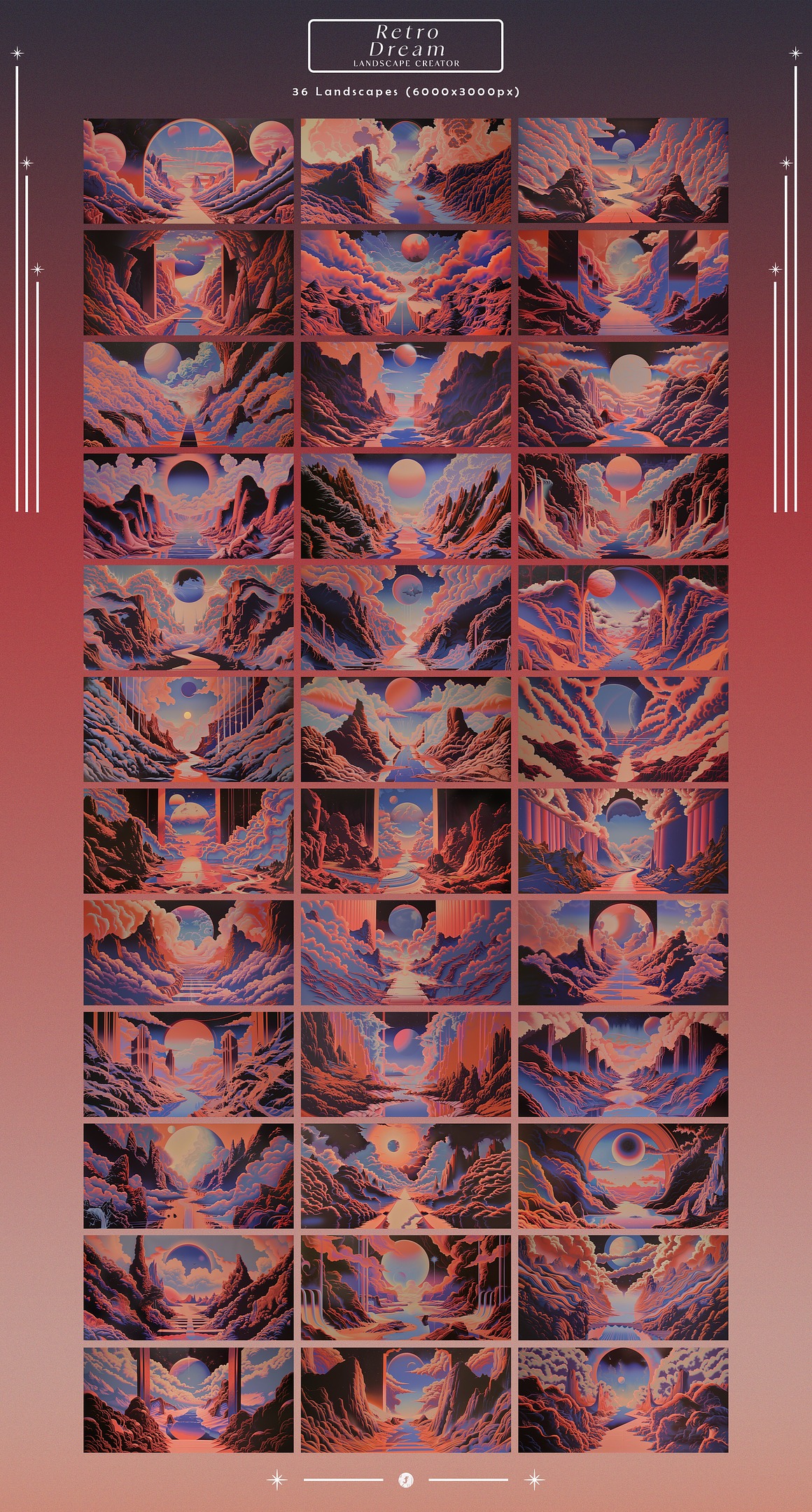 Endless Possibilities With the “Retro Dream Landscape Creator,” you can effortlessly design stunning artwork, promotional materials, album covers, or even immersive digital experiences. The high-resolution elements ensure that your final products look sharp and vibrant, whether in print or on-screen.