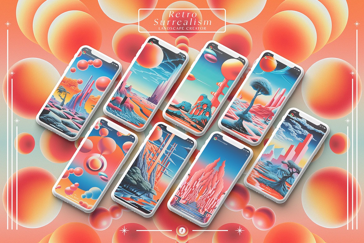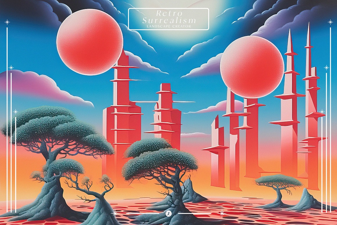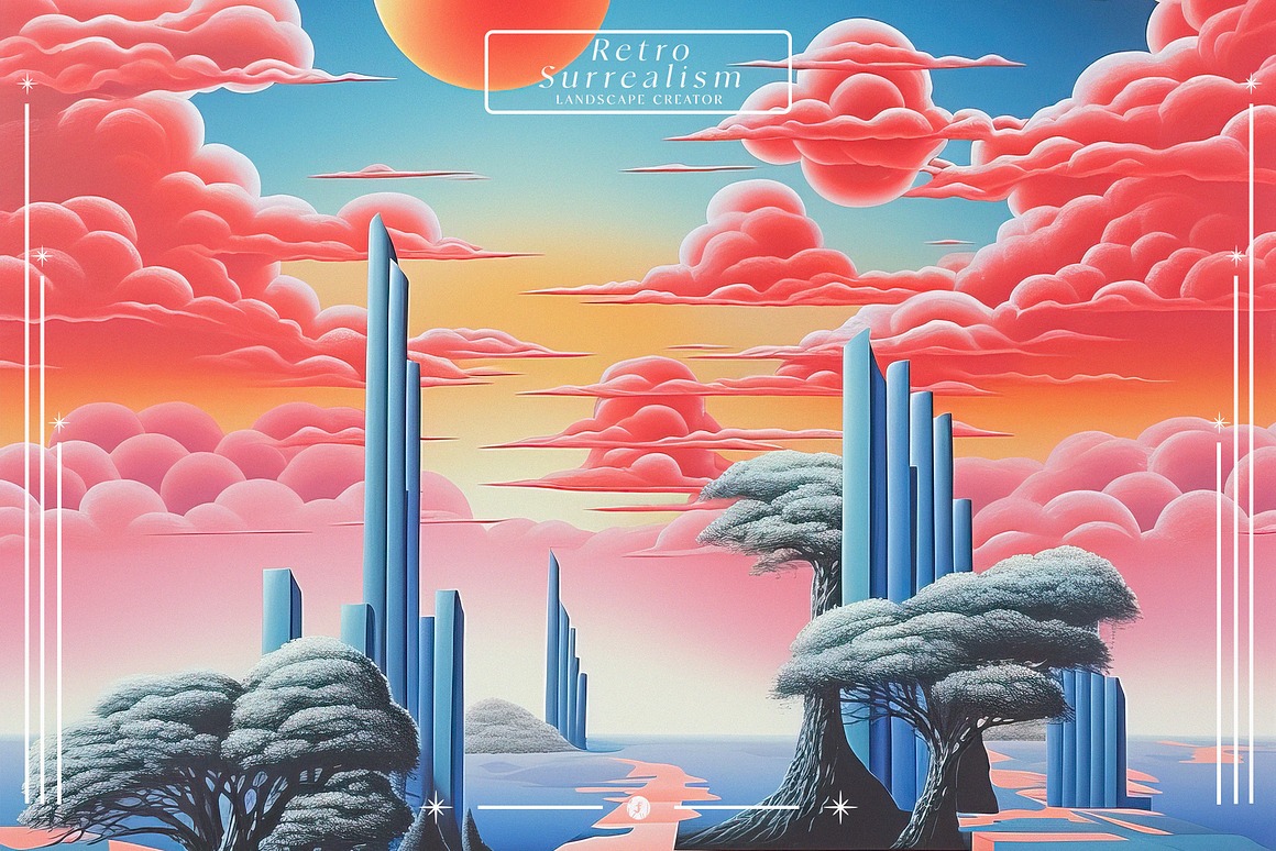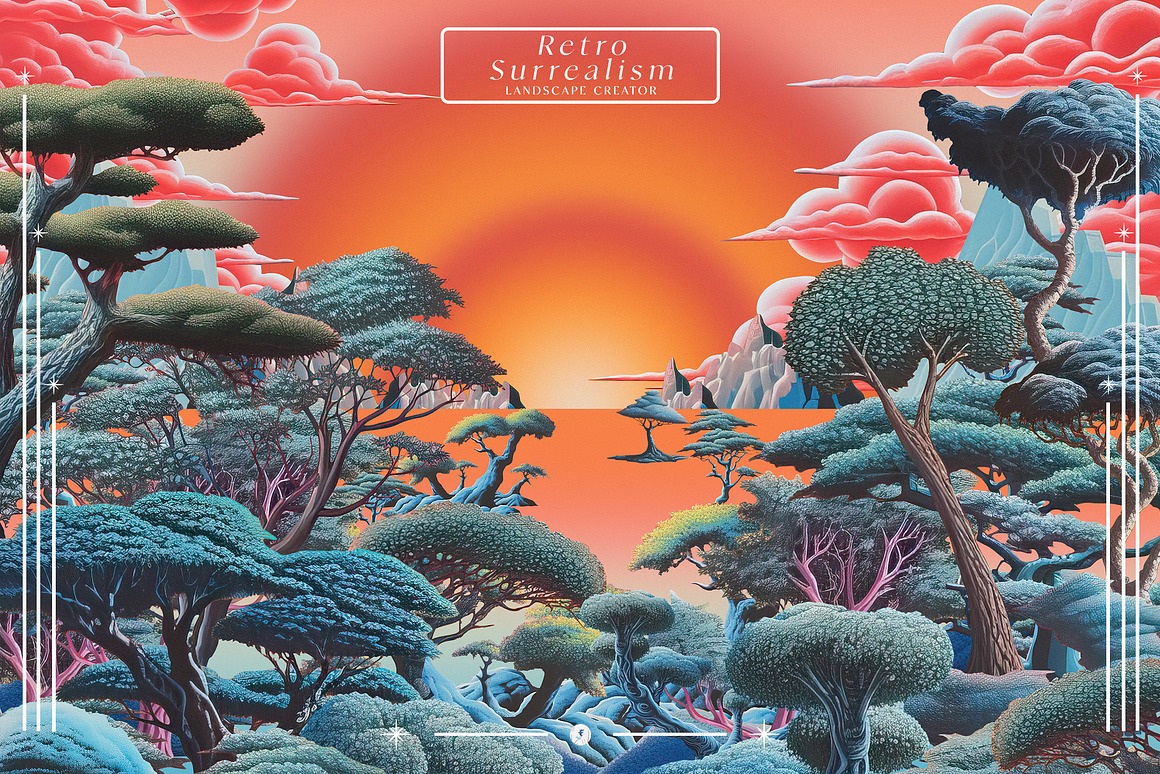 Introducing the “Retro Surrealism Landscape Creator” – a captivating collection that invites you to embark on a journey into the realm of imagination and visual exploration.
