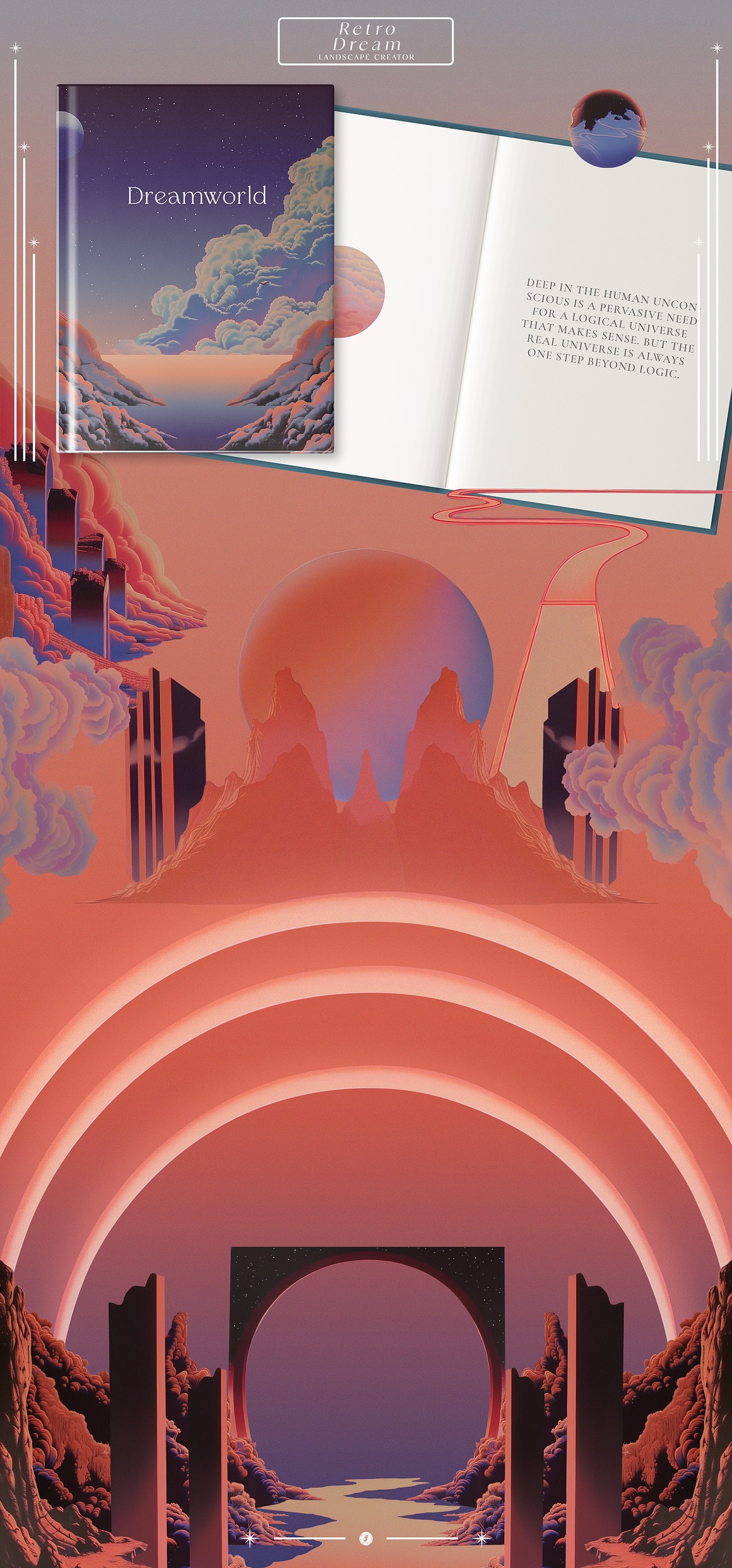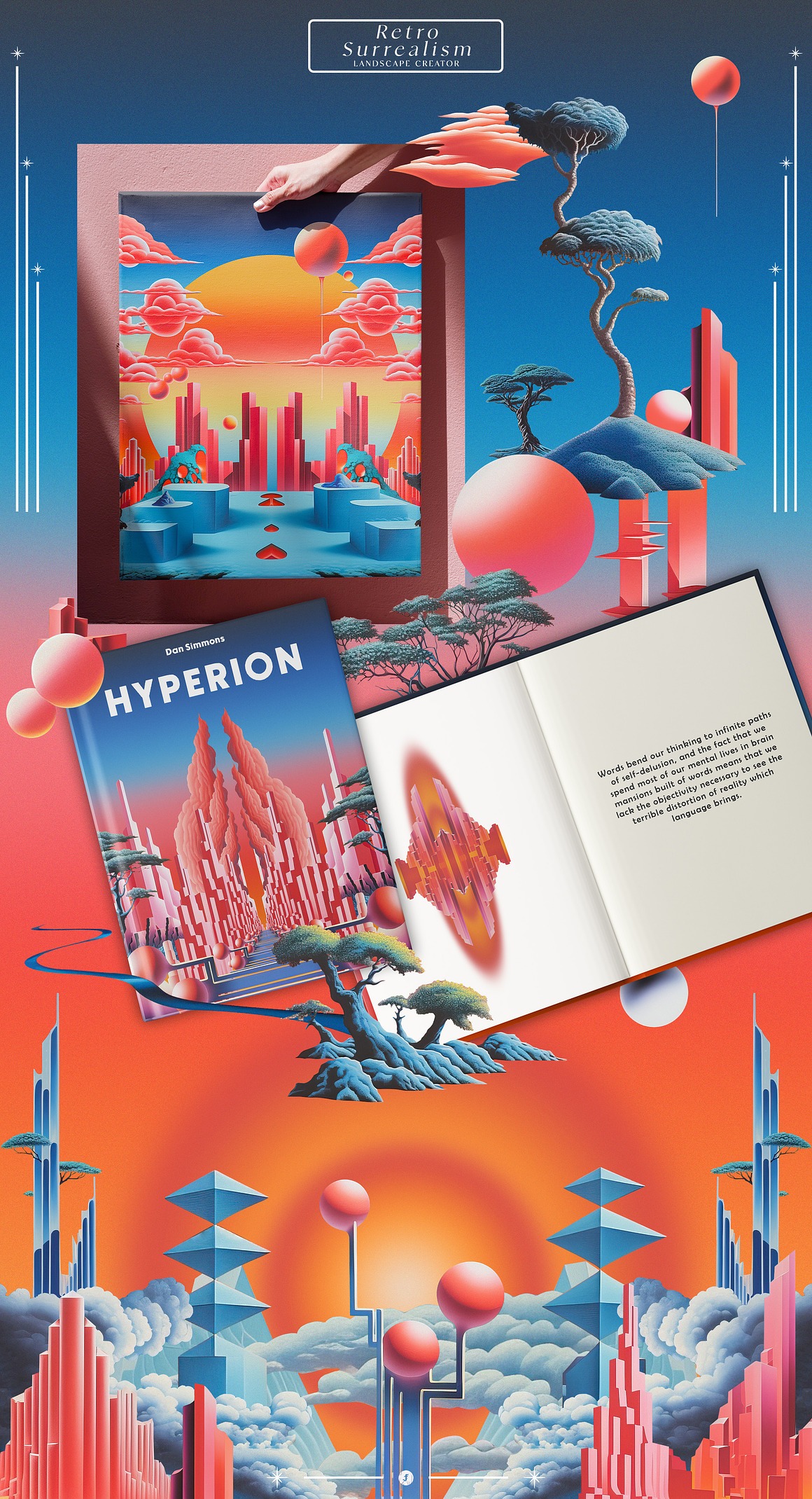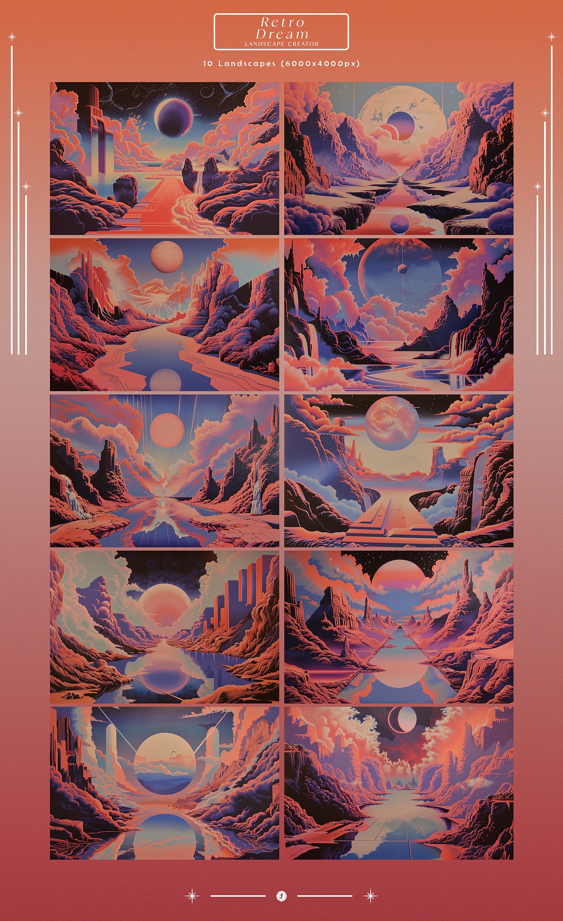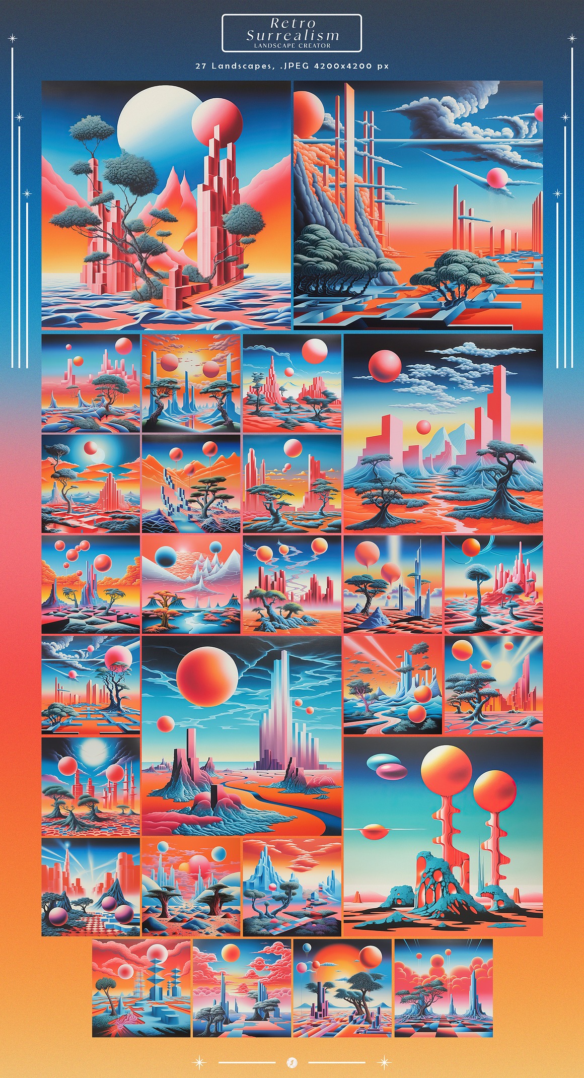Introducing the “Retro Surrealism Landscape Creator” – a captivating collection that invites you to embark on a journey into the realm of imagination and visual exploration.