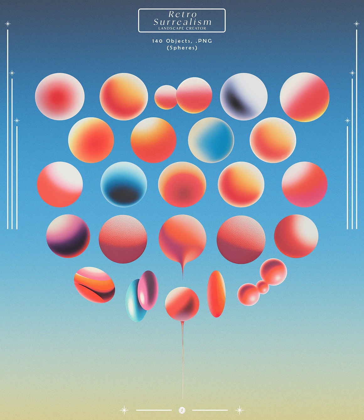 We’re trying to get the best & unique deals on the market, and this is one of them. 3 Surrealism Landscape Creators by Freezerondigital contains 3 graphic creators (hi-res JPG or PNG files). Explore the retro-futuristic aesthetic and let your imagination run free in this nostalgic yet contemporary collection. The possibilities are only limited by your creativity.