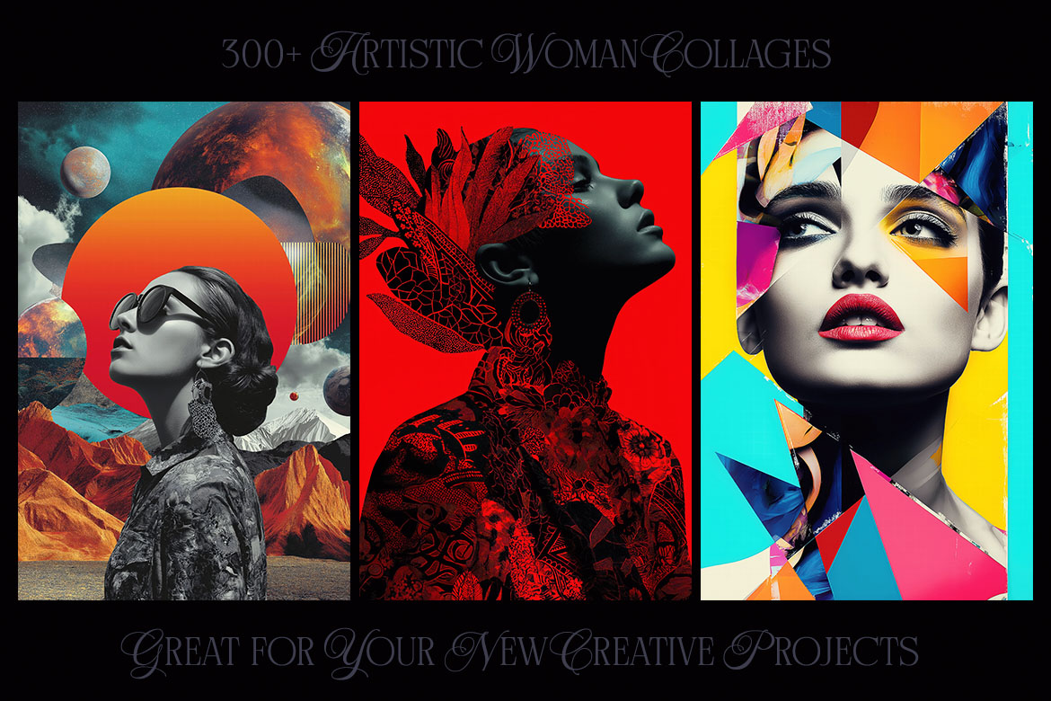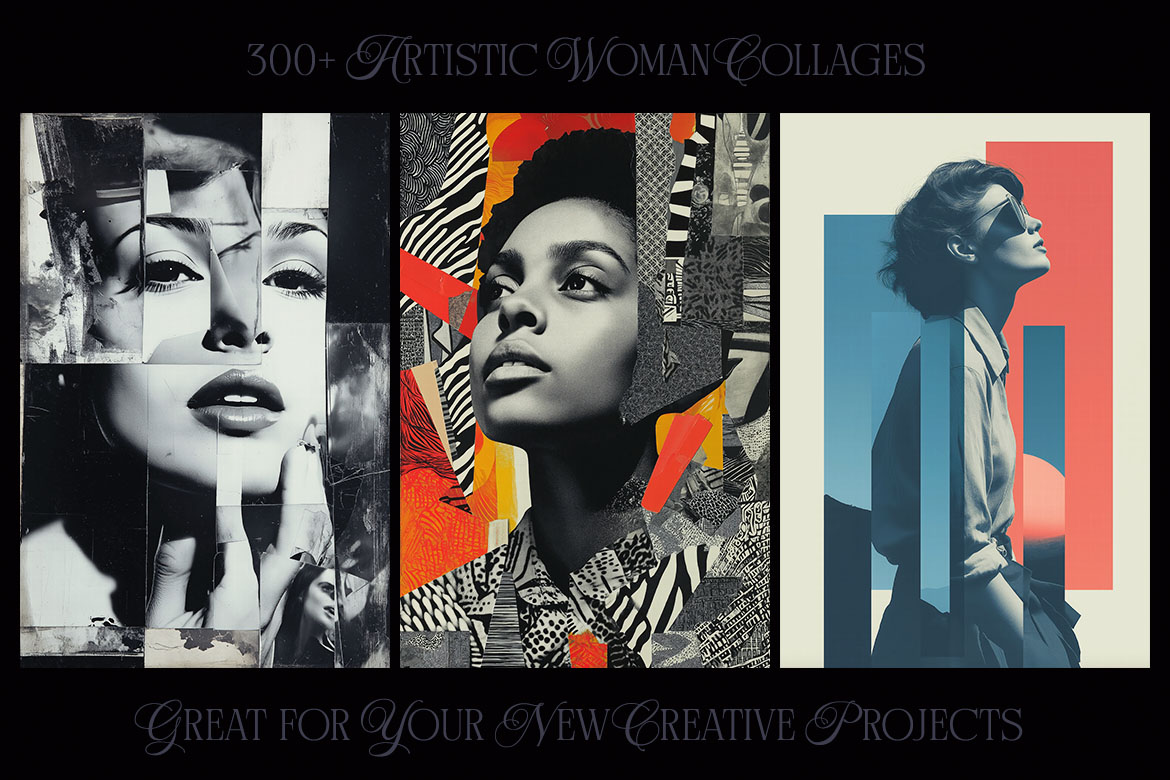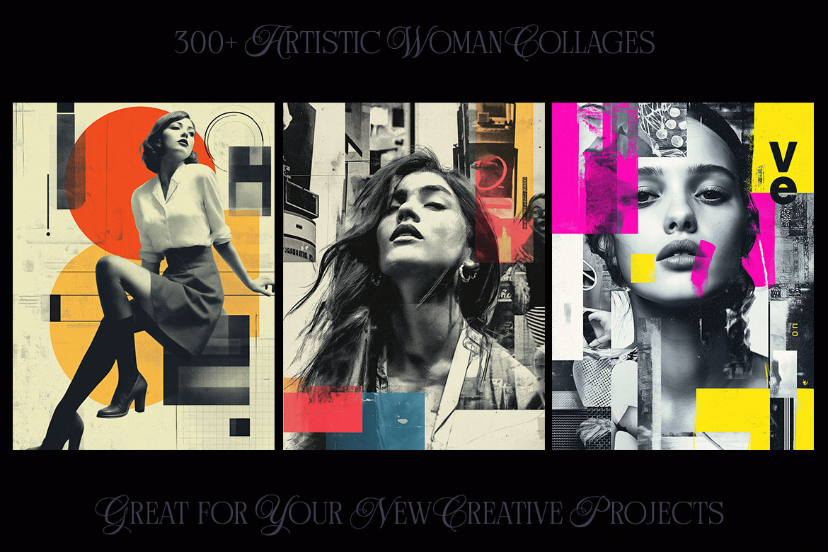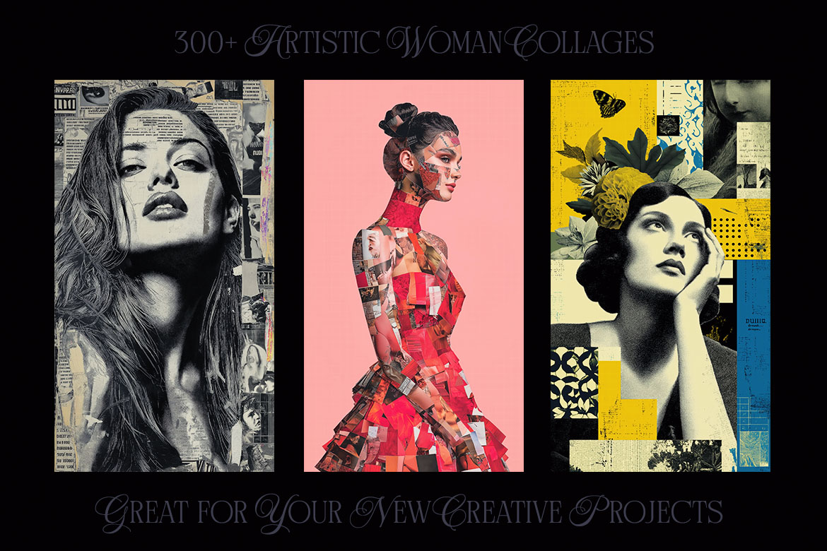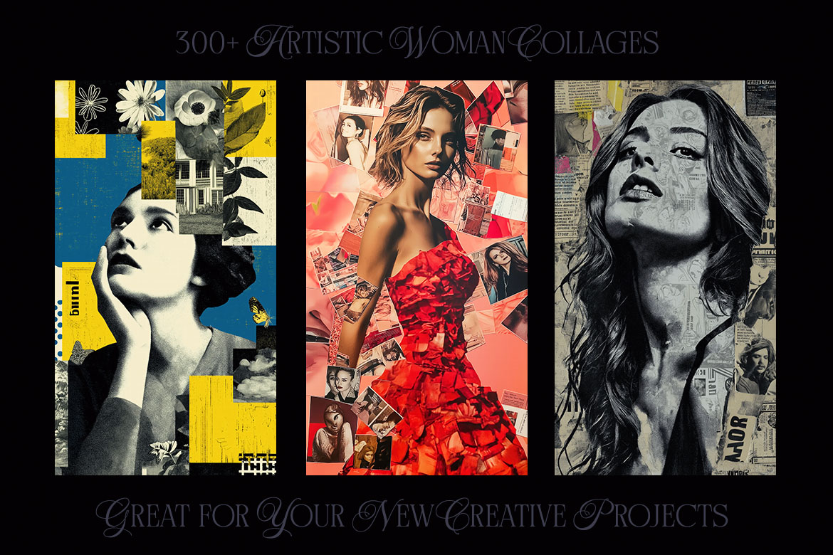 Want to spice up your new project? With 300+ creative woman collage pictures you can update your new digital projects for web or print designs. Great for posters, flyers, cards or web backgrounds.