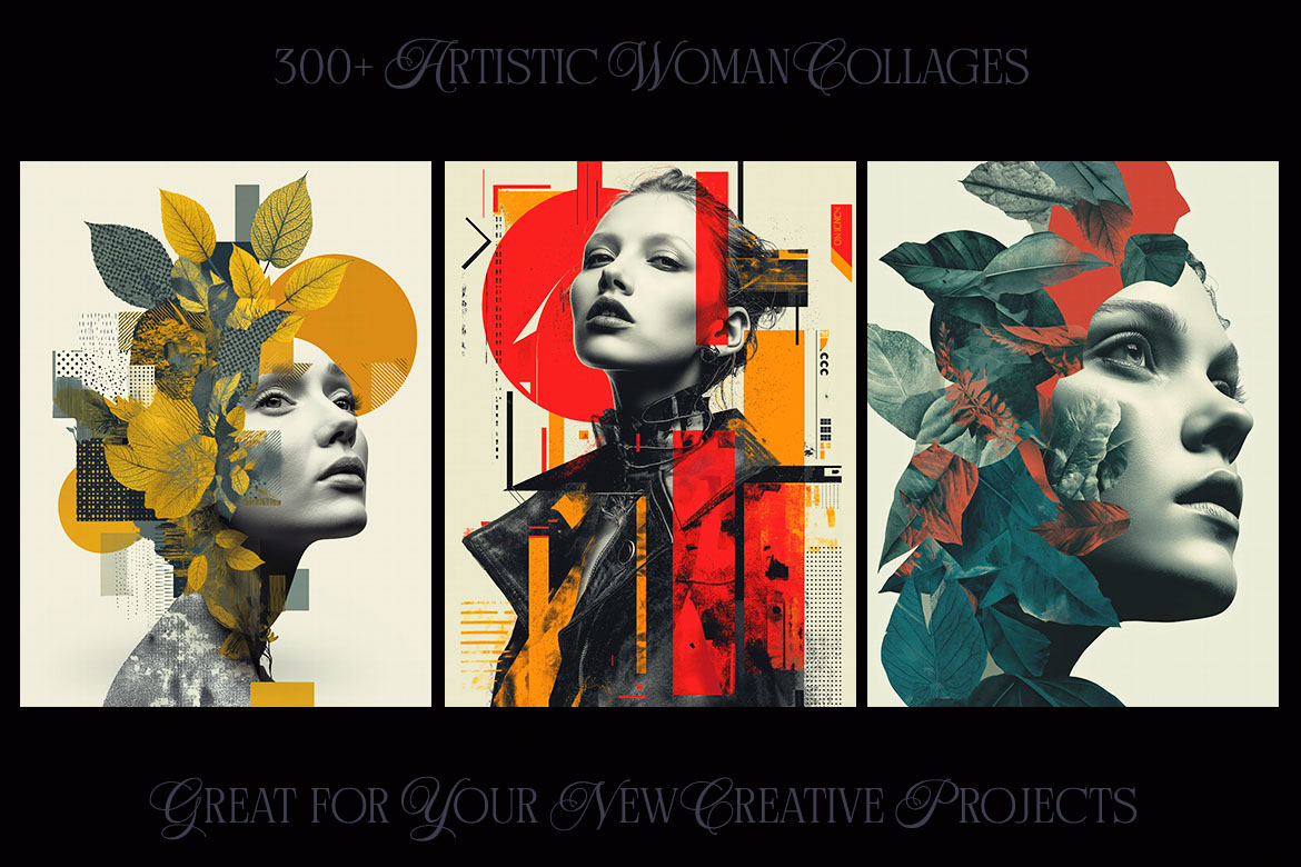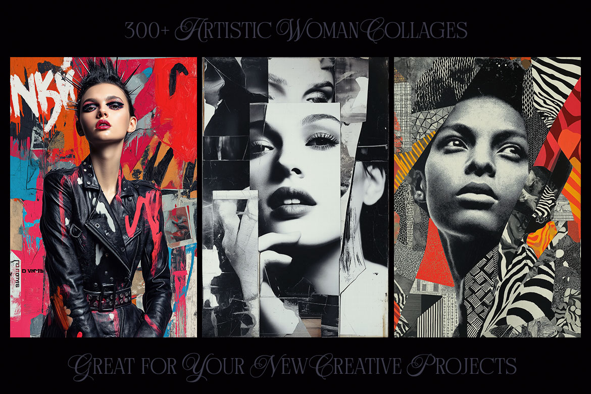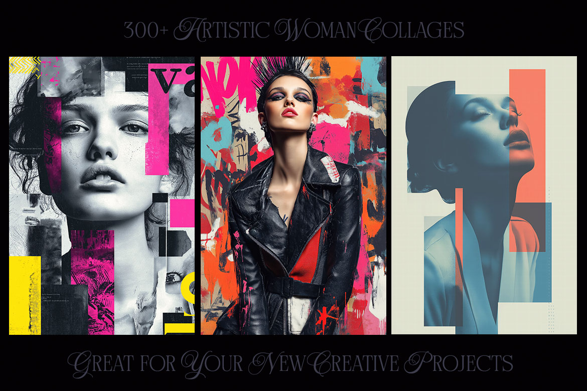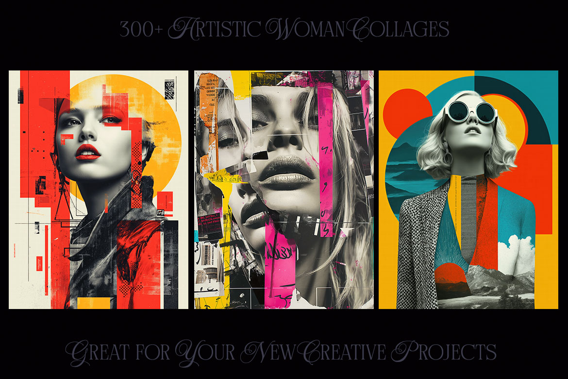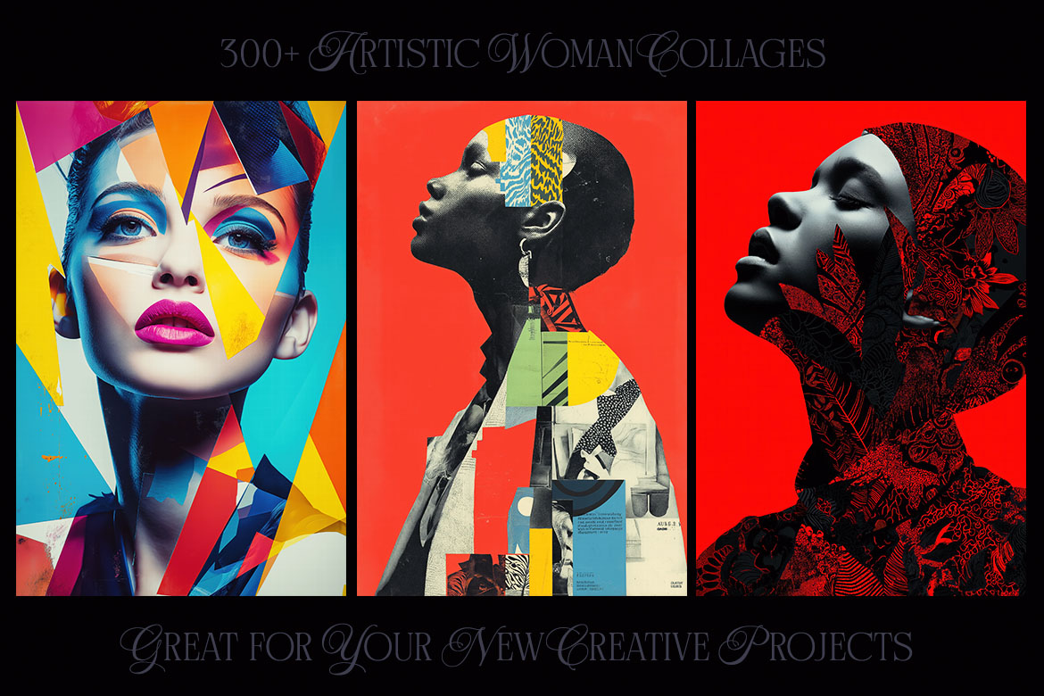 Want to spice up your new project? With 300+ creative woman collage pictures you can update your new digital projects for web or print designs. Great for posters, flyers, cards or web backgrounds.