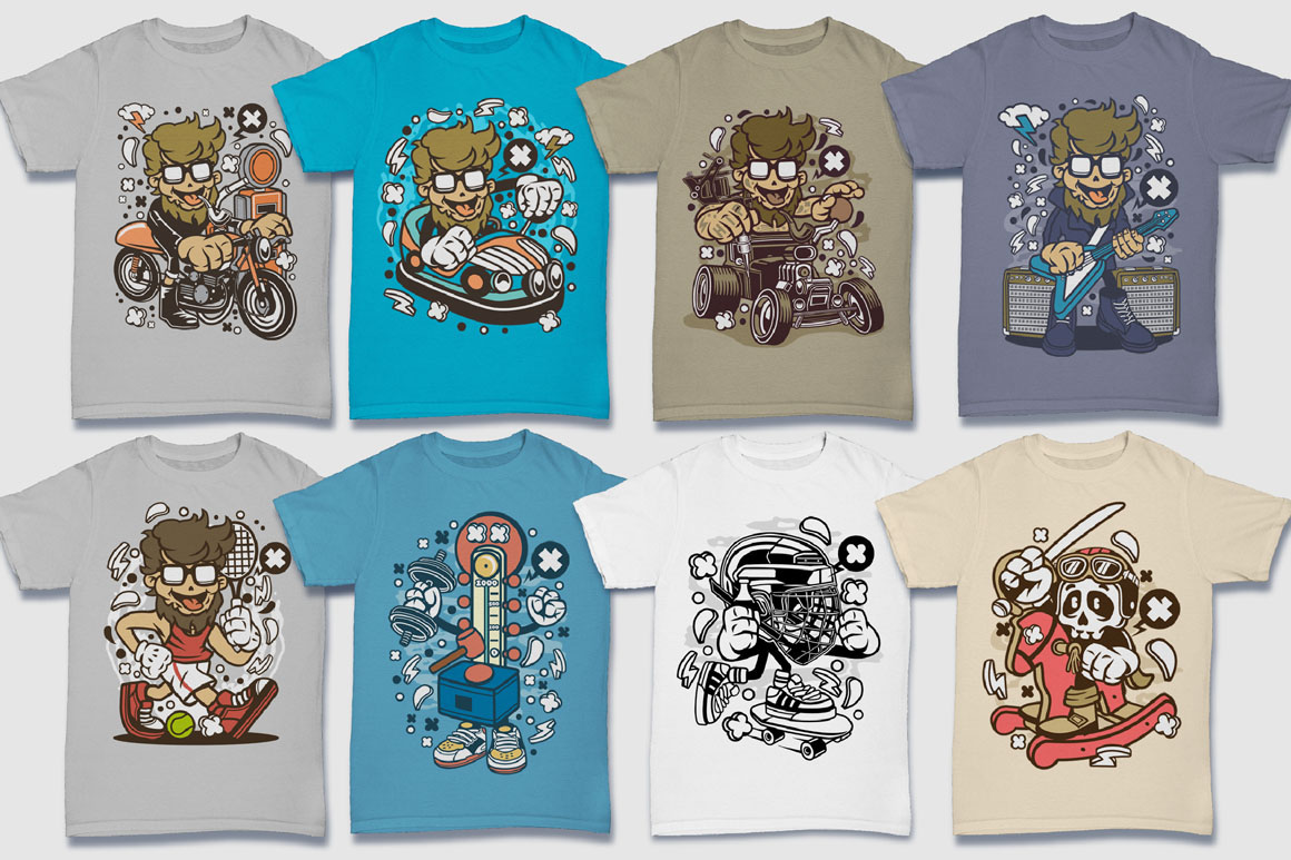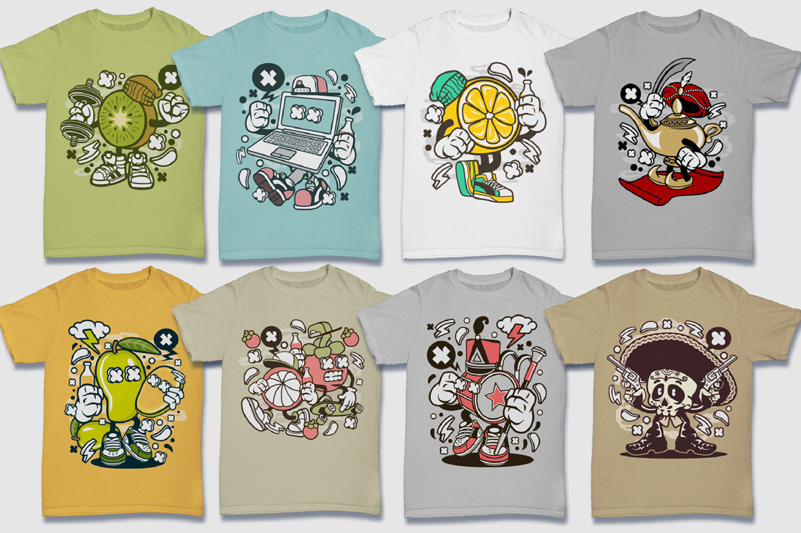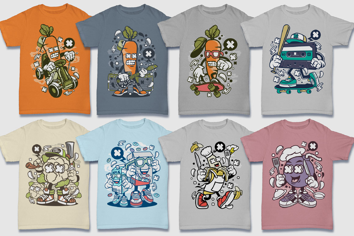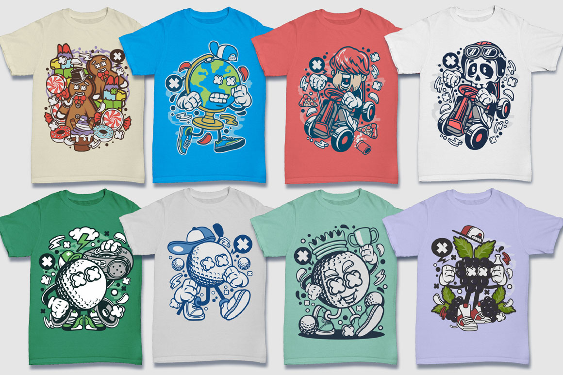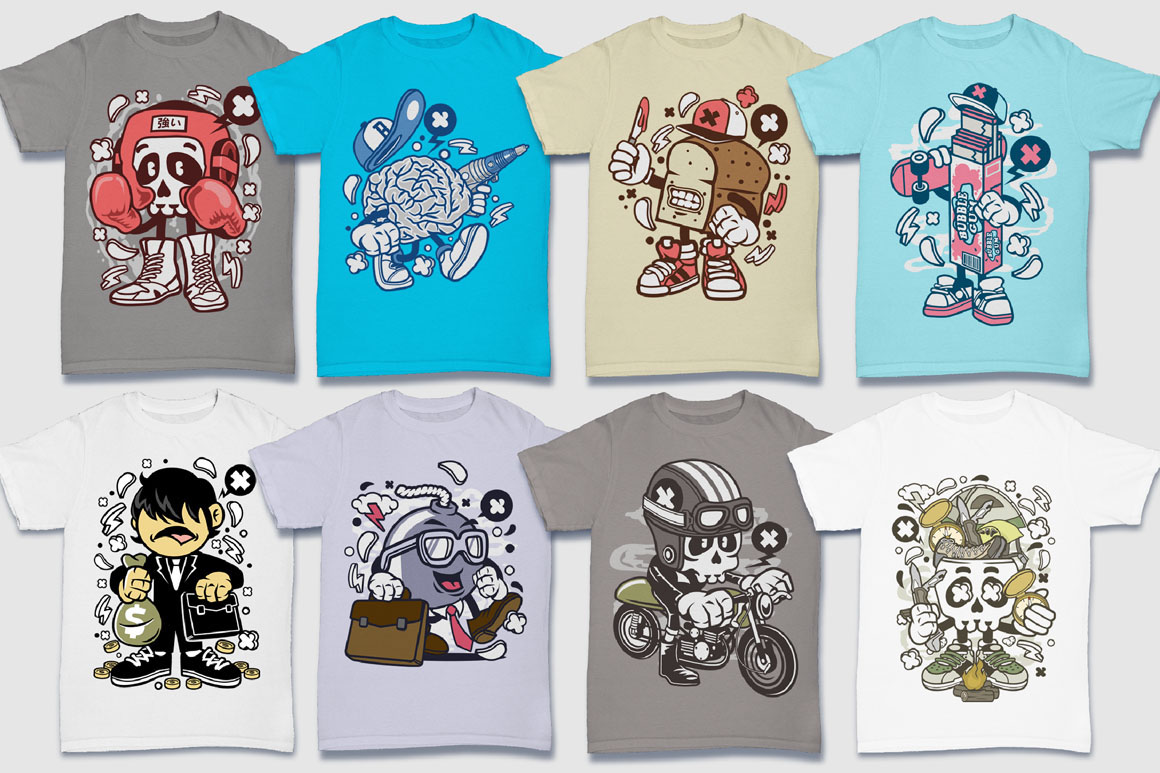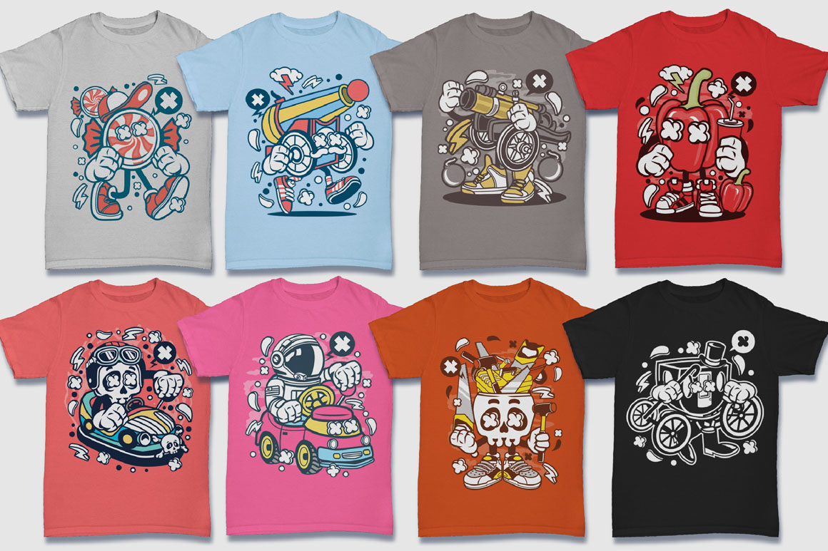If you need something new in your vector graphics library or some cool illustrations for your new project we have a unique vector illustrations bundle for you 🙂 Already 4th similar bundle from Dan Roach. This time with 300 brand new professional vector cartoon illustrations. You can create unique t-shirt designs, stickers, badges, posters, invitations or logo designs.