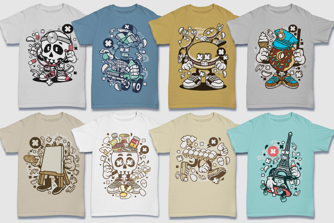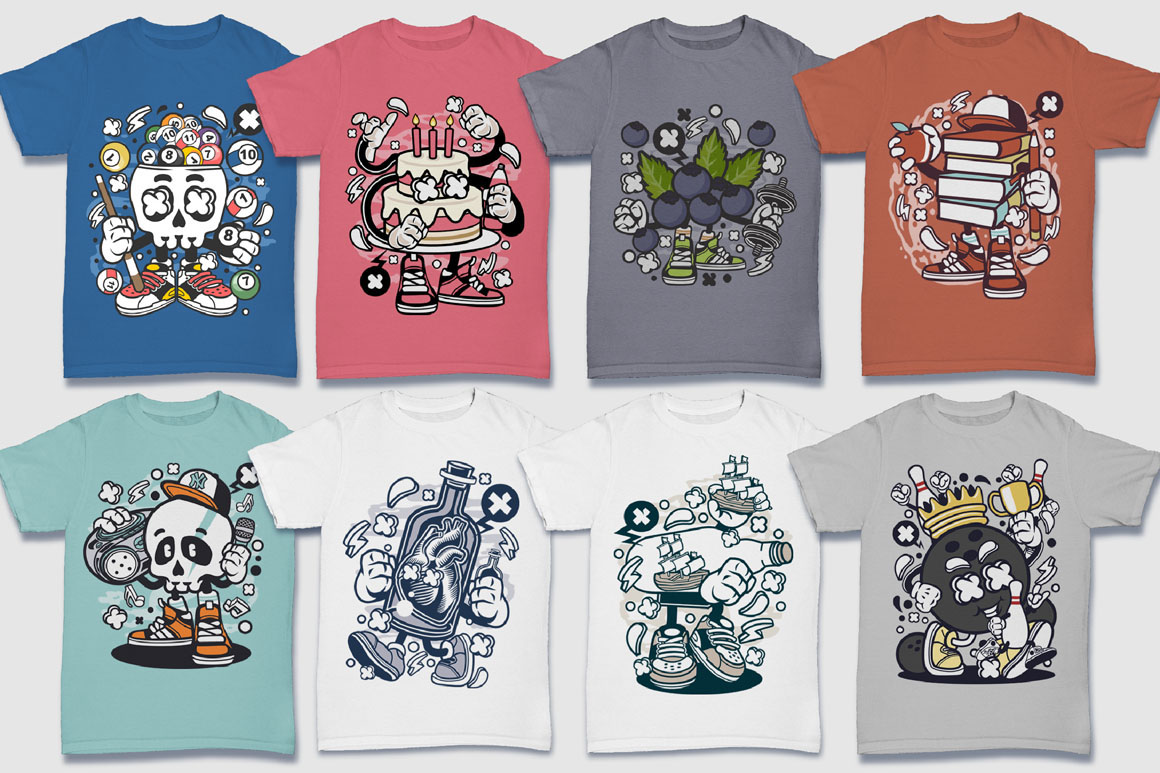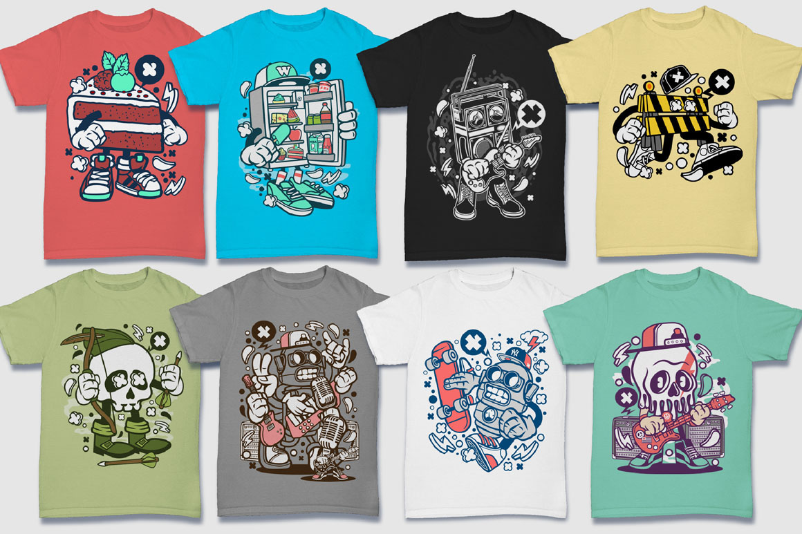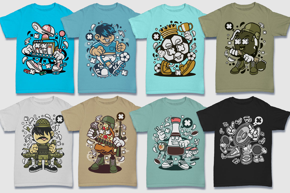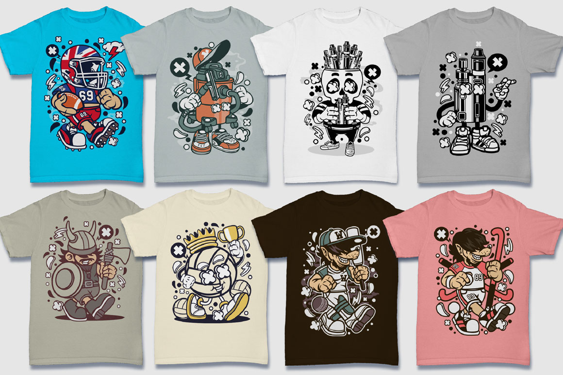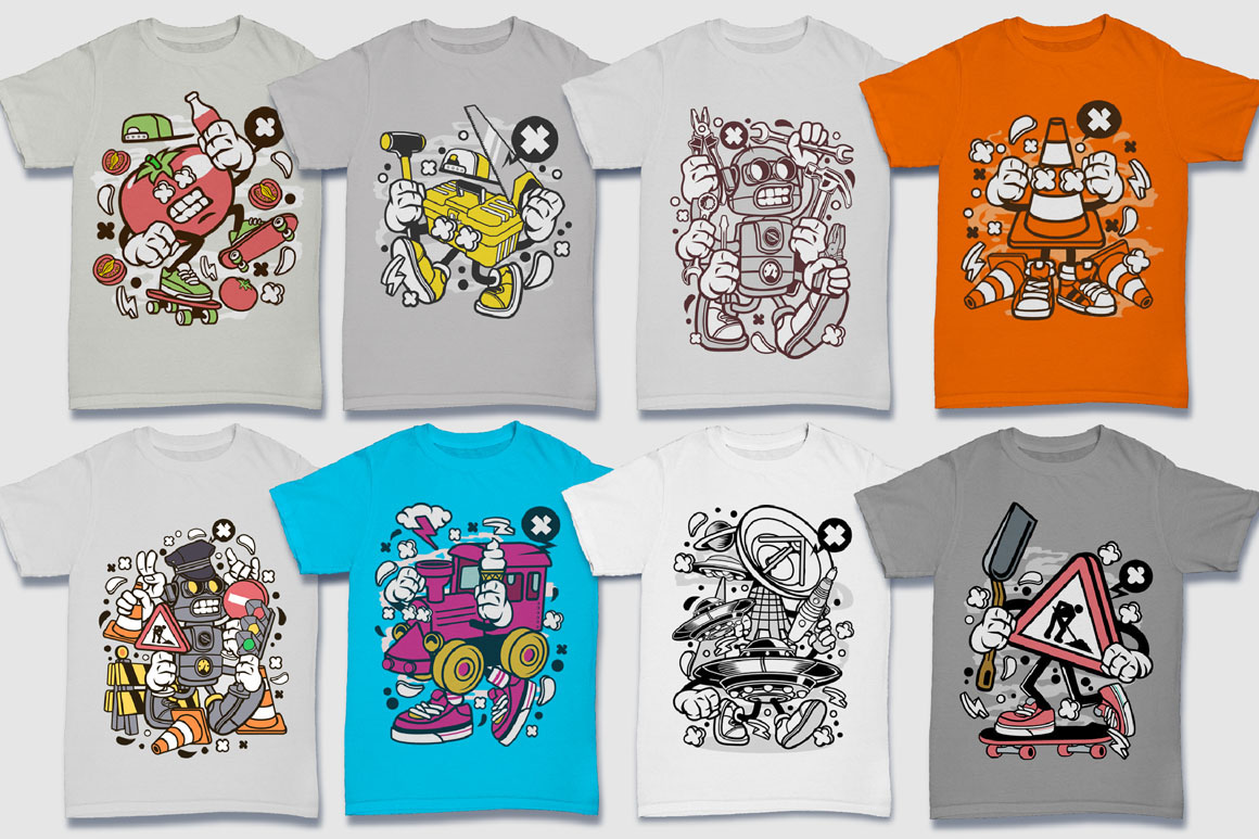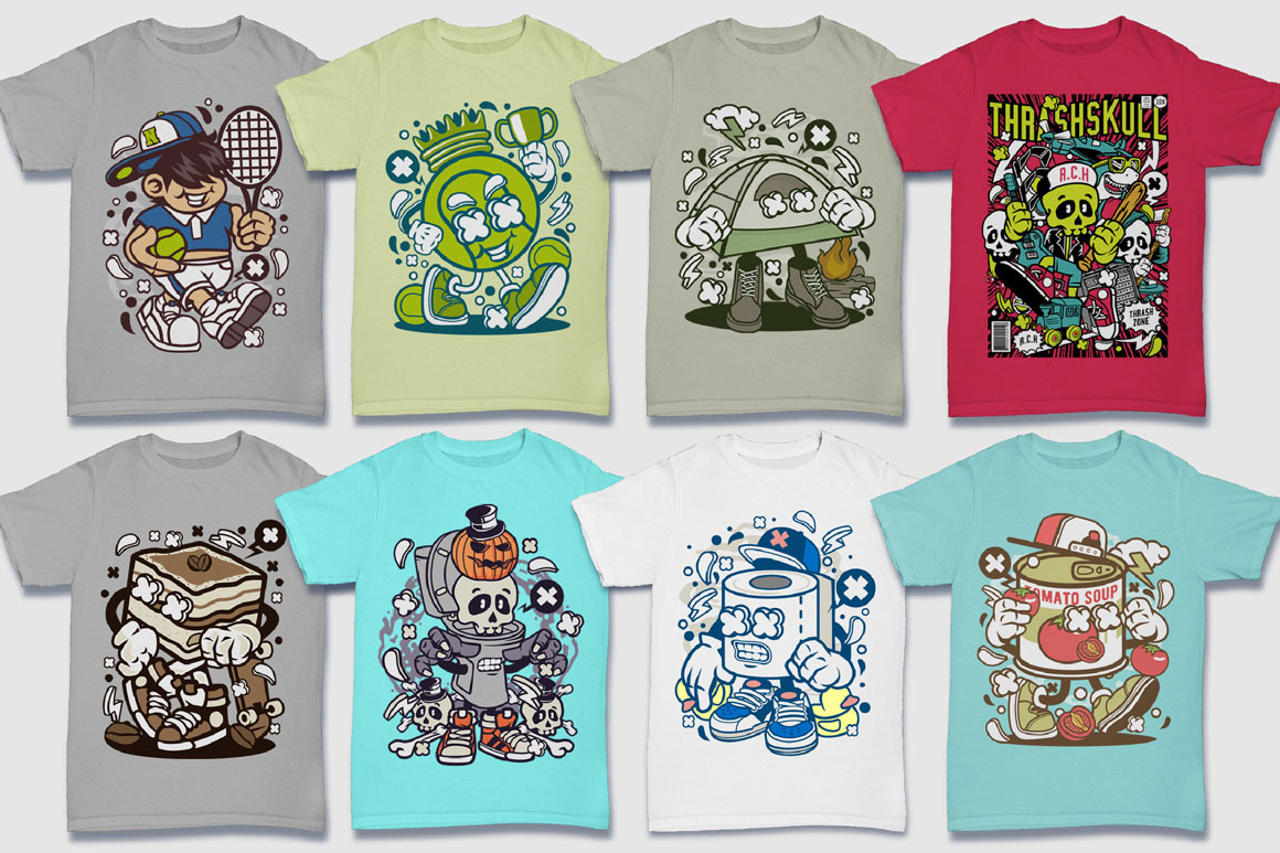 If you need something new in your vector graphics library or some cool illustrations for your new project we have a unique vector illustrations bundle for you 🙂 Already 4th similar bundle from Dan Roach. This time with 300 brand new professional vector cartoon illustrations. You can create unique t-shirt designs, stickers, badges, posters, invitations or logo designs.