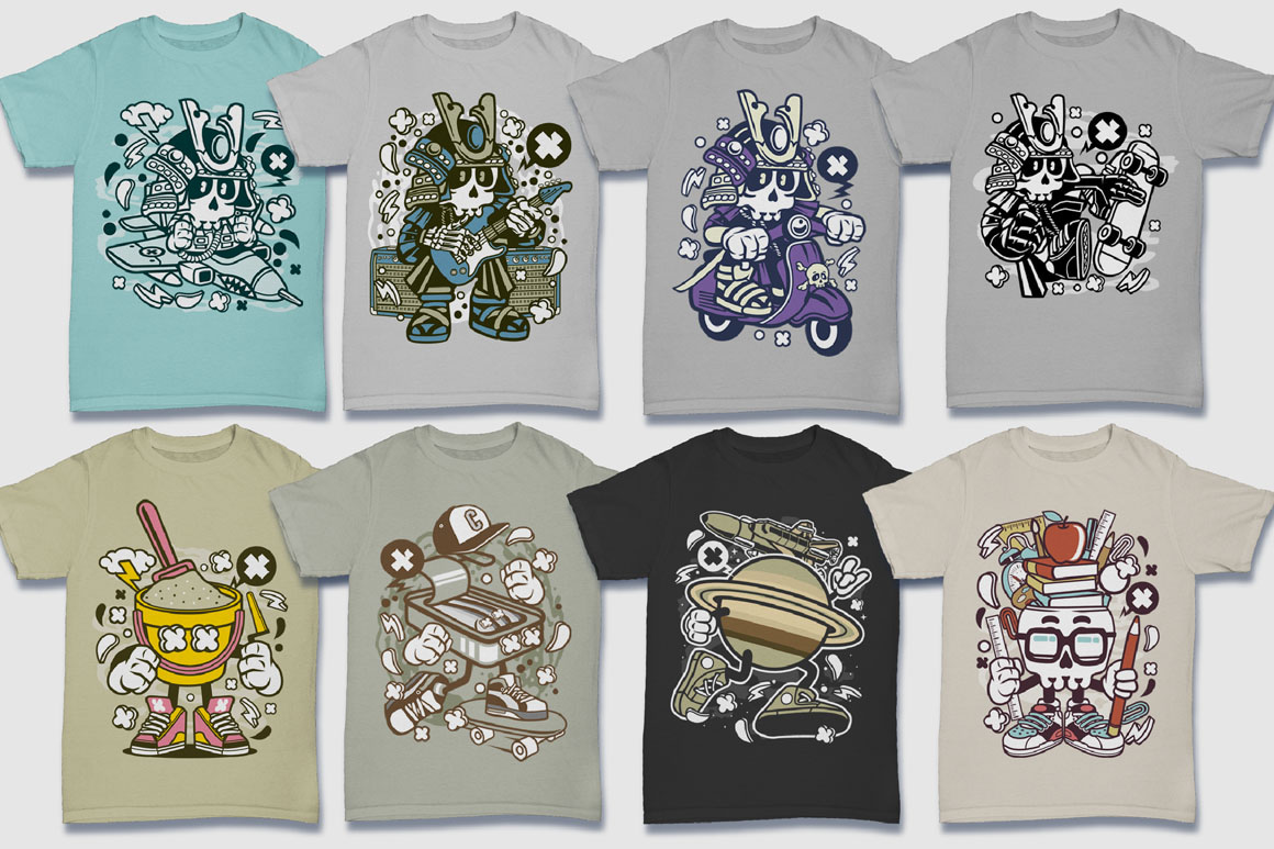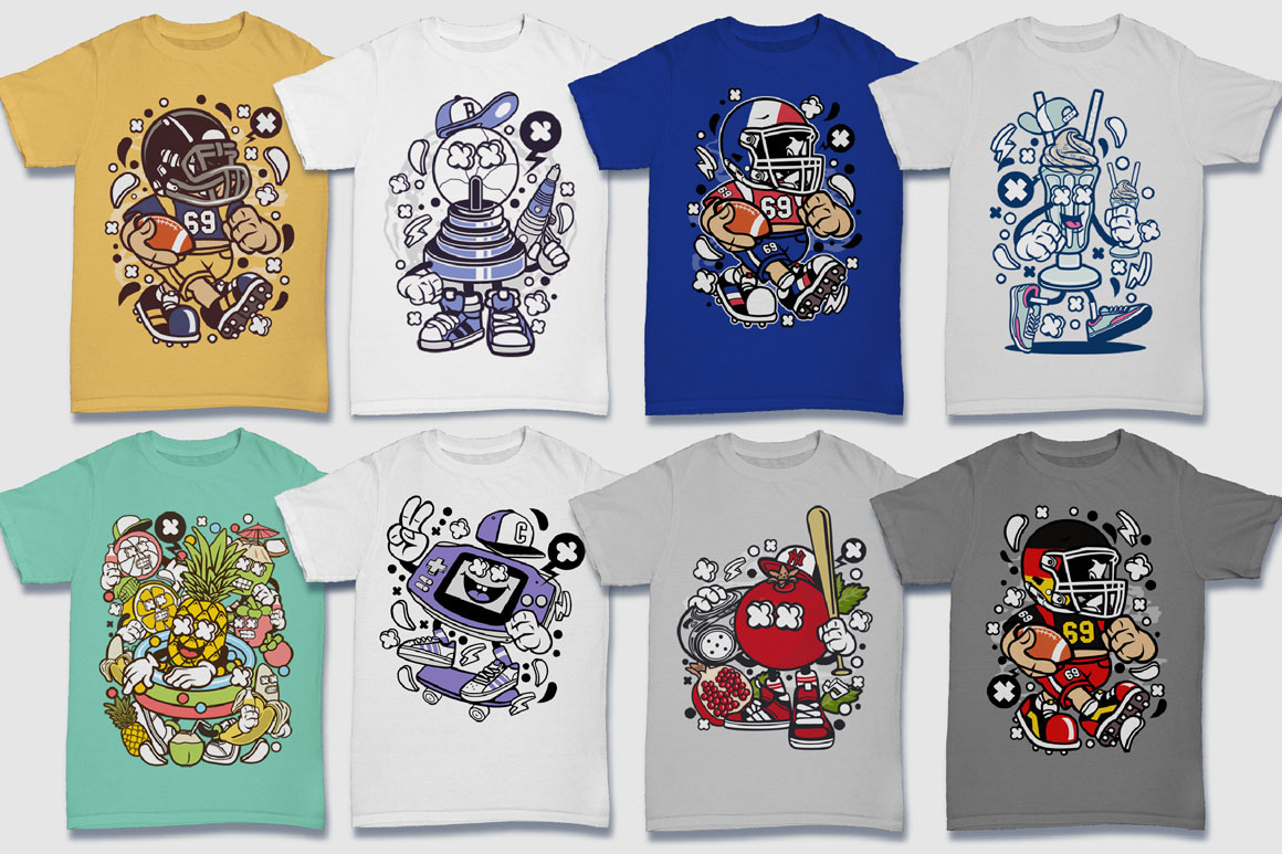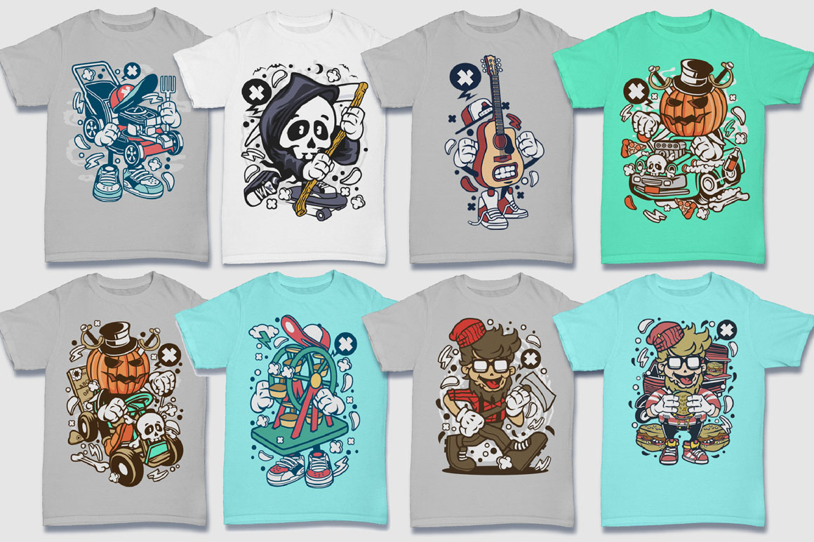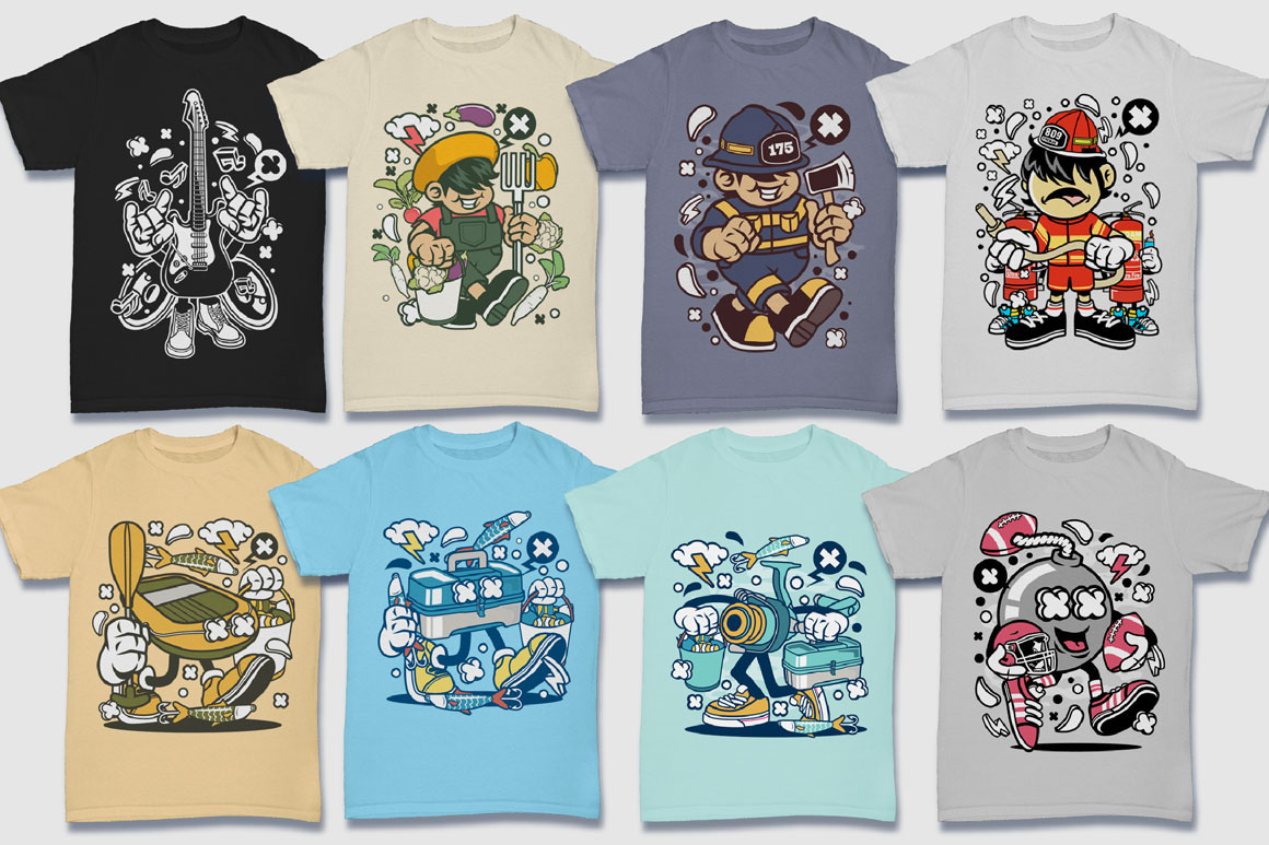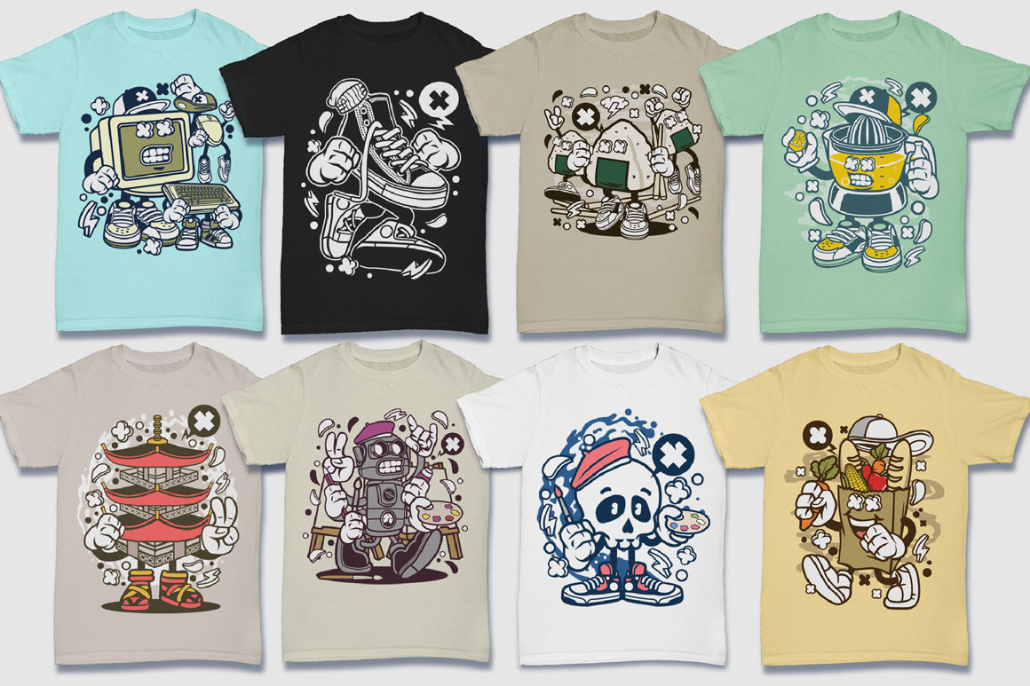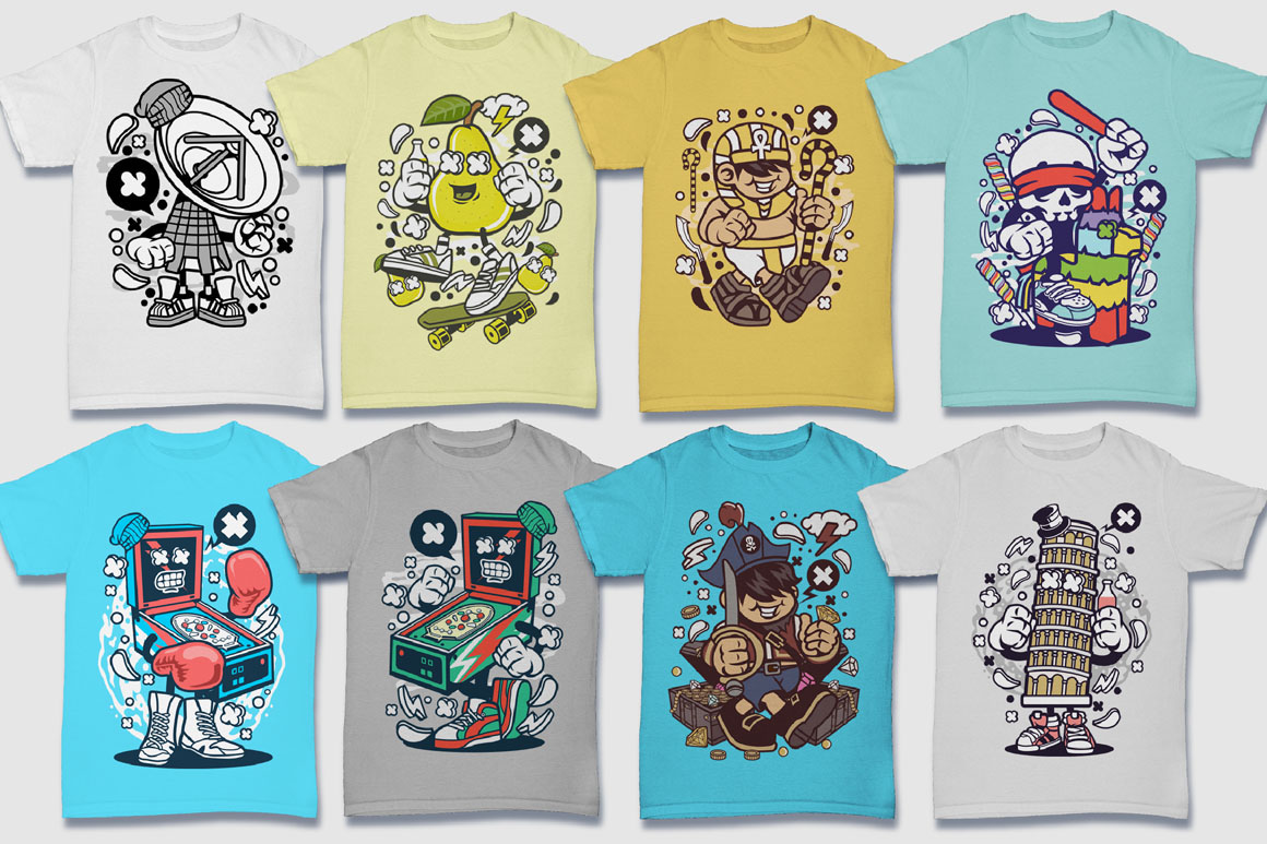 If you need something new in your vector graphics library or some cool illustrations for your new project we have a unique vector illustrations bundle for you 🙂 Already 4th similar bundle from Dan Roach. This time with 300 brand new professional vector cartoon illustrations. You can create unique t-shirt designs, stickers, badges, posters, invitations or logo designs.