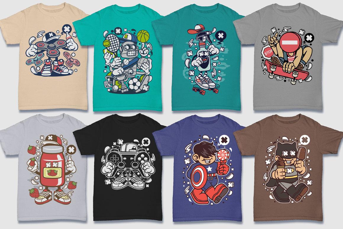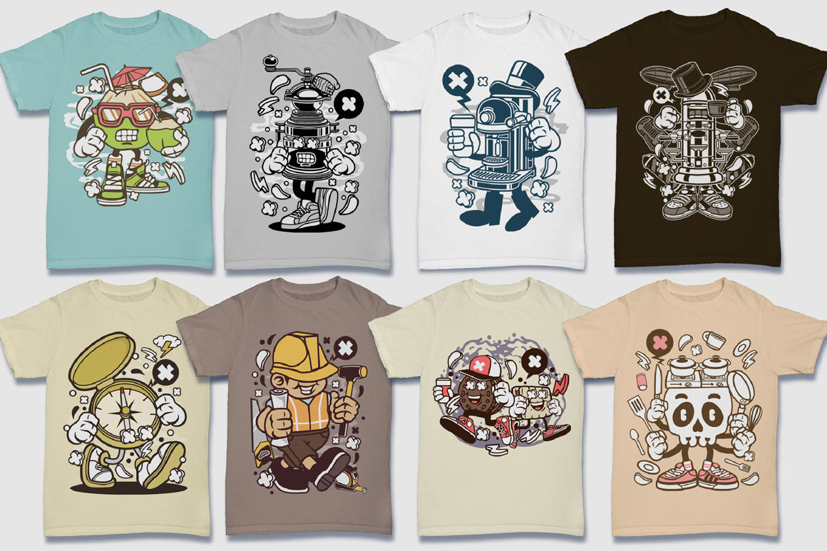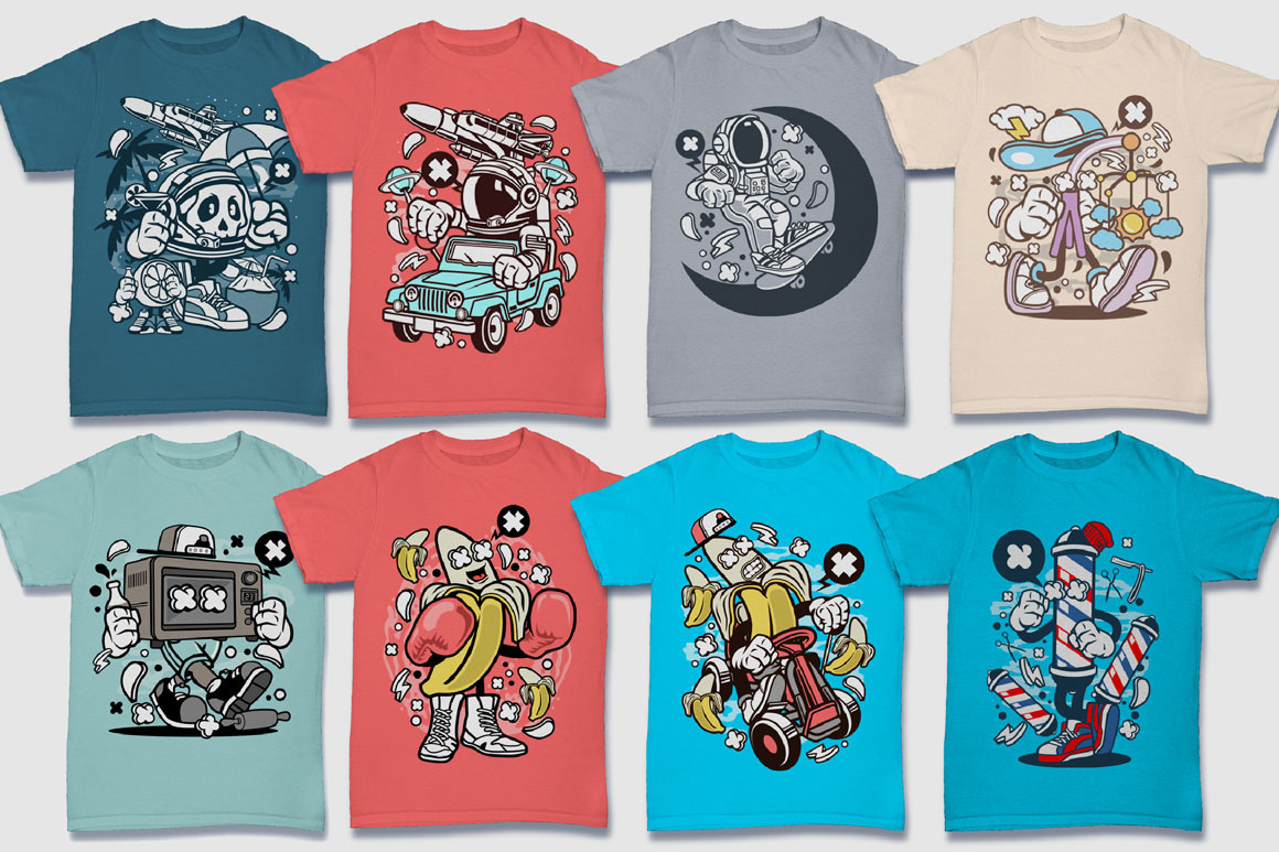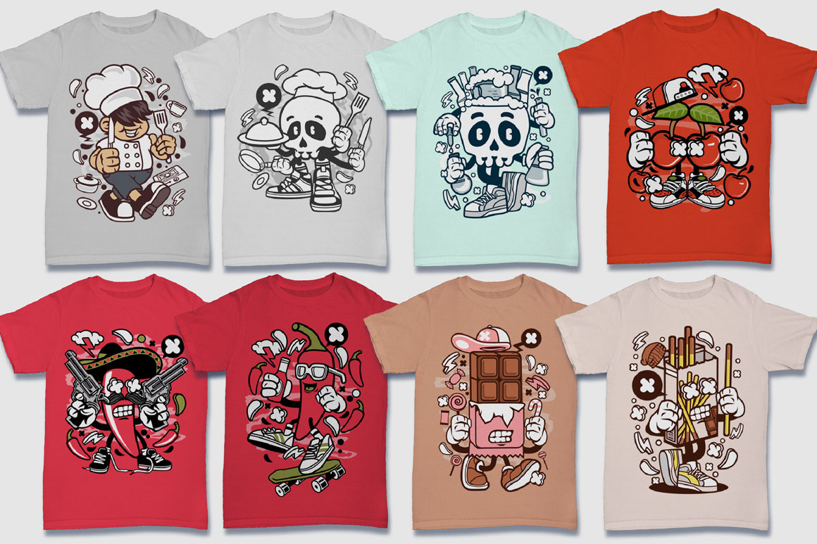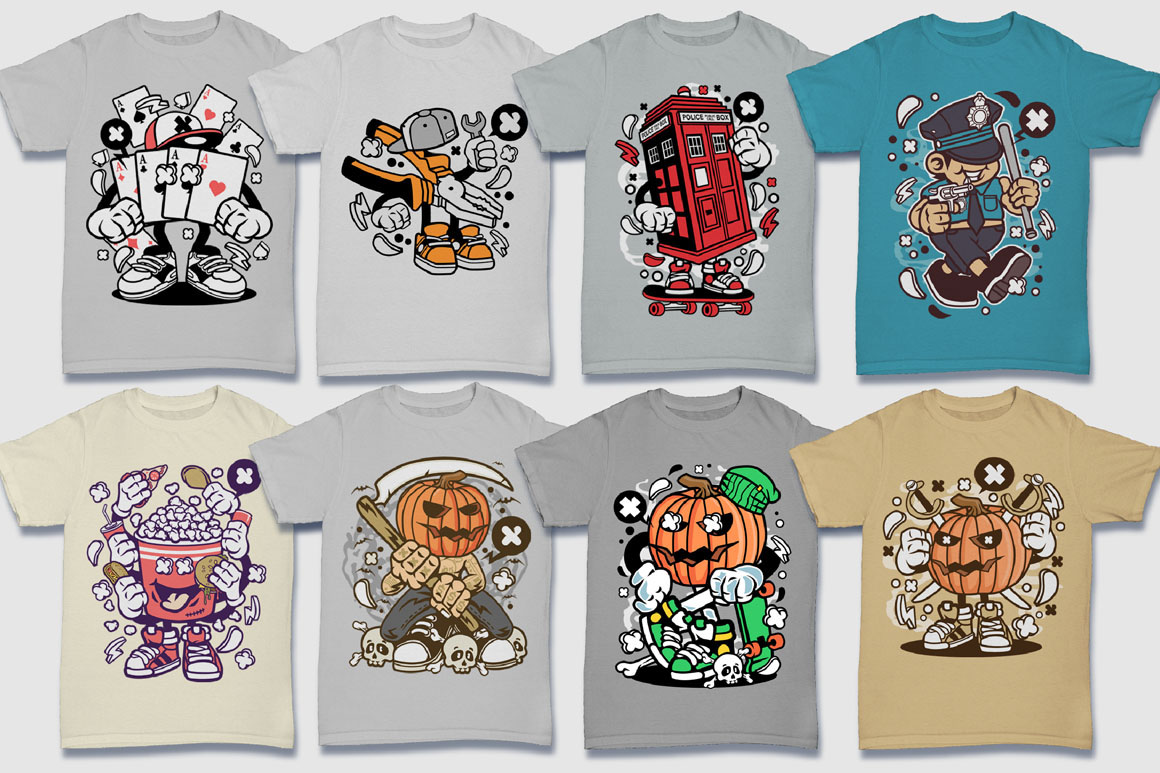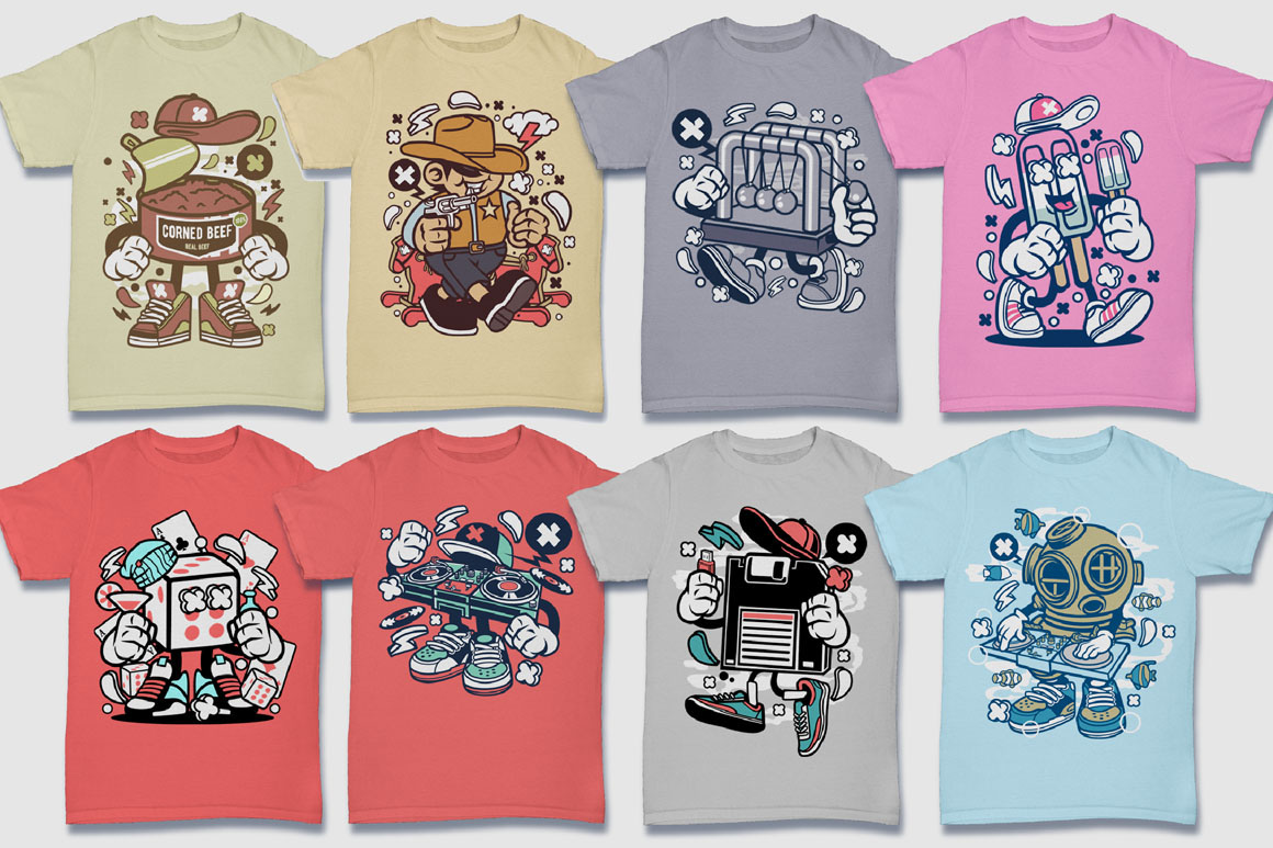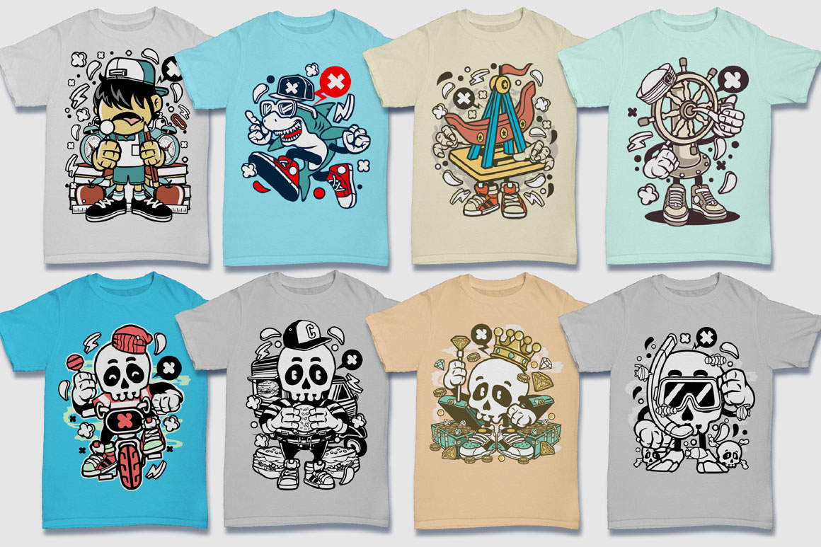 If you need something new in your vector graphics library or some cool illustrations for your new project we have a unique vector illustrations bundle for you 🙂 Already 4th similar bundle from Dan Roach. This time with 300 brand new professional vector cartoon illustrations. You can create unique t-shirt designs, stickers, badges, posters, invitations or logo designs.